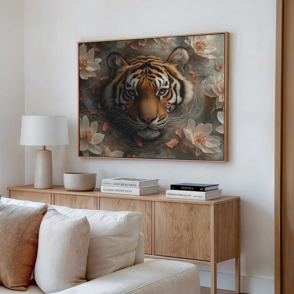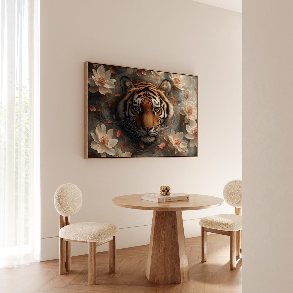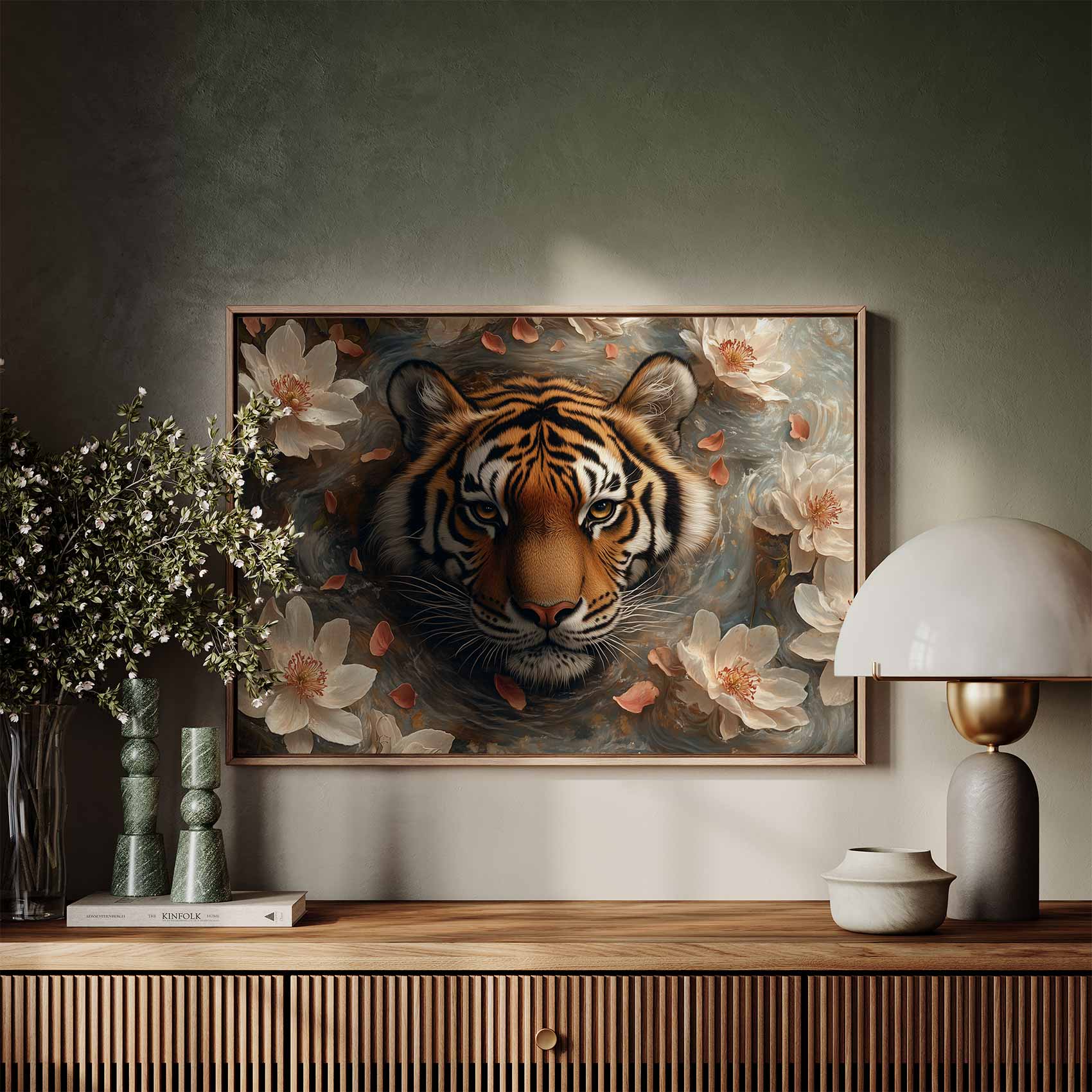Terug naar collectie / Schilderijen / Bloemen Schilderij / Tijger tussen bloemenpracht