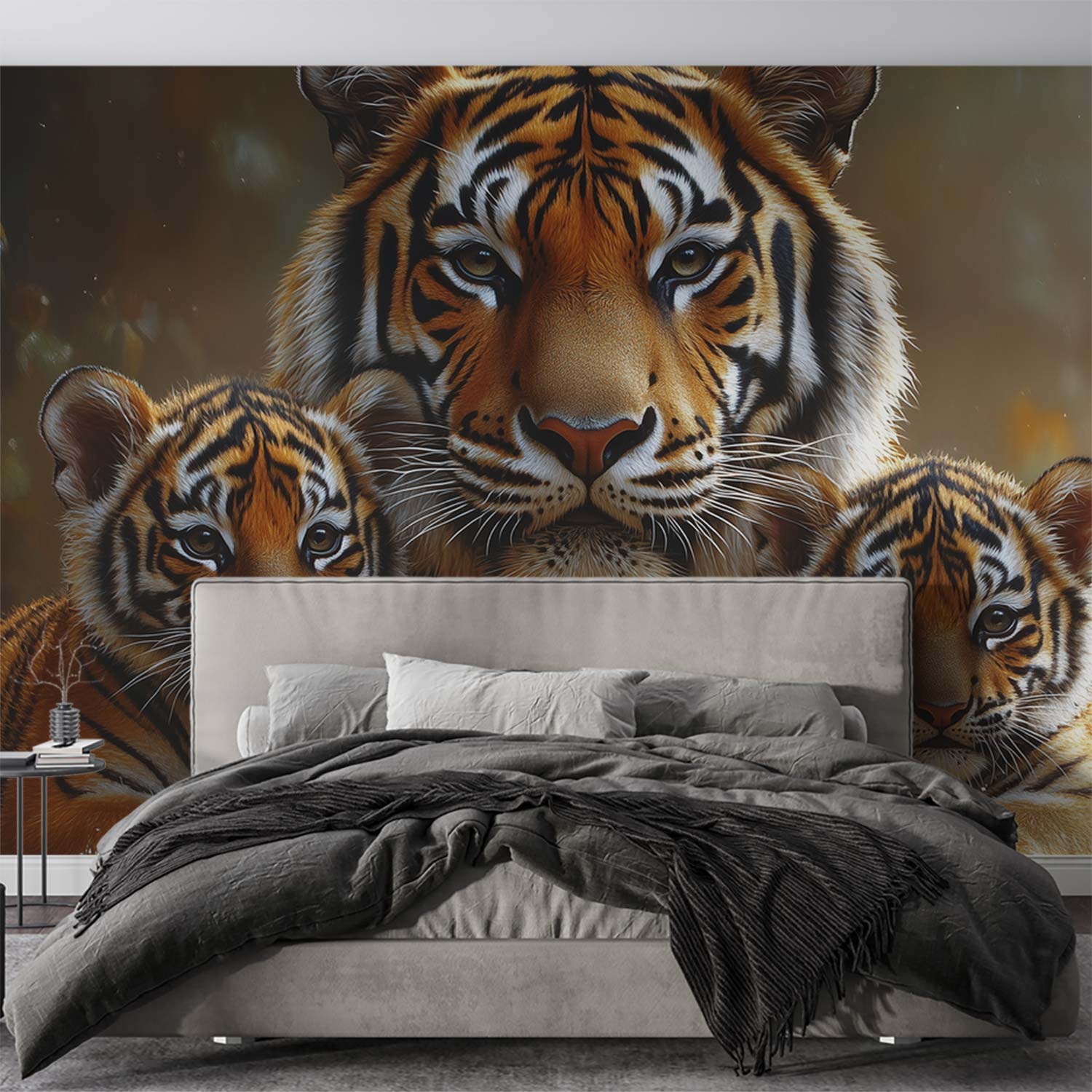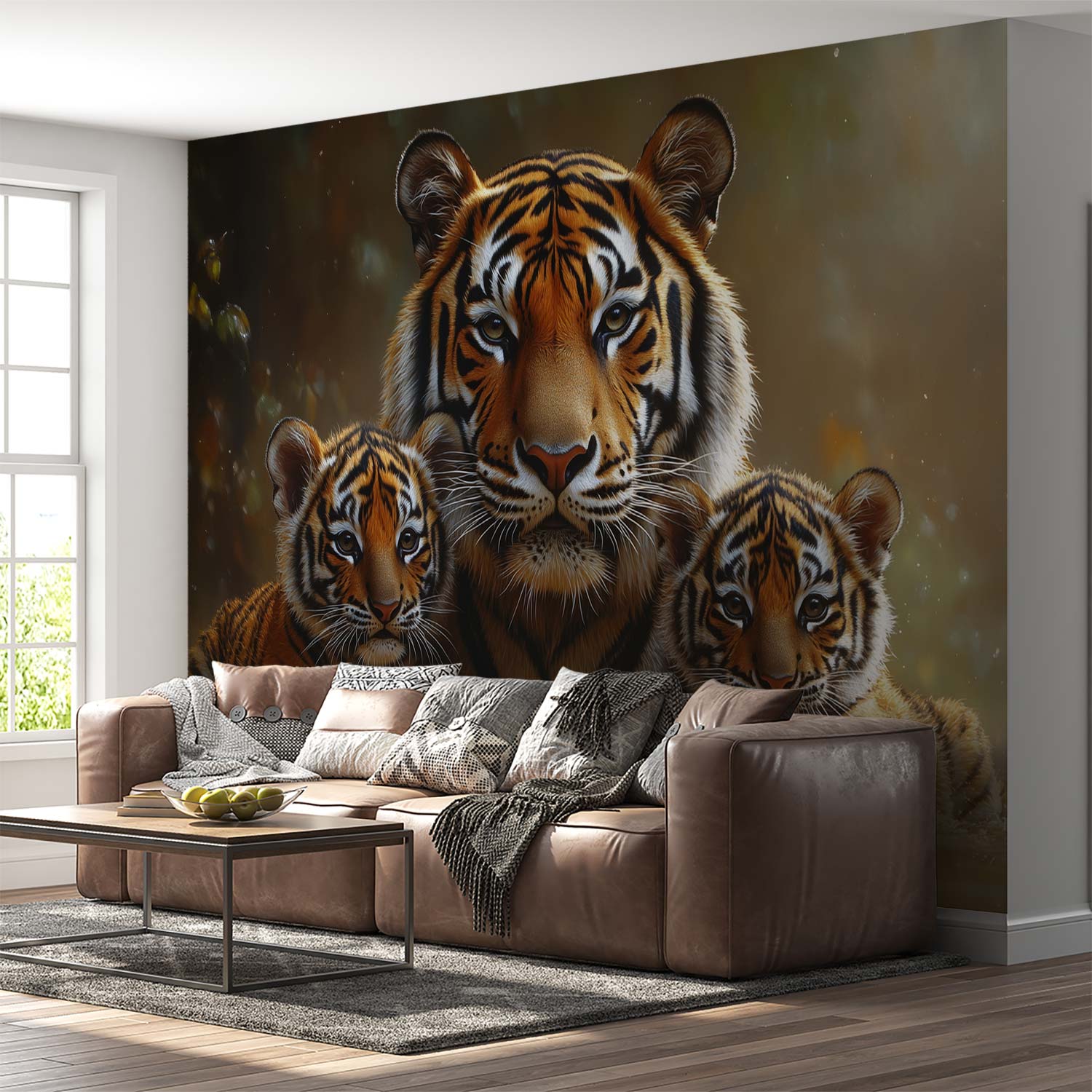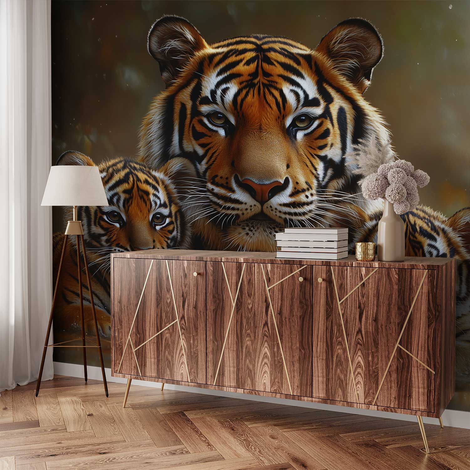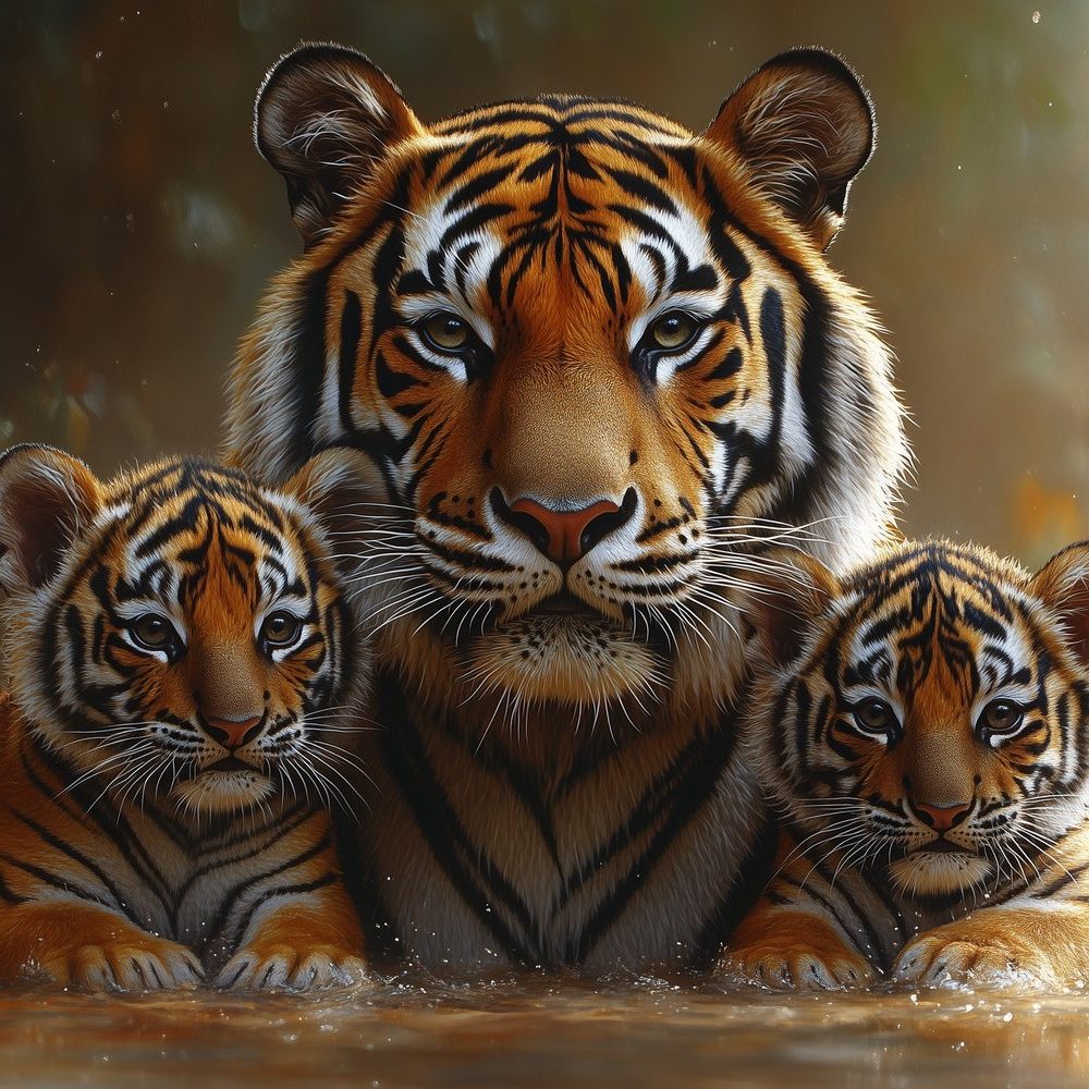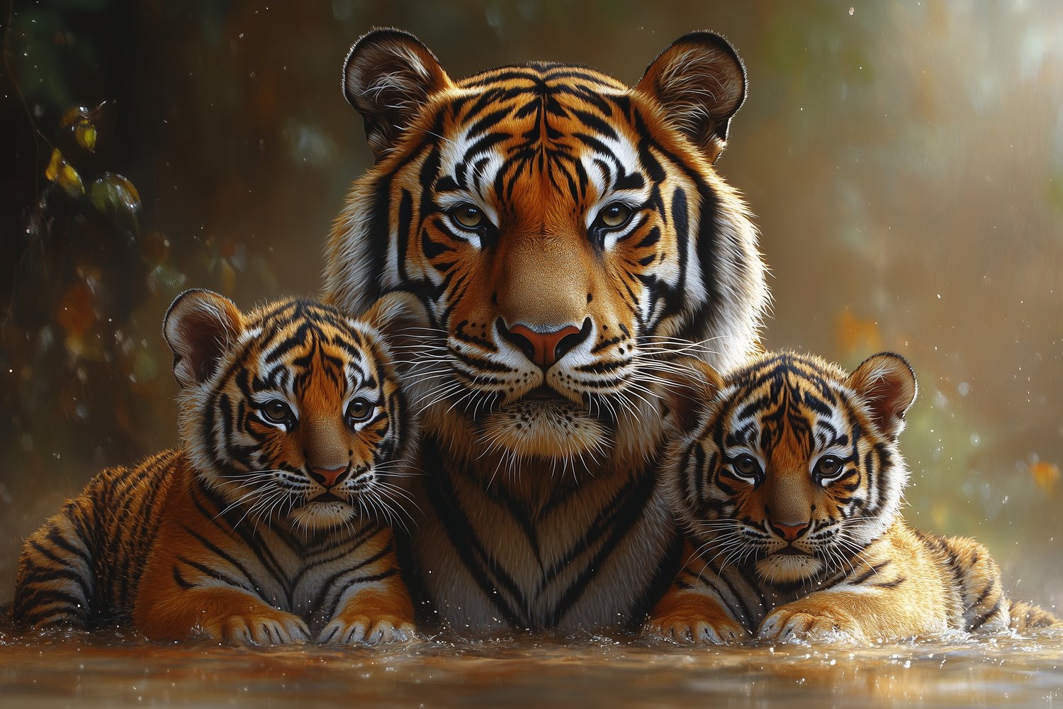 Tijgerfamilie in water behang