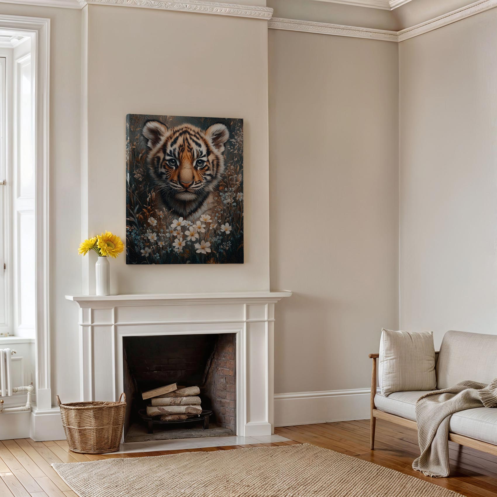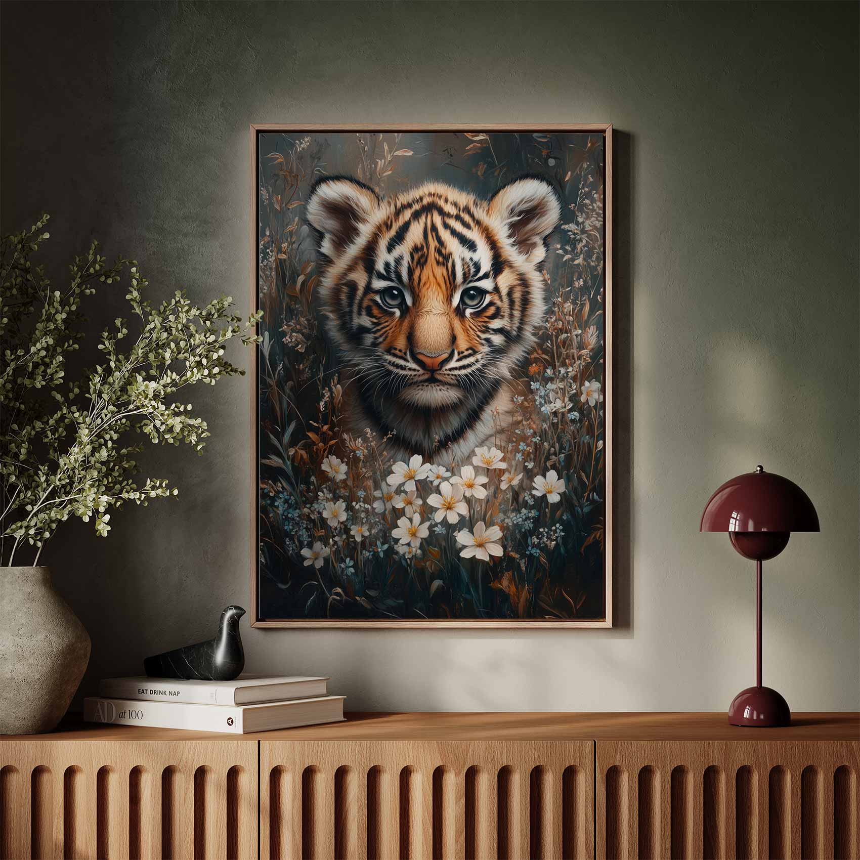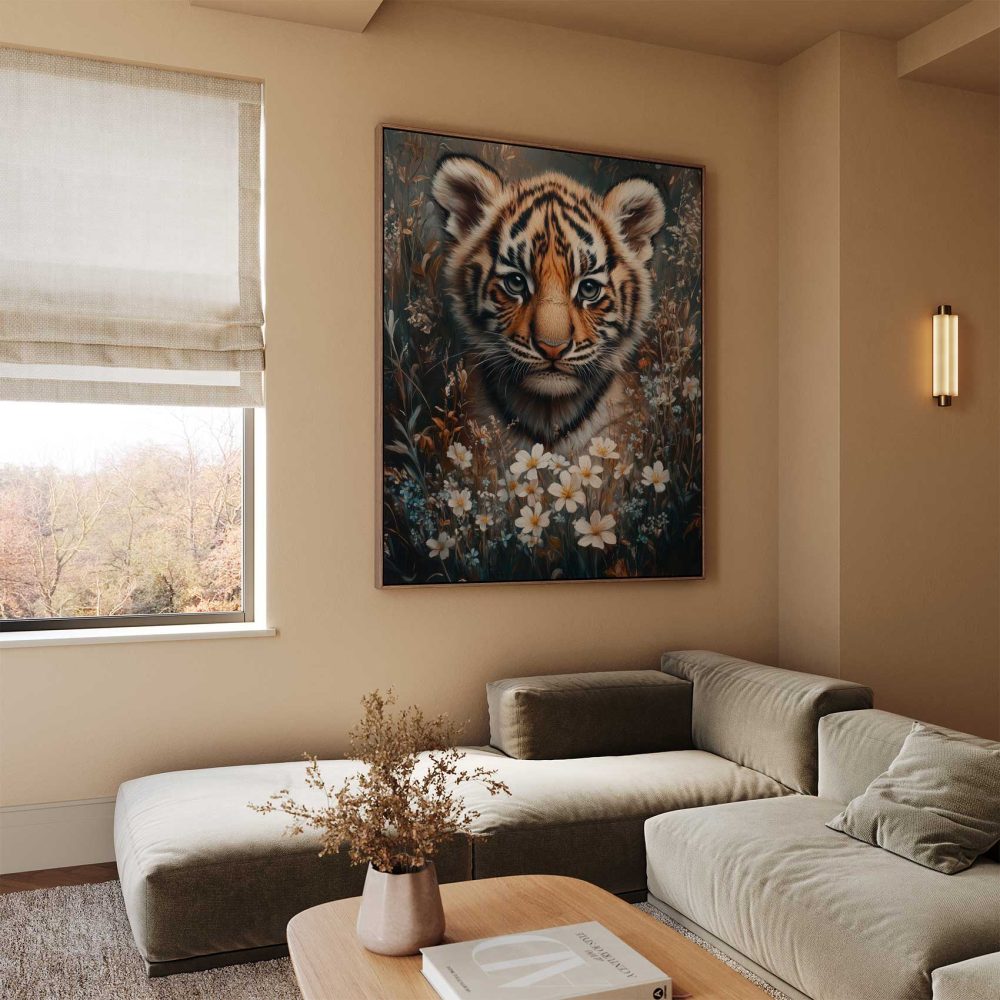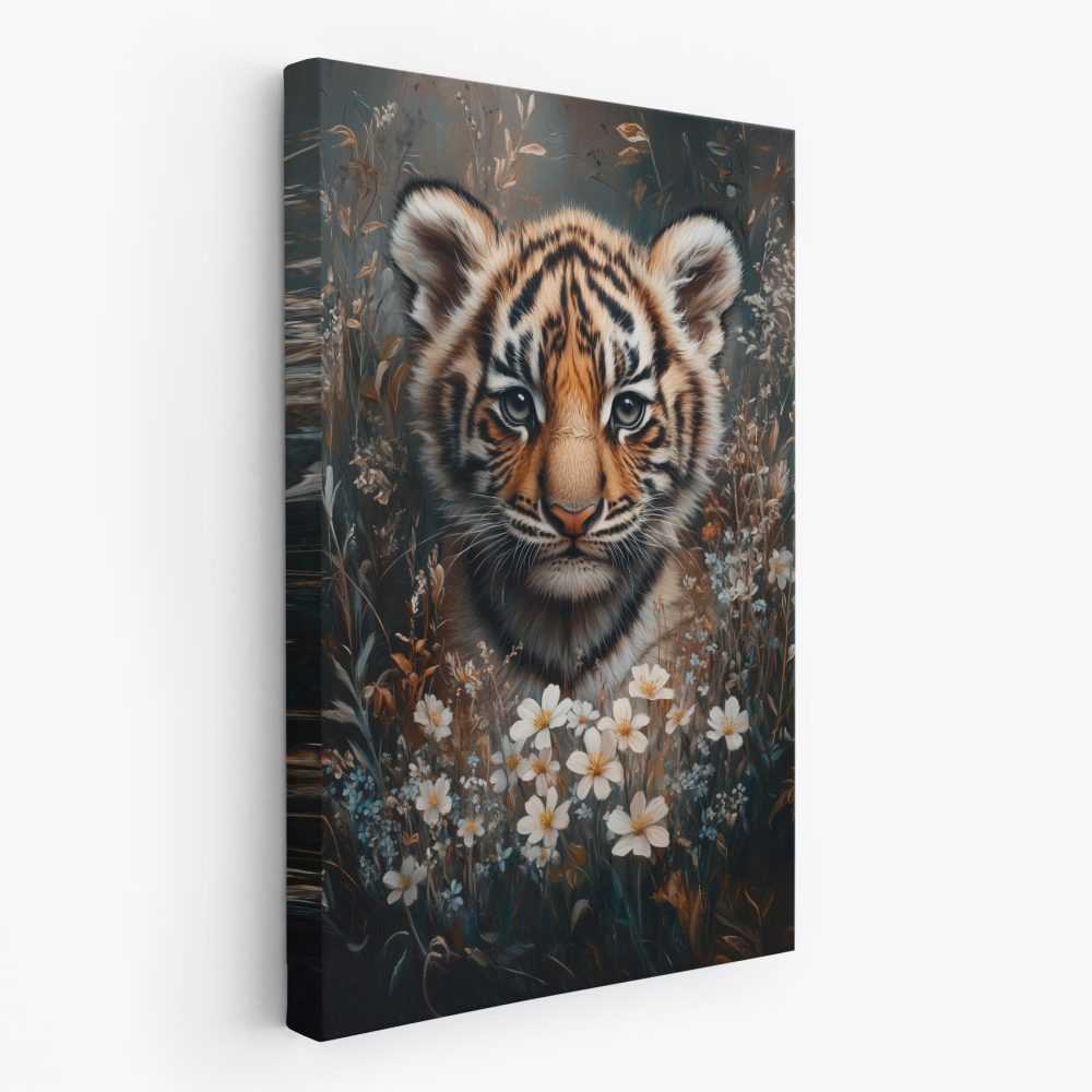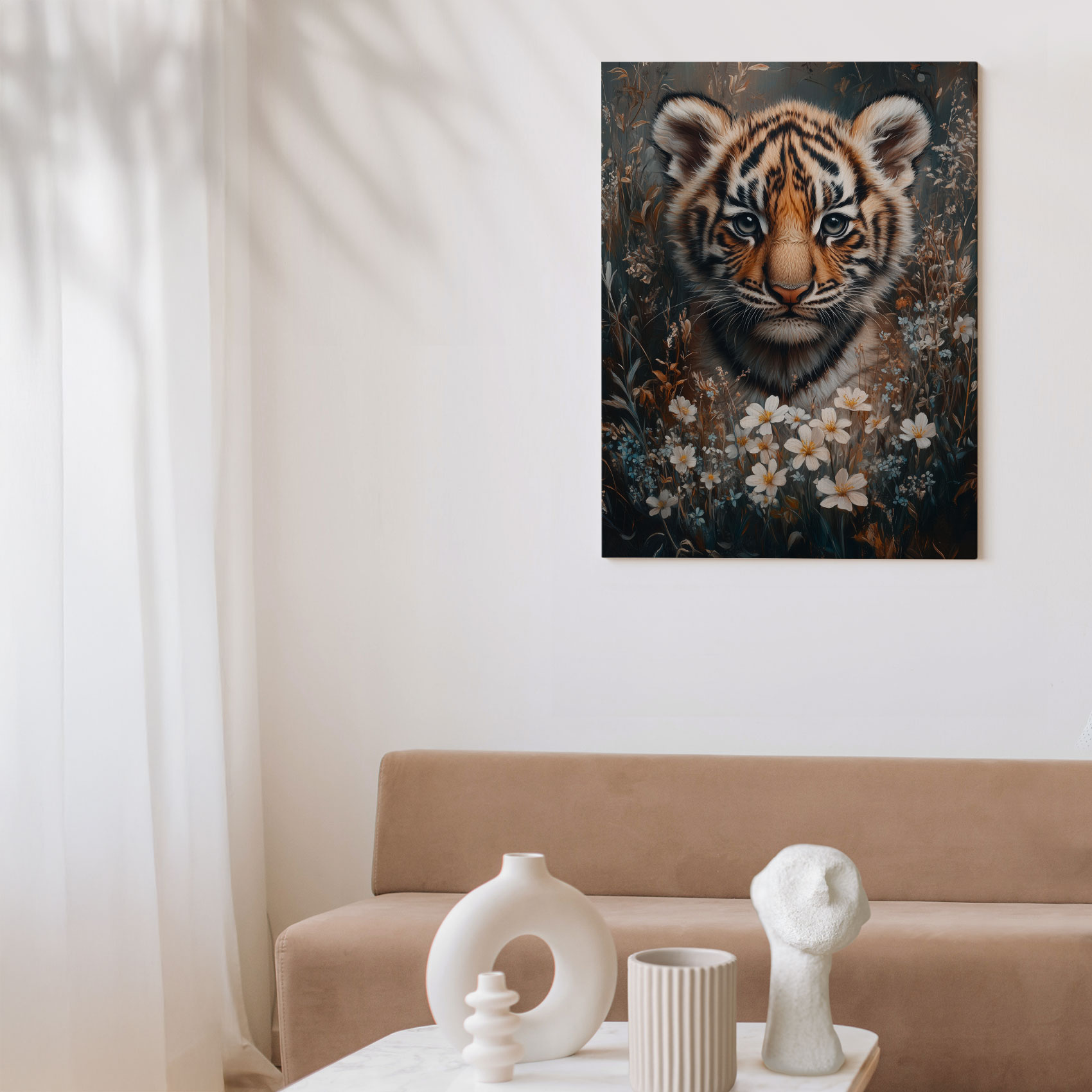 Terug naar collectie / Schilderijen / Bloemen Schilderij / Tijgerwelp tussen bloemenpracht