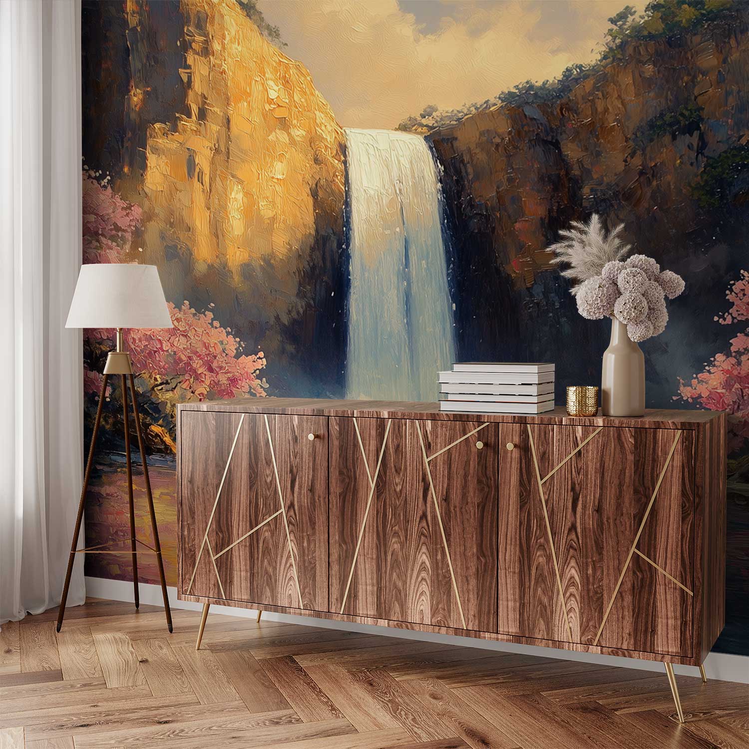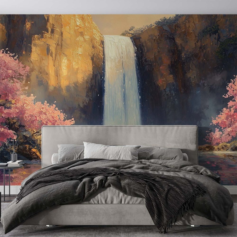 Tranquille waterval in berglandschap behang