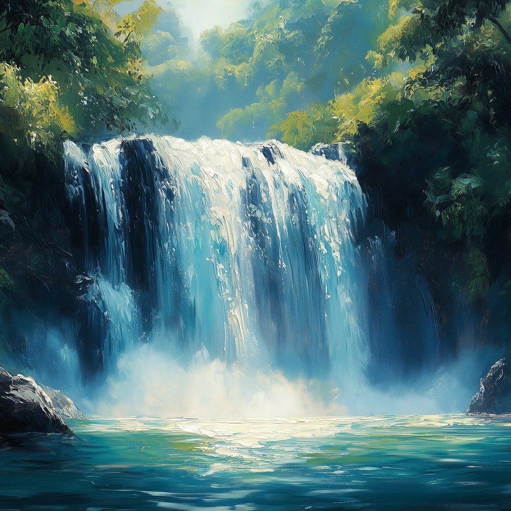 Terug naar collectie / Behang / Tranquille Waterval Schilderij behang