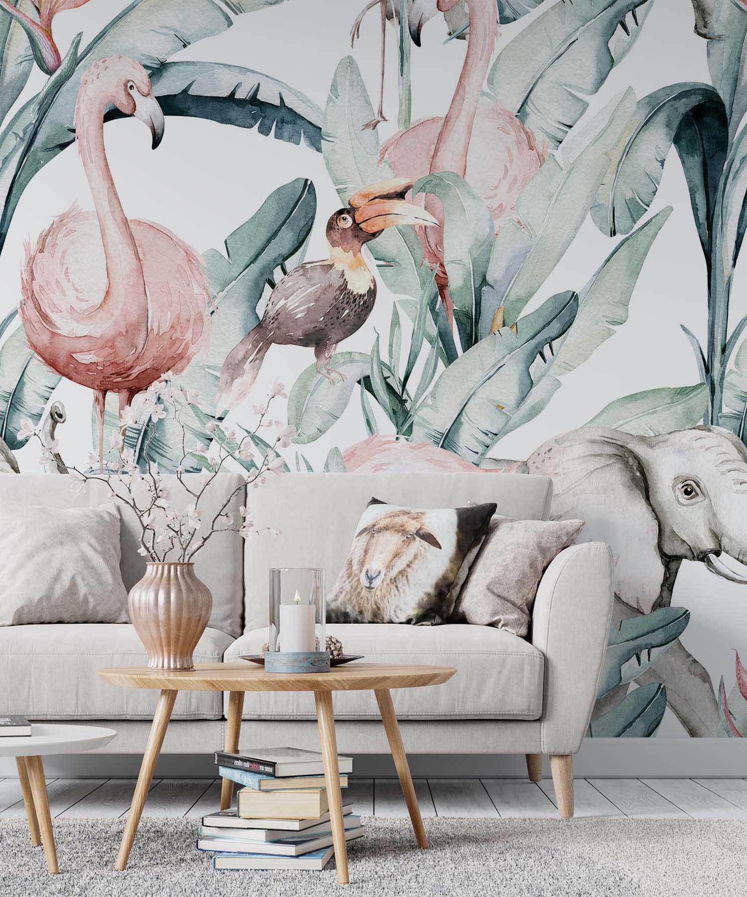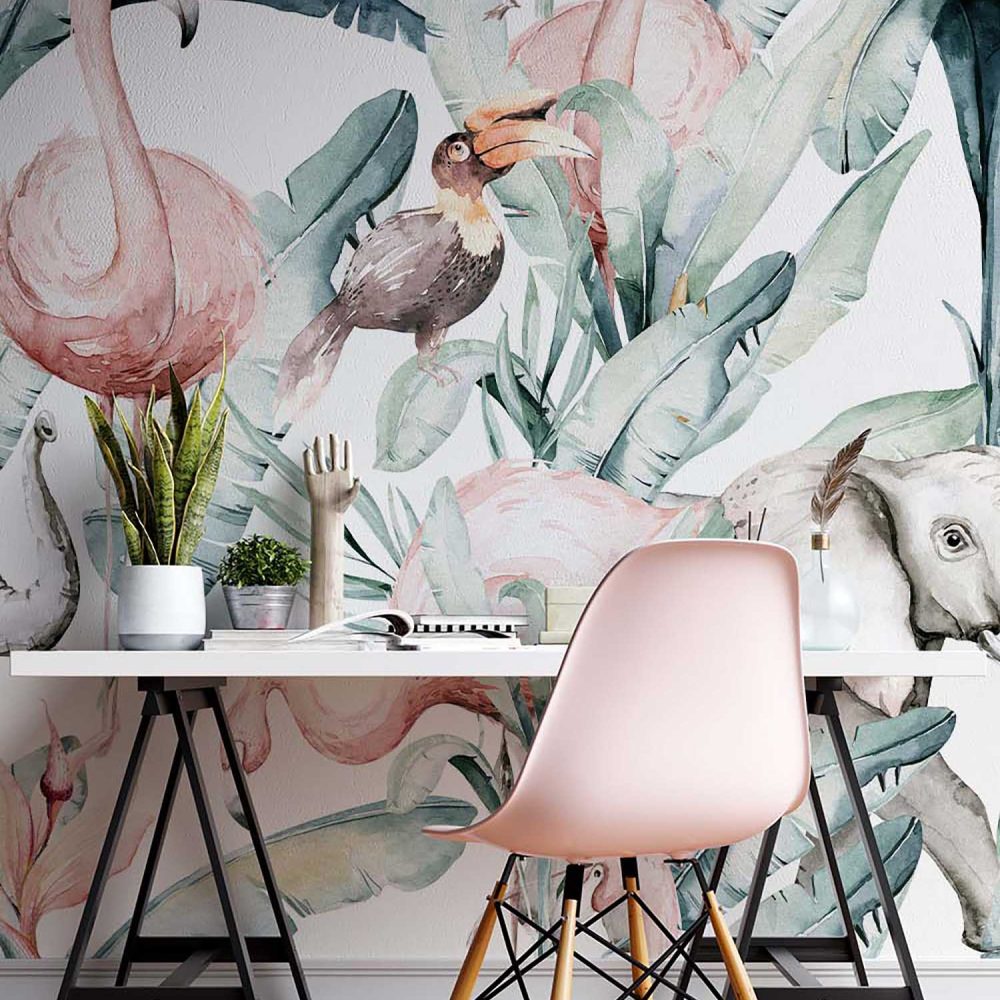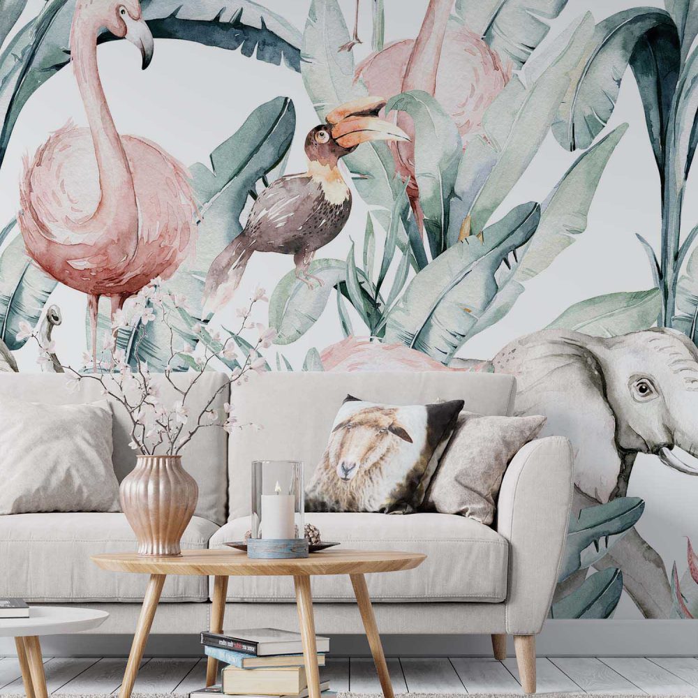 Terug naar collectie / Behang / Abstract behang / Tropisch Dierenparadijs Waterverf Behang