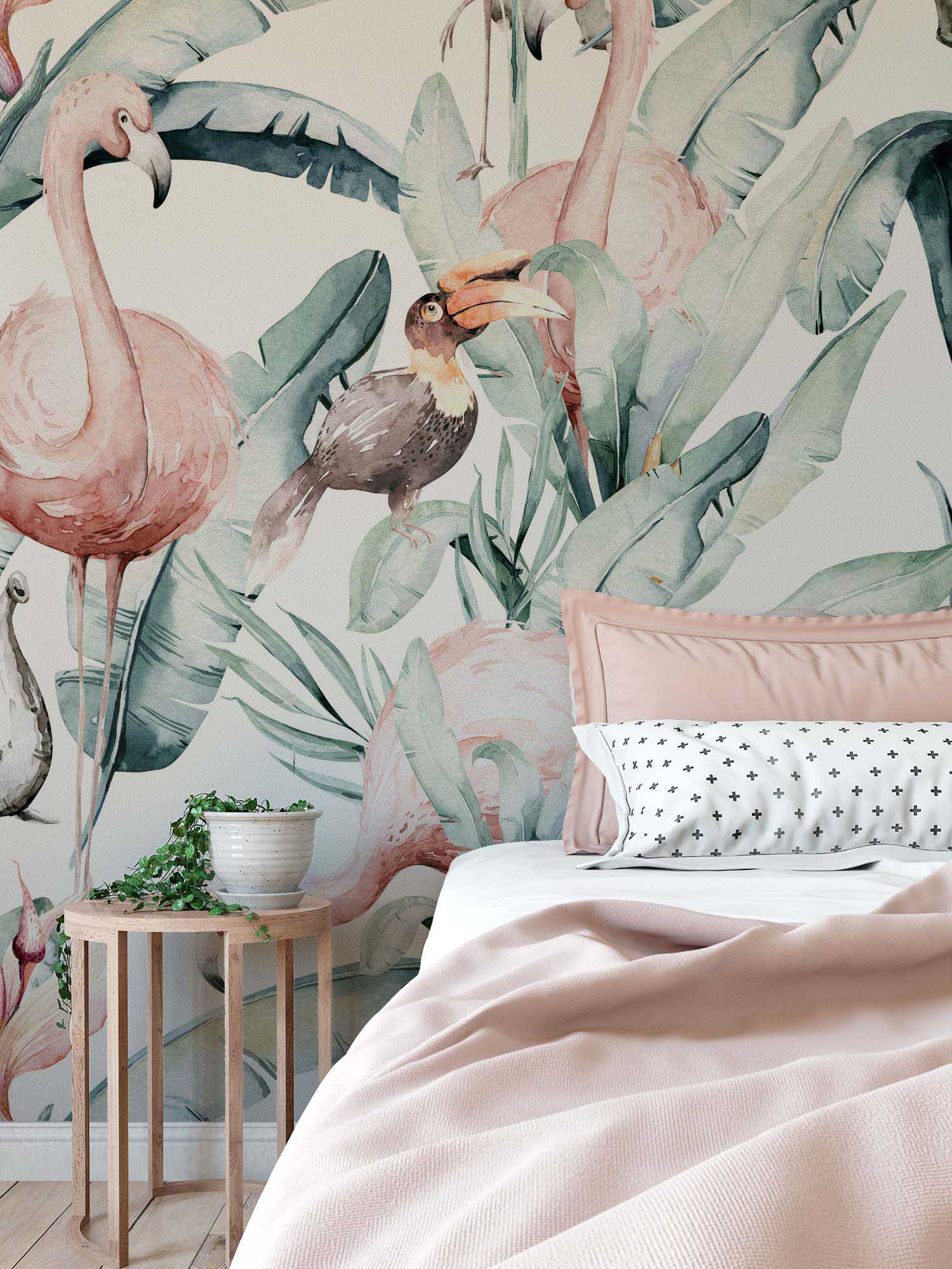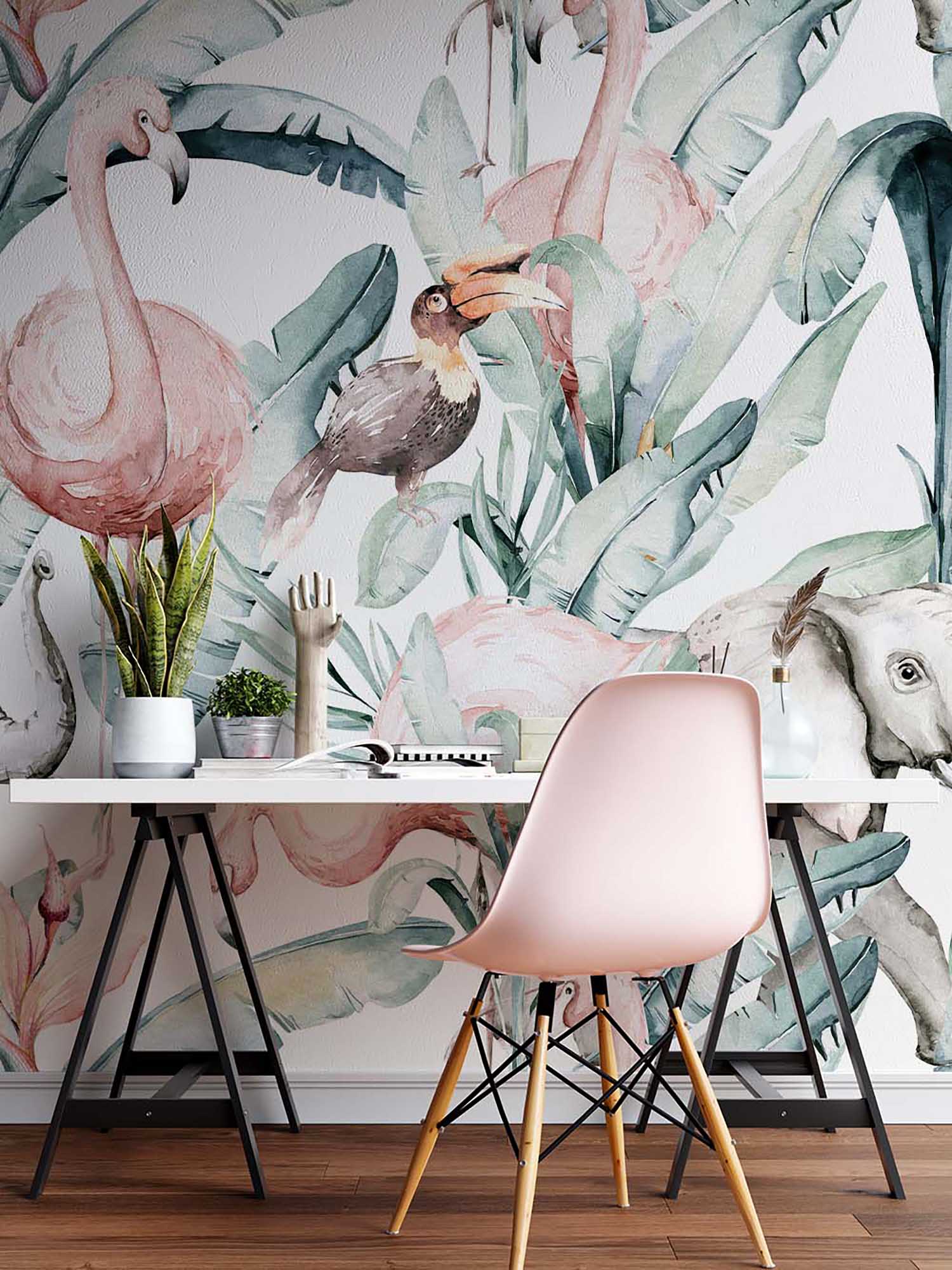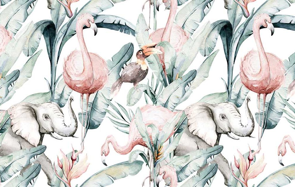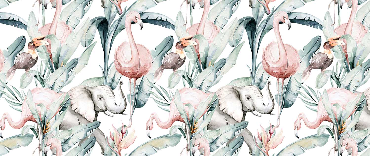 Terug naar collectie / Behang / Abstract behang / Tropisch Dierenparadijs Waterverf Behang