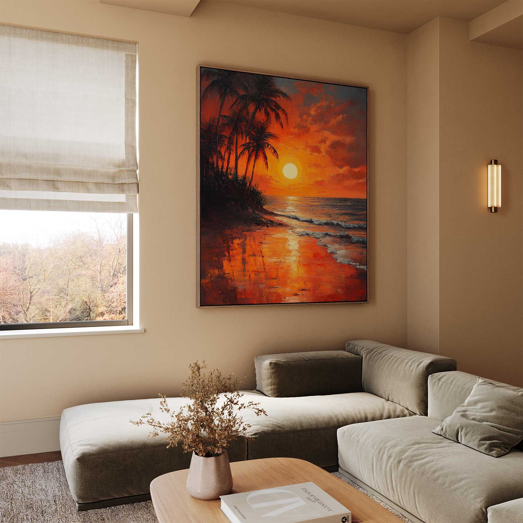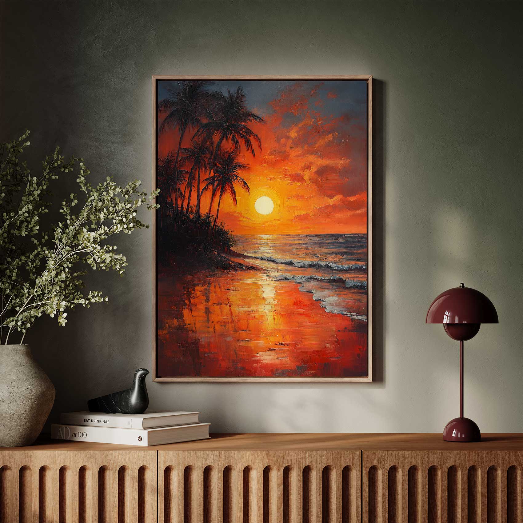 Terug naar collectie / Schilderijen / Exotisch Schilderij / Tropisch zonsondergangsschilderij