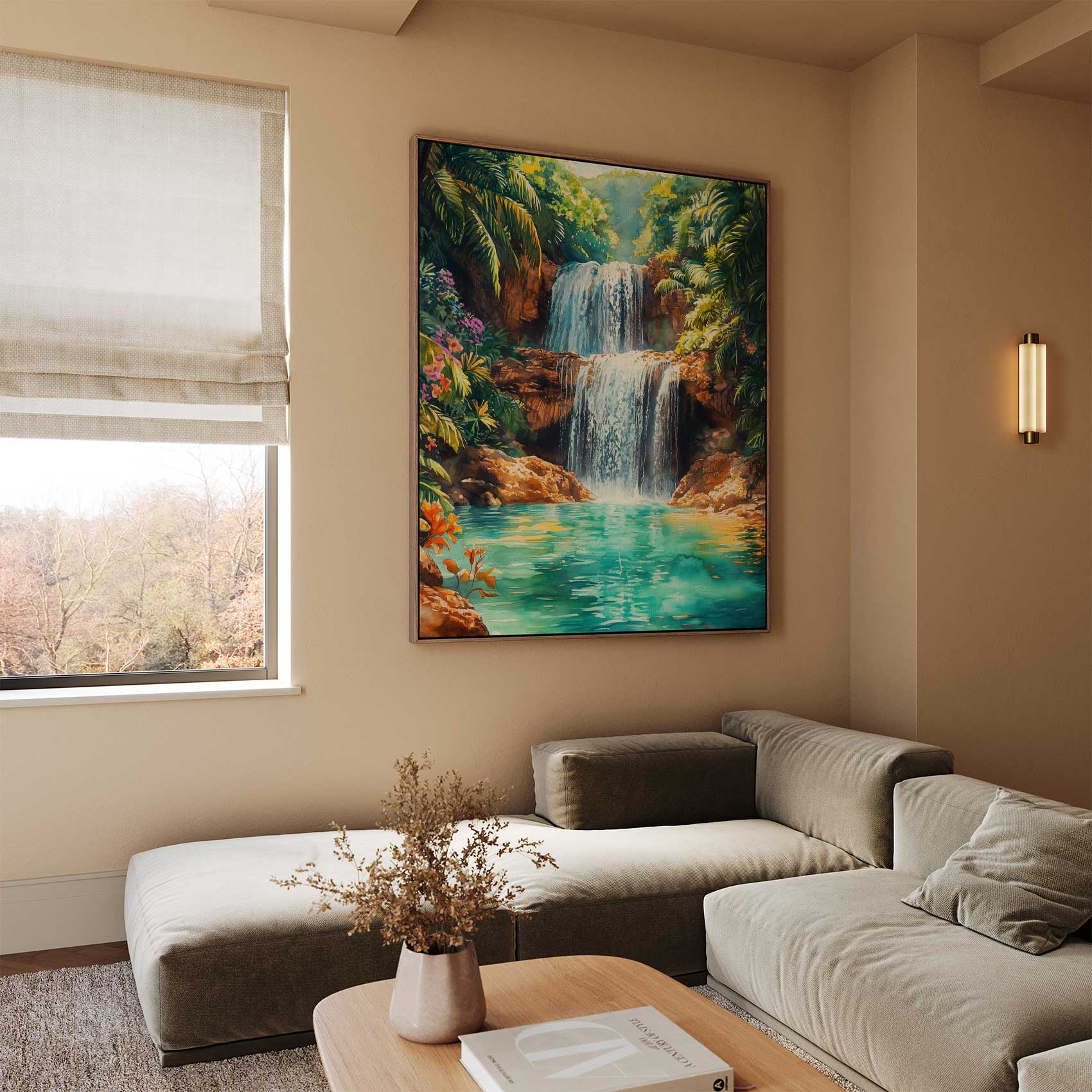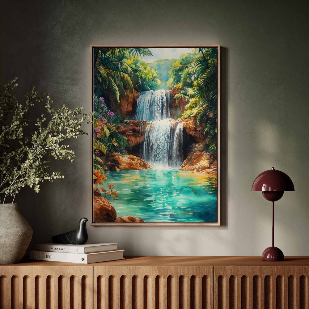 Tropische Waterval Waterverfschilderij