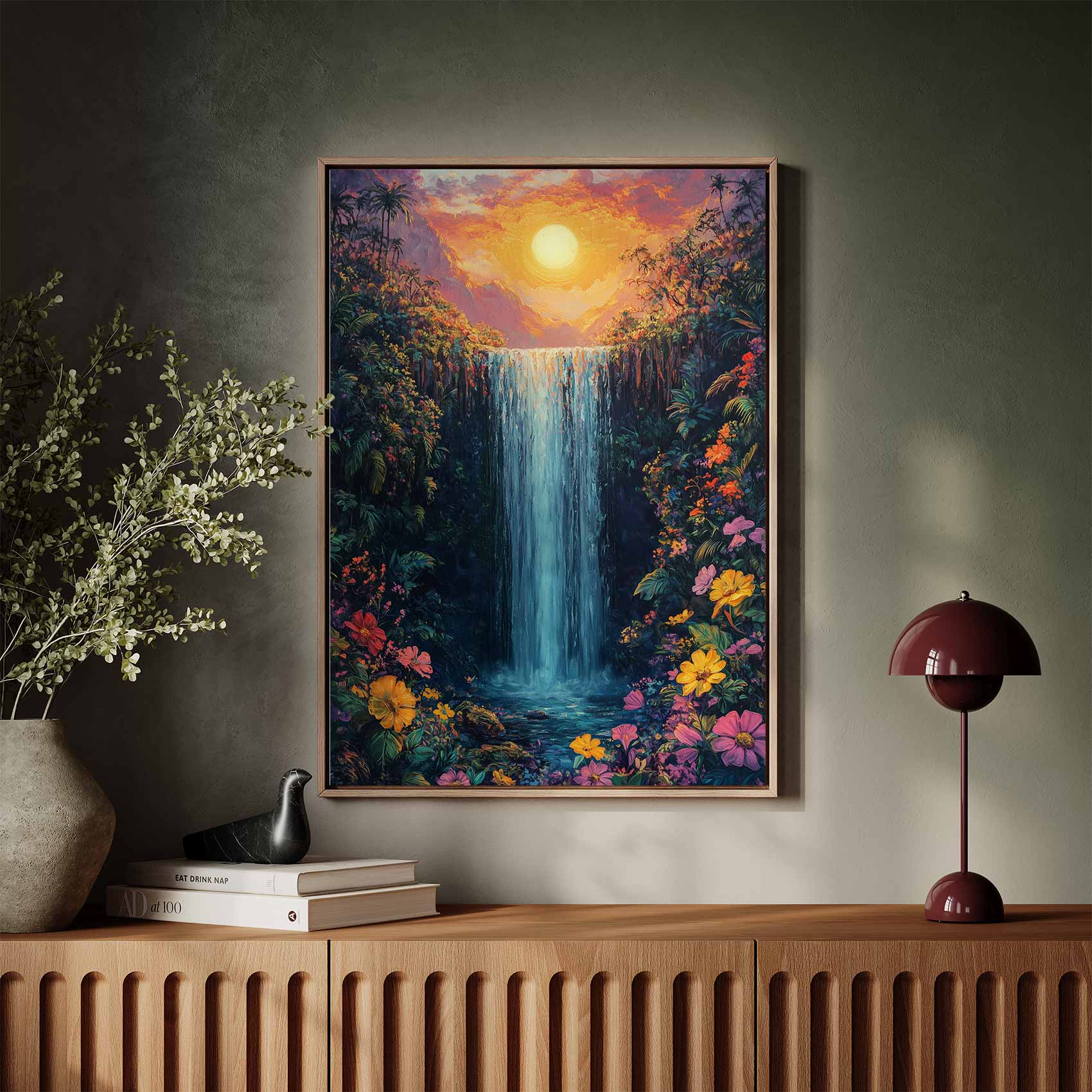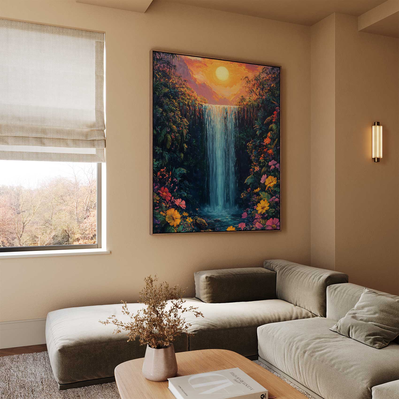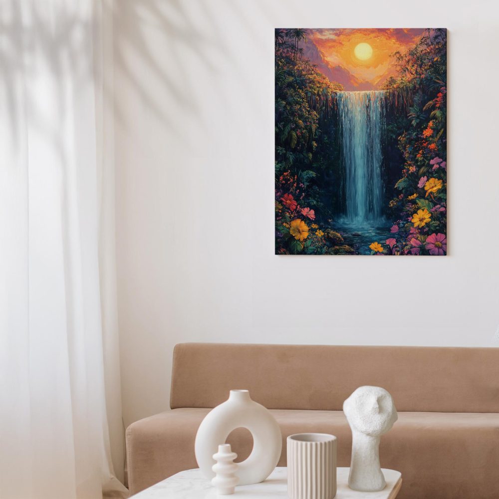 Terug naar collectie / Schilderijen / Bloemen Schilderij / Tropische Waterval Zonsondergang
