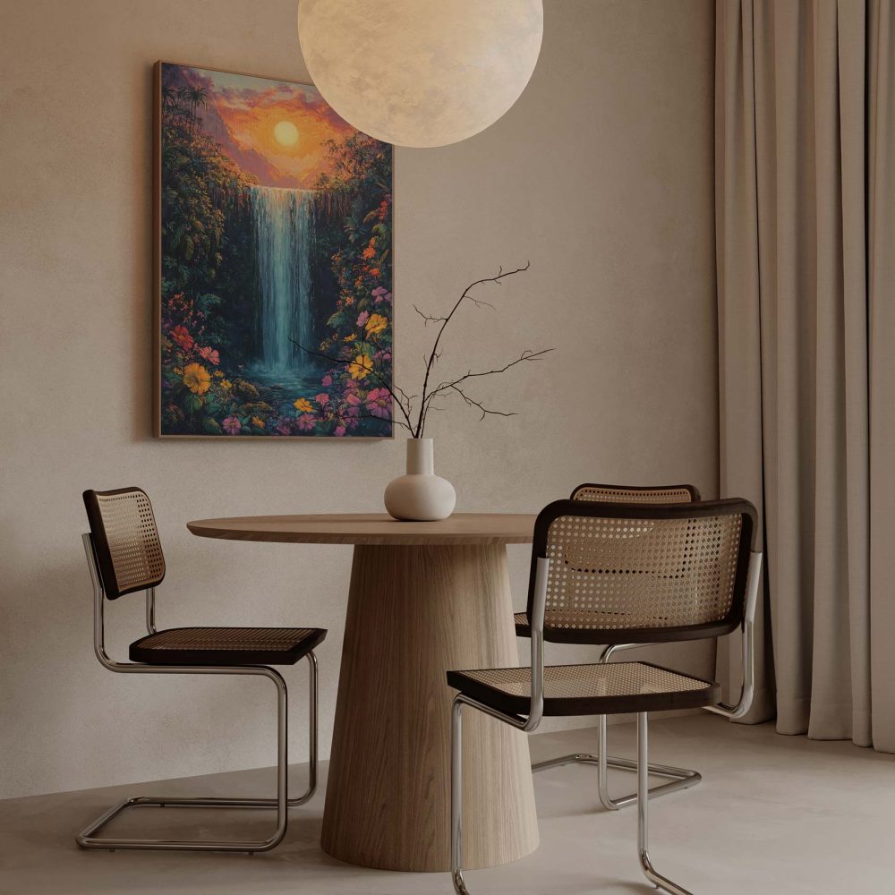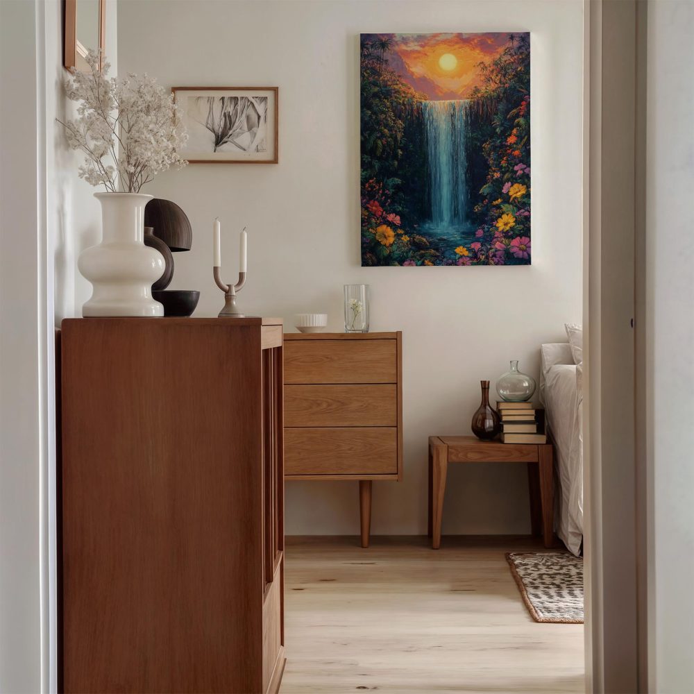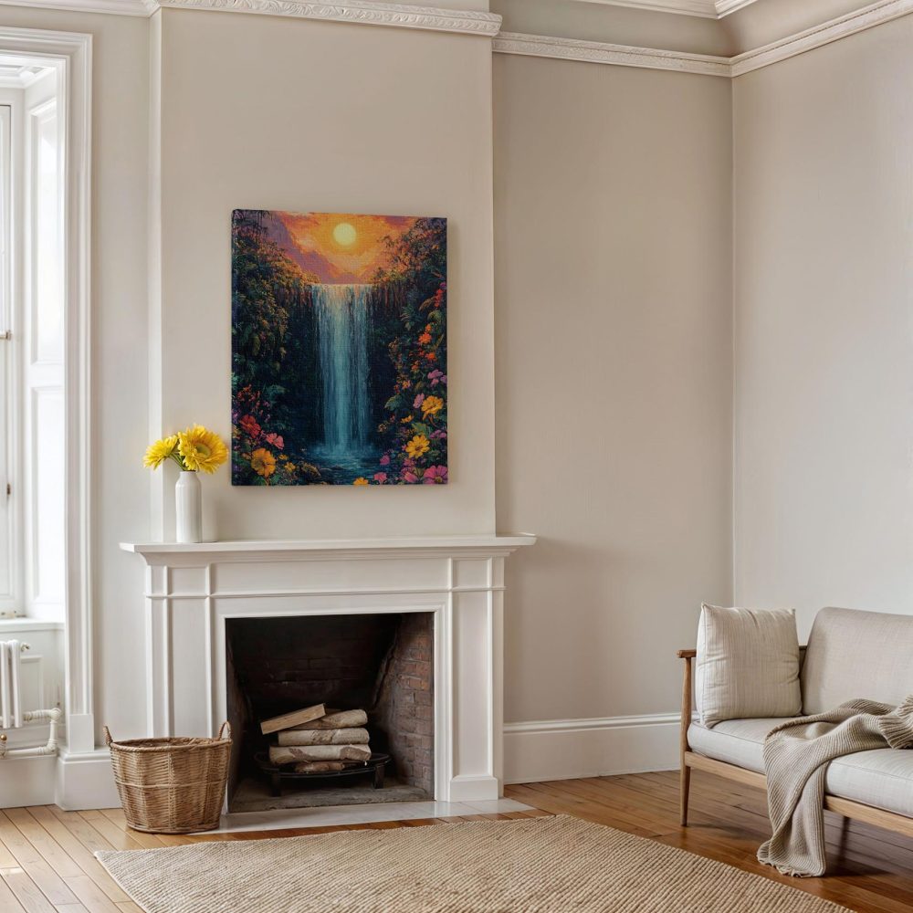 Terug naar collectie / Schilderijen / Bloemen Schilderij / Tropische Waterval Zonsondergang