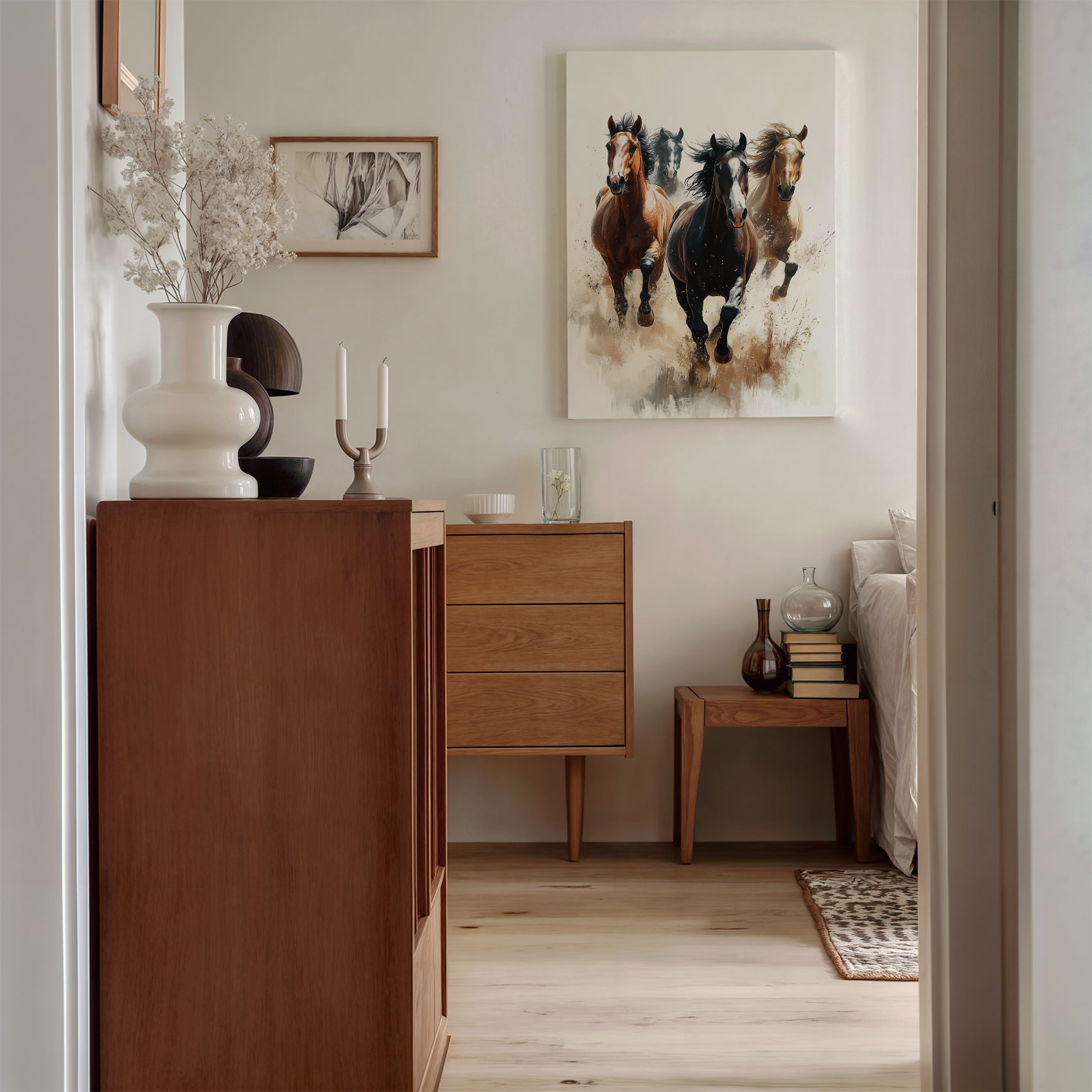 Vier galopperende paarden
