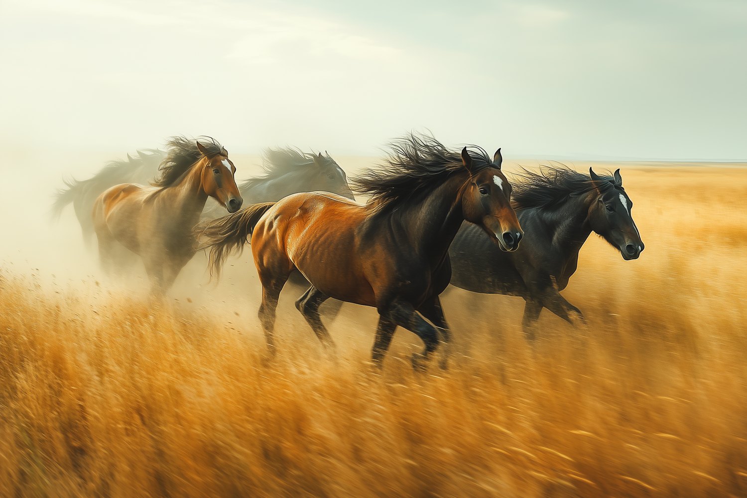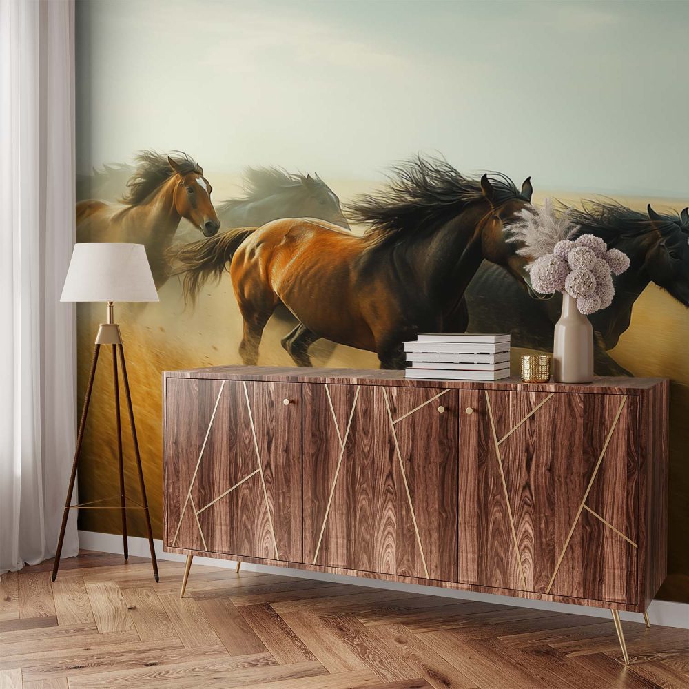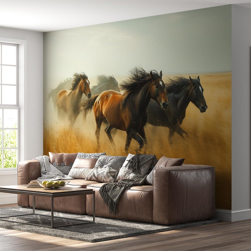 Terug naar collectie / Behang / Vier galopperende paarden behang