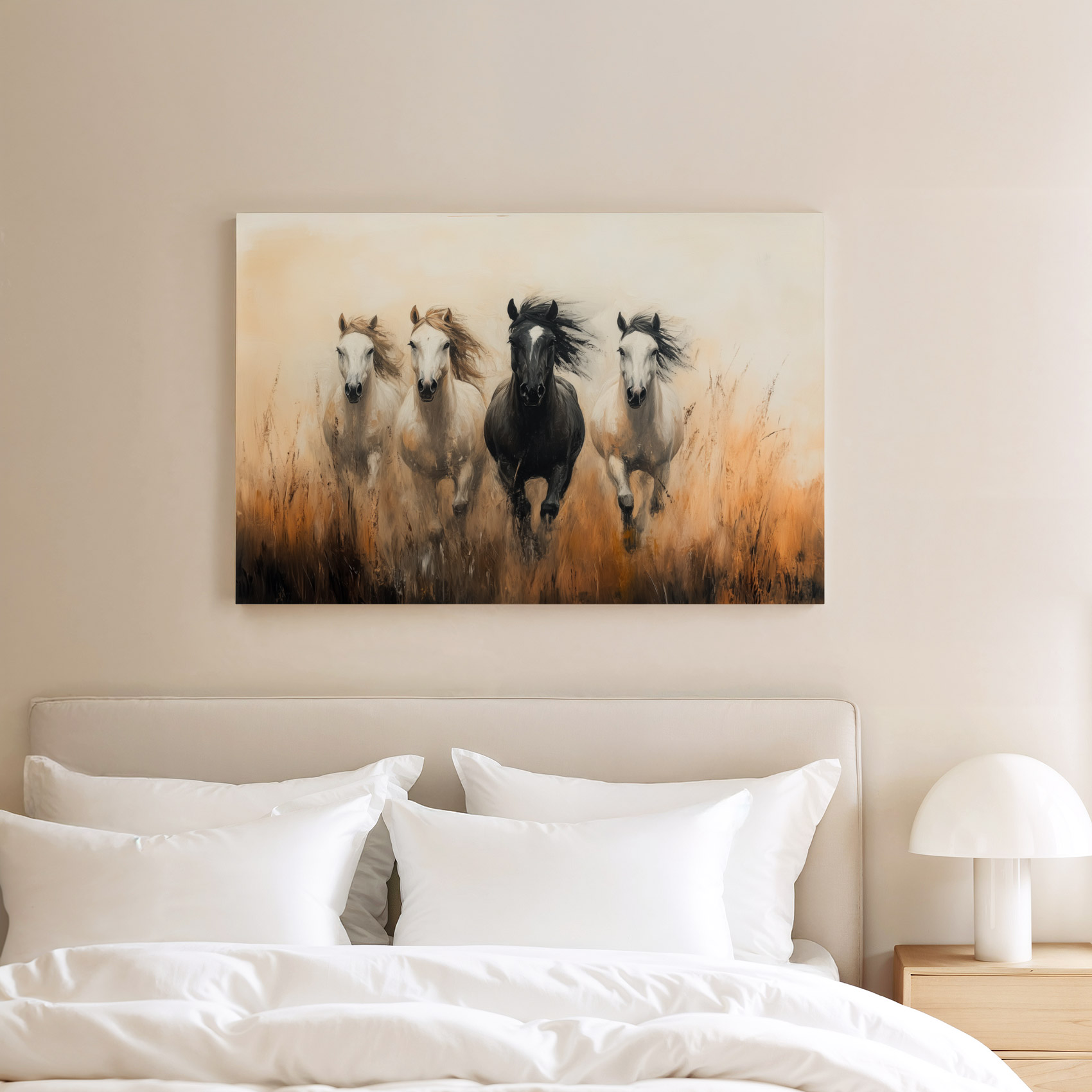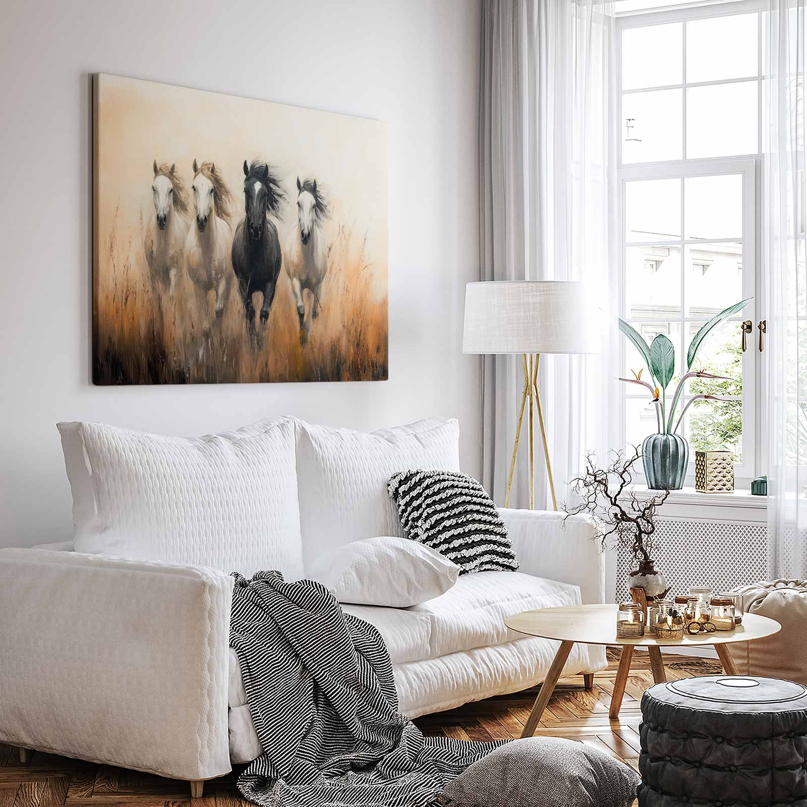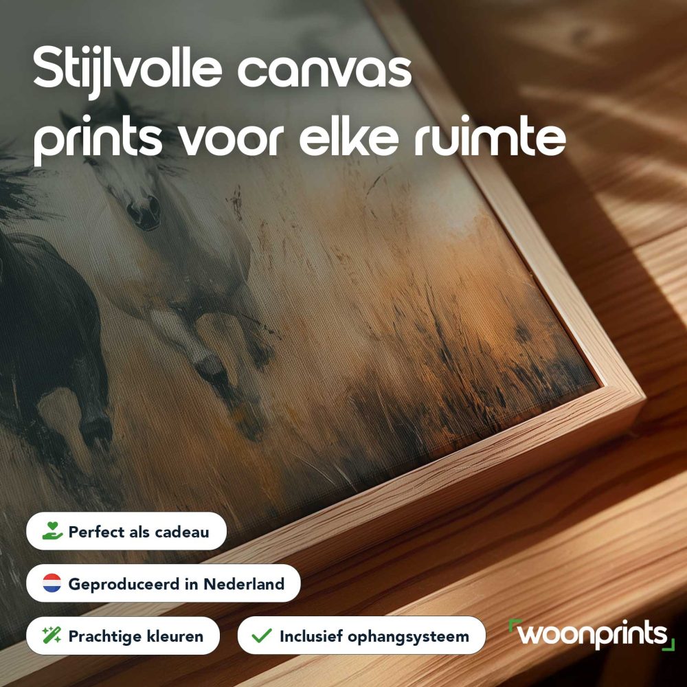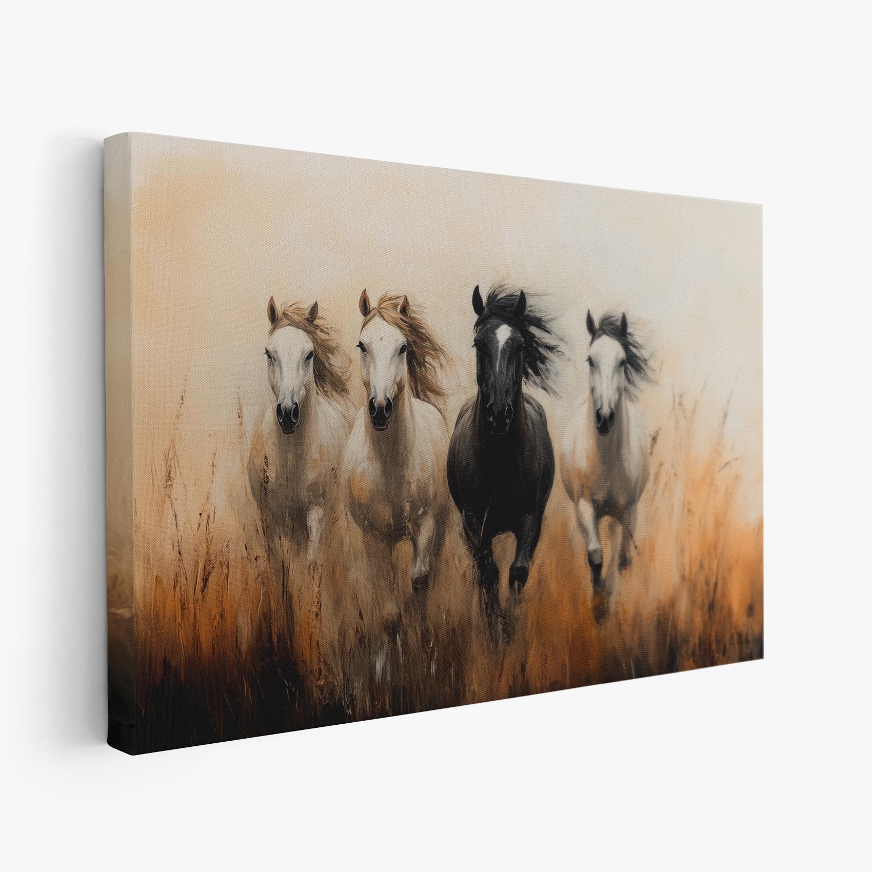 Terug naar collectie / Schilderijen / Dieren Schilderij / Vier galopperende paarden in gras