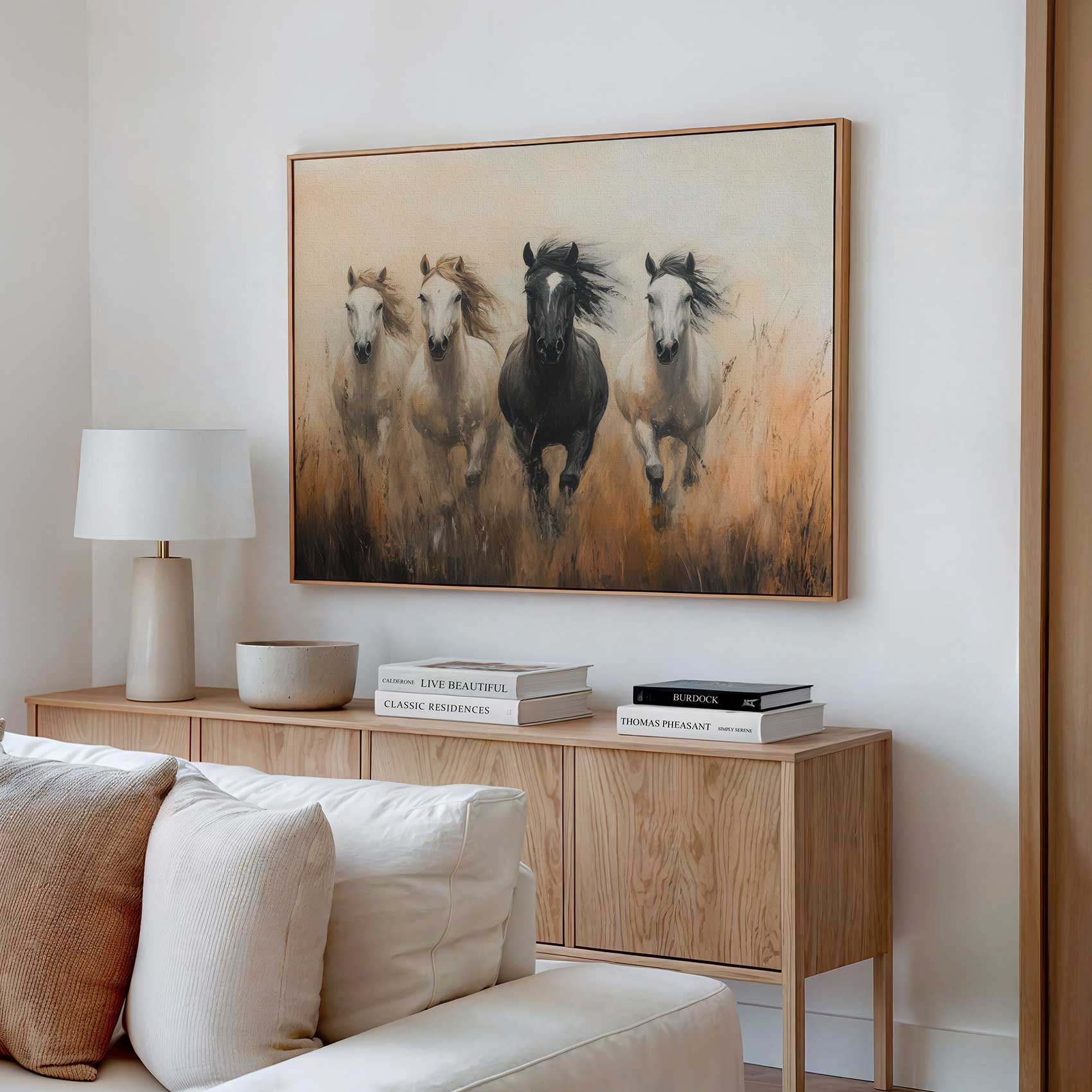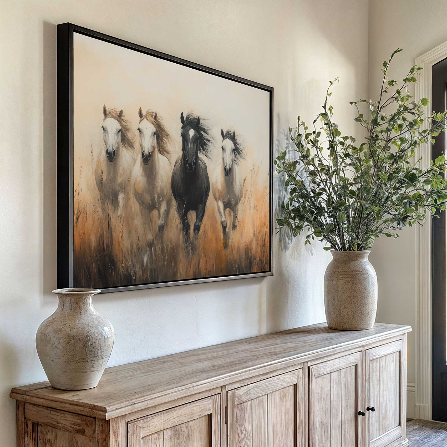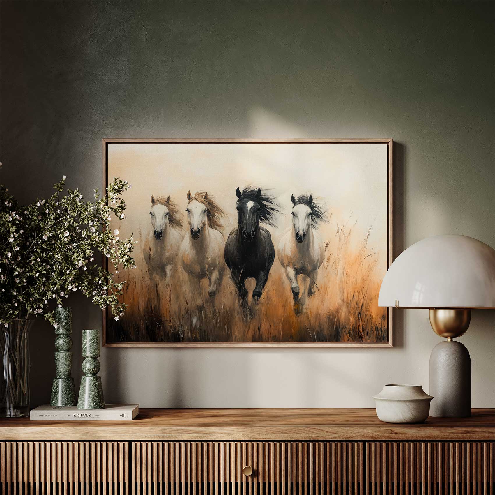 Terug naar collectie / Schilderijen / Dieren Schilderij / Vier galopperende paarden in gras