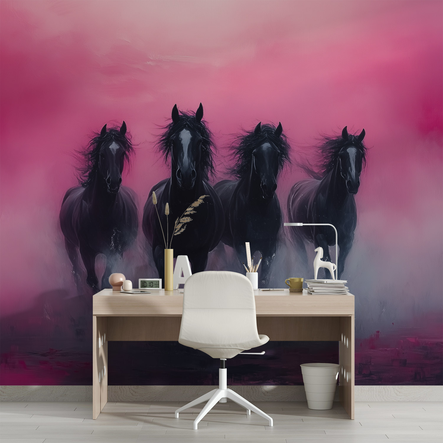 Terug naar collectie / Behang / Vier zwarte paarden in galop behang