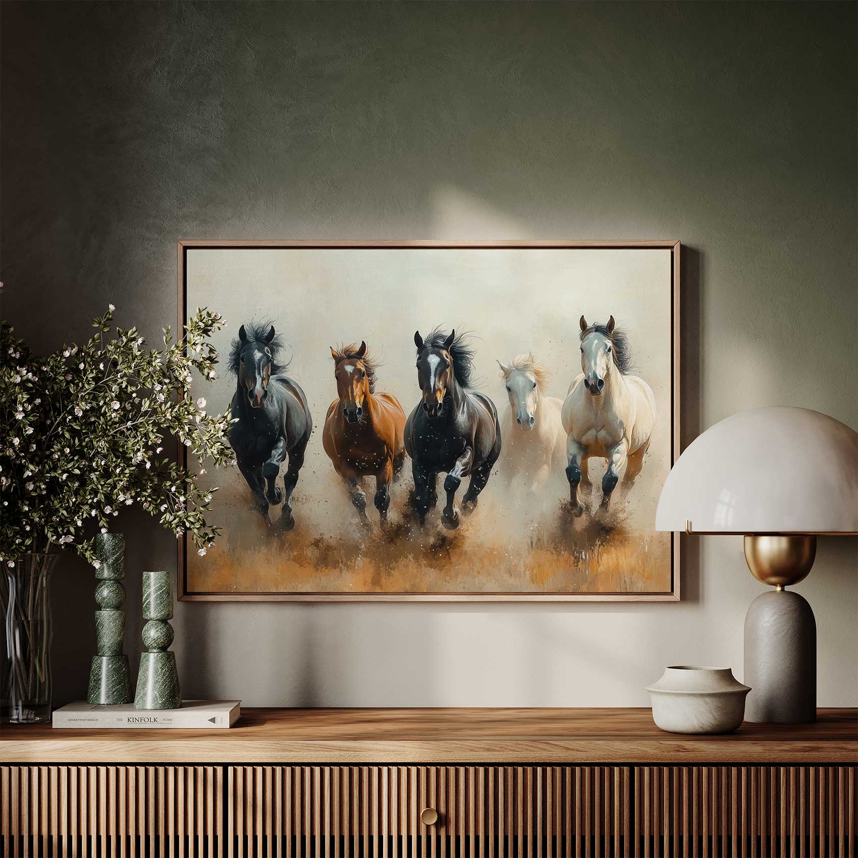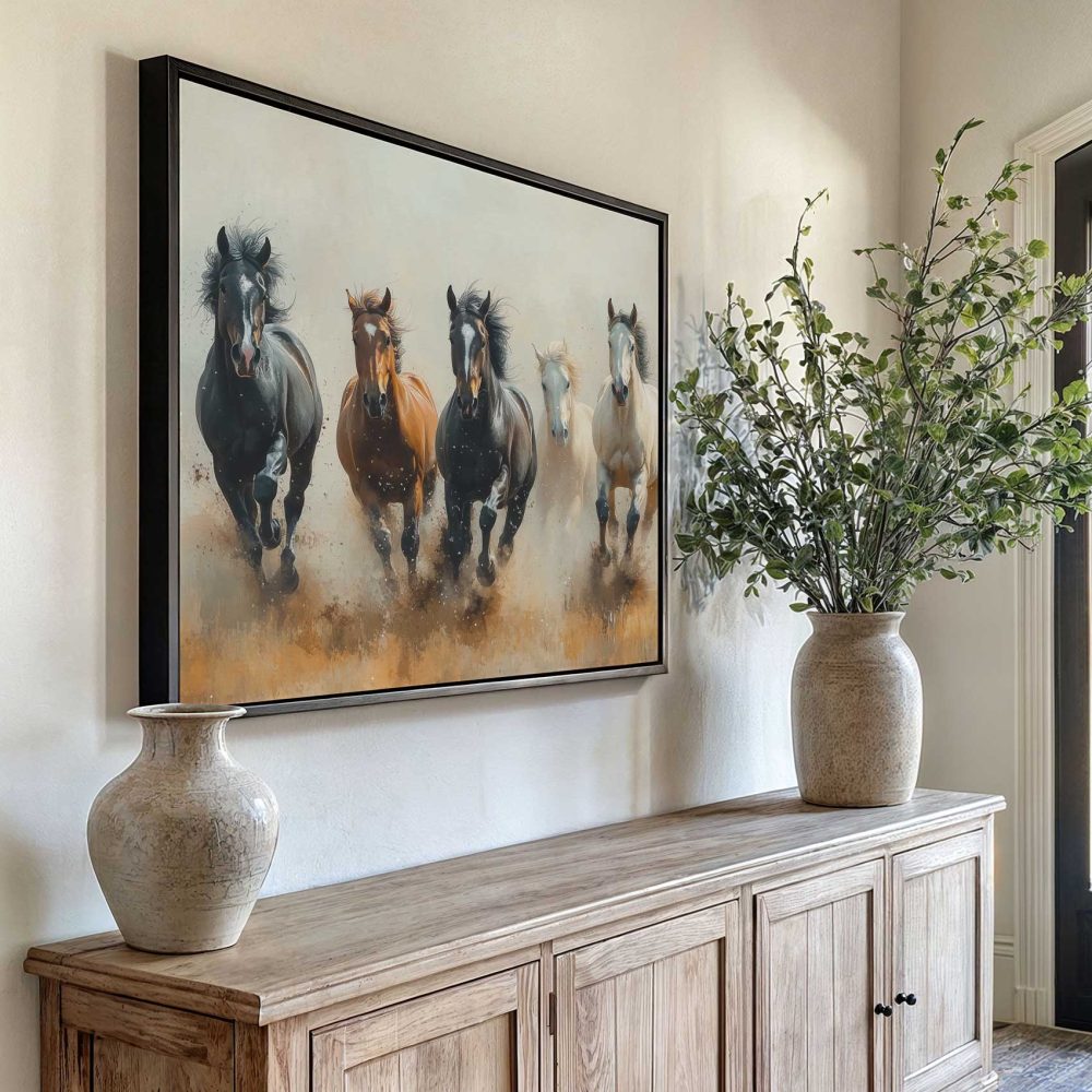 Terug naar collectie / Schilderijen / Dieren Schilderij / Vijf galopperende paarden