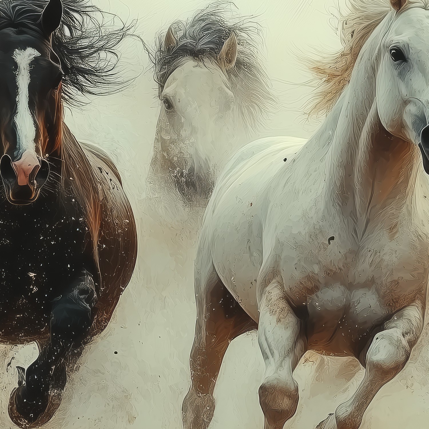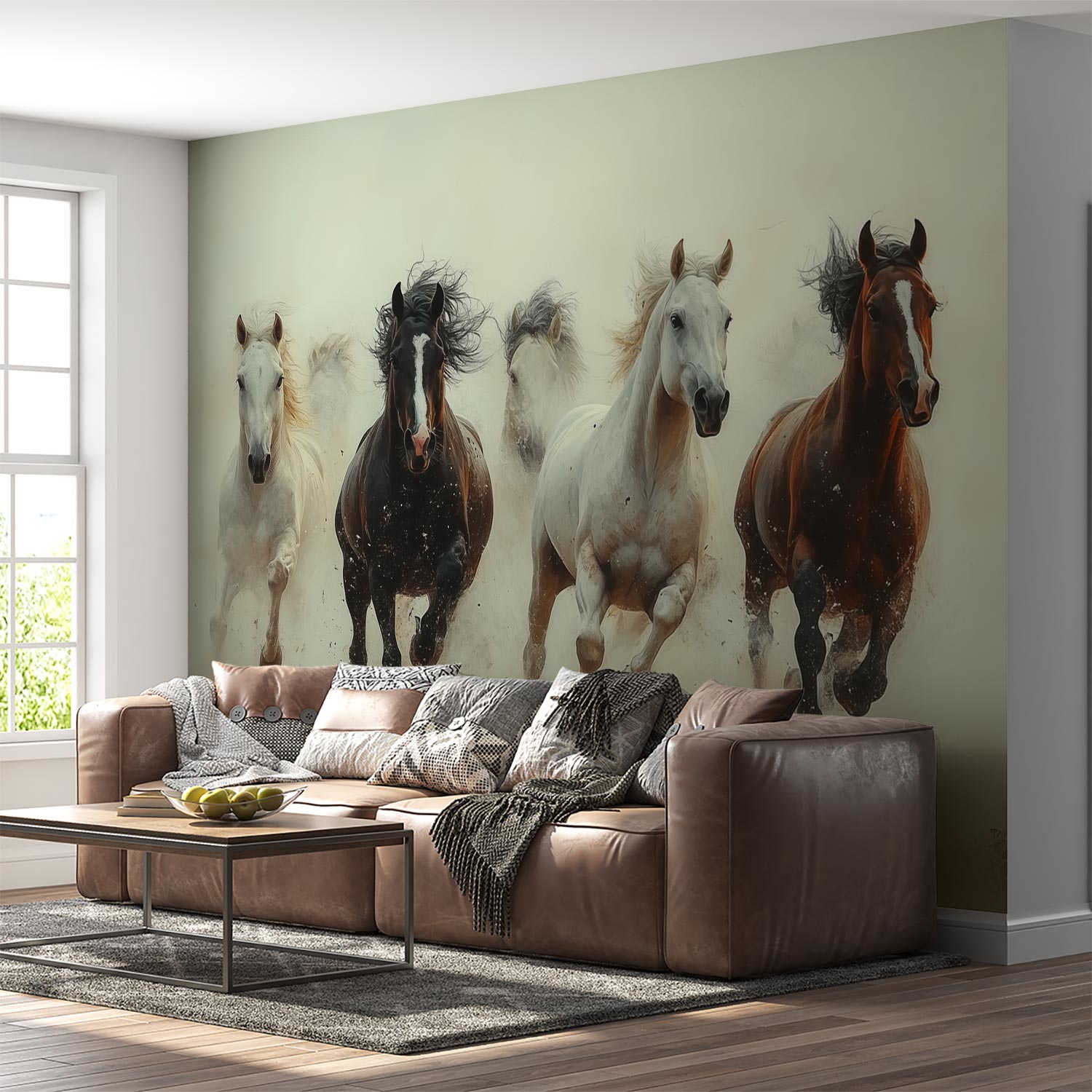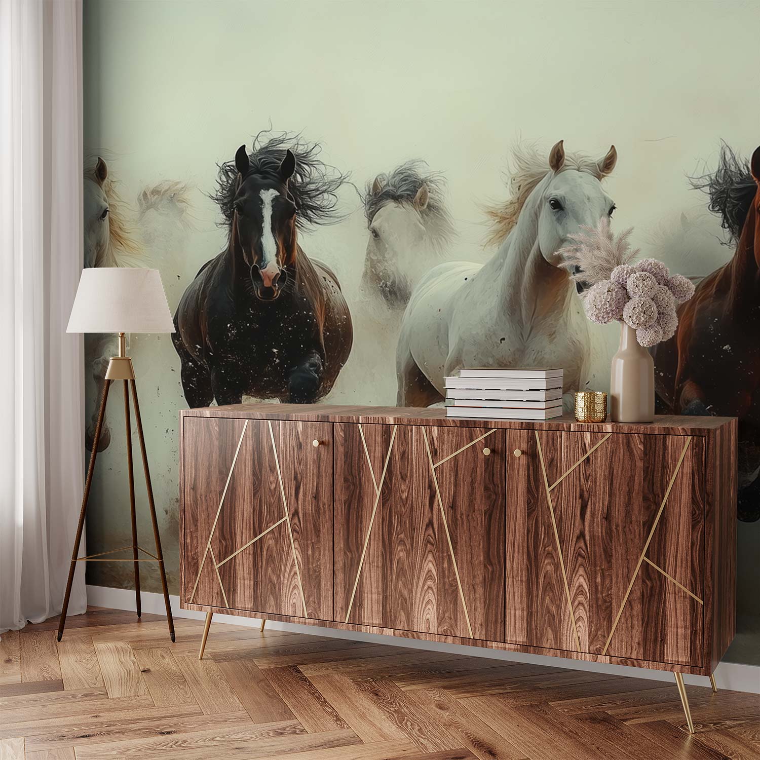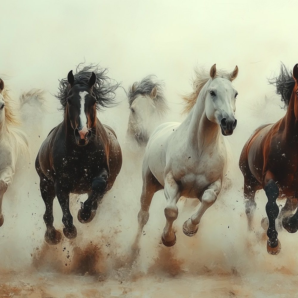 Terug naar collectie / Behang / Vijf galopperende paarden behang