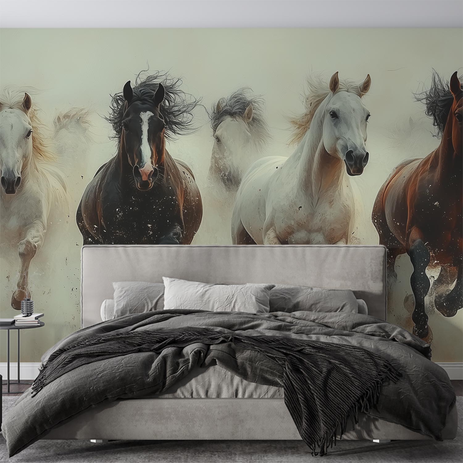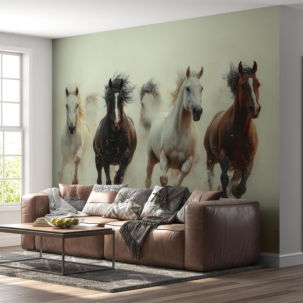 Vijf galopperende paarden behang