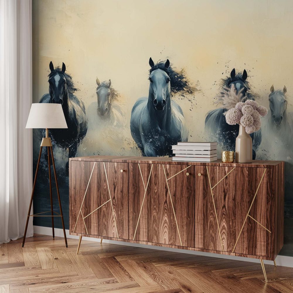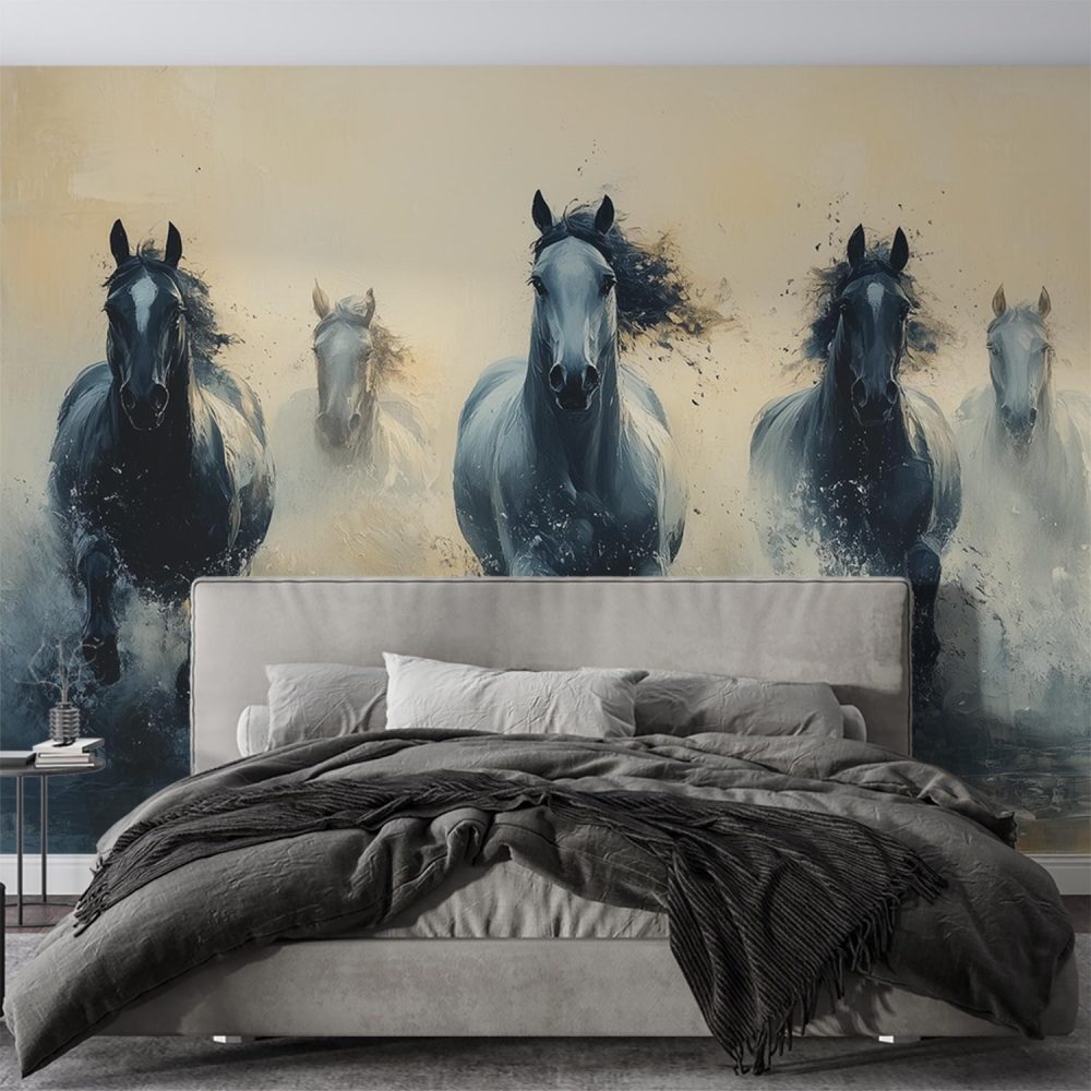 Terug naar collectie / Behang / Vijf paarden in volle galop behang
