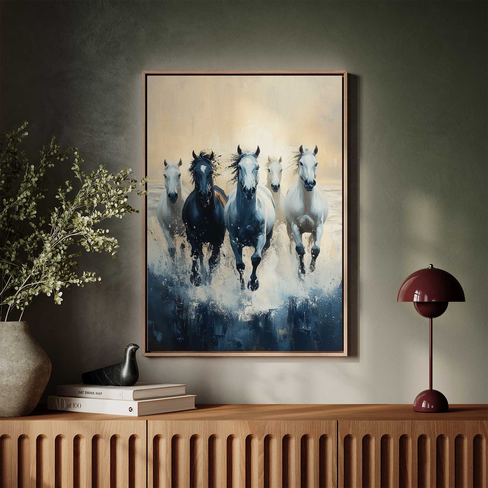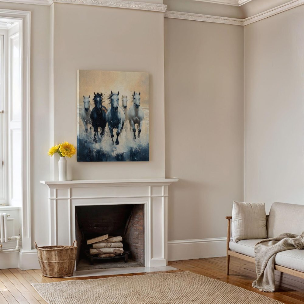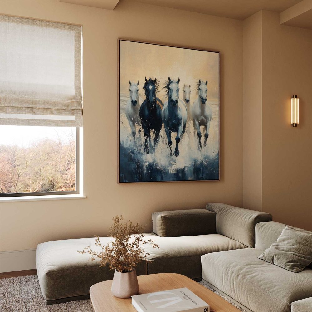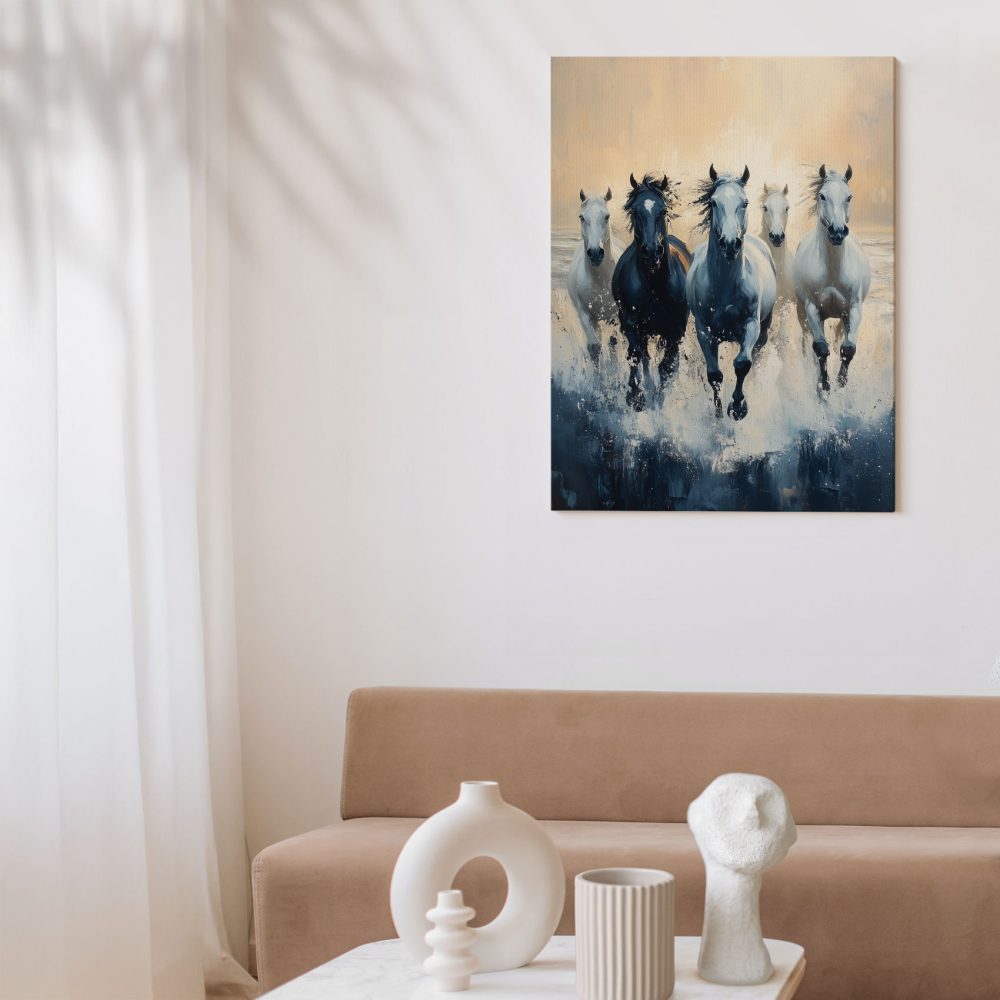Terug naar collectie / Schilderijen / Dieren Schilderij / Vijf paarden in volle ren