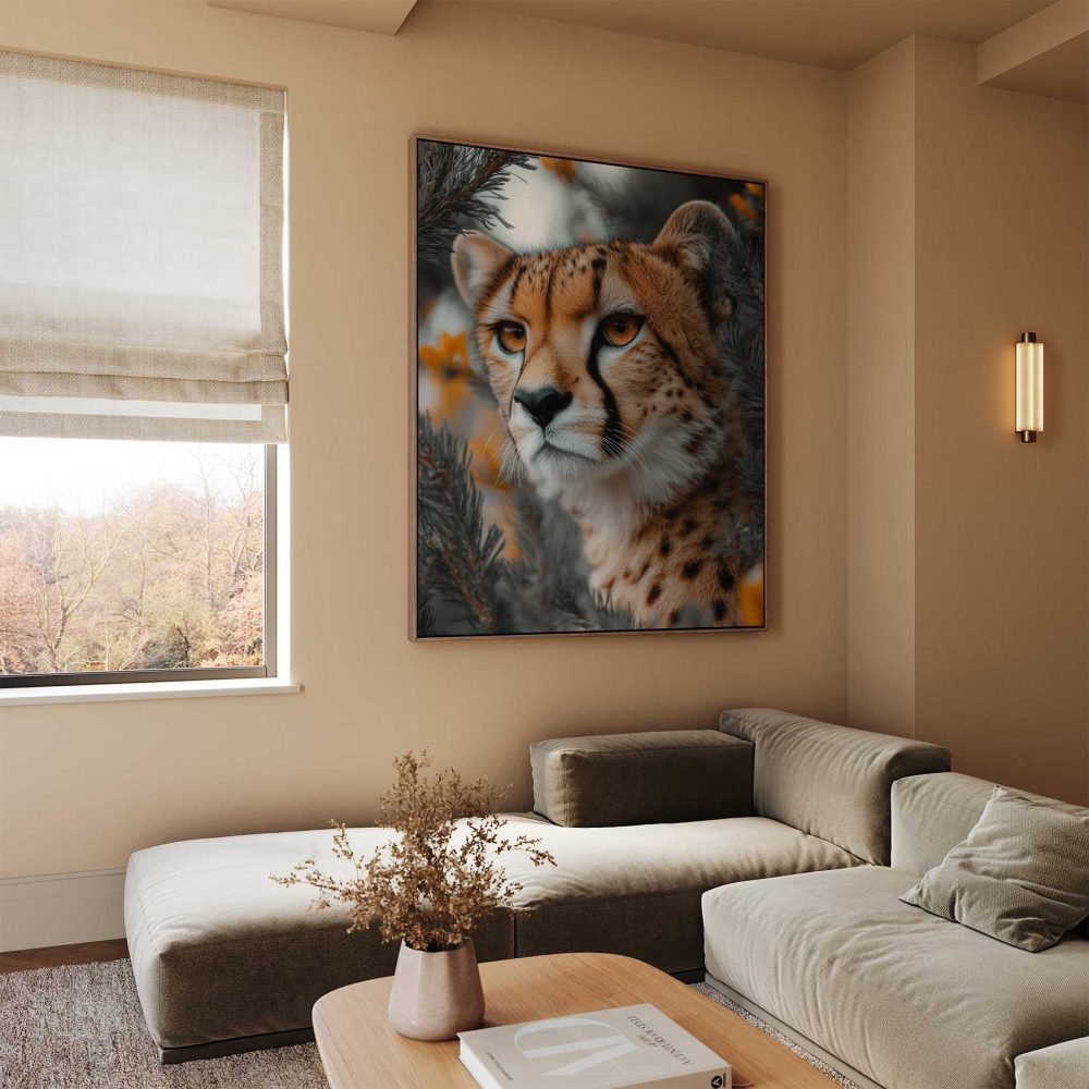 Terug naar collectie / Schilderijen / Dieren Schilderij / Vintage cheetah close-up portret