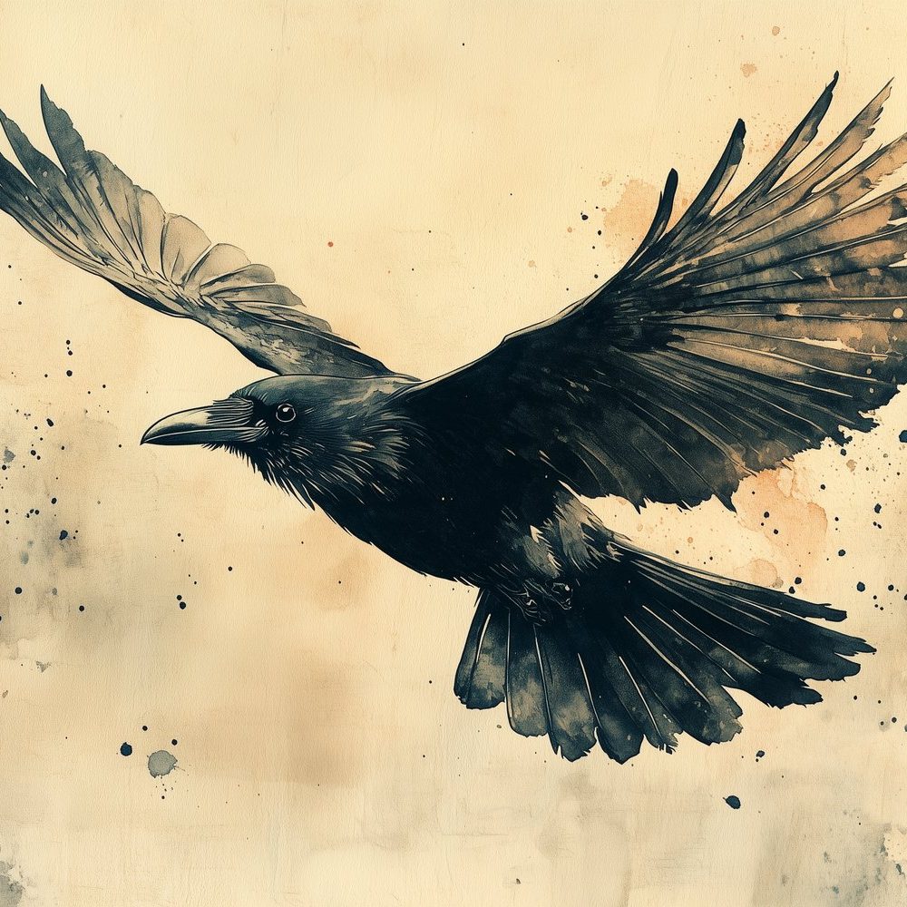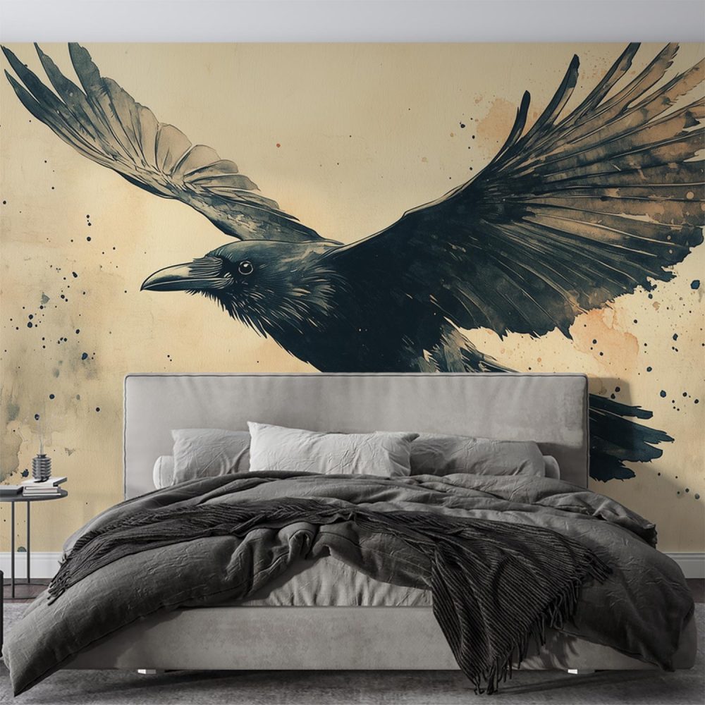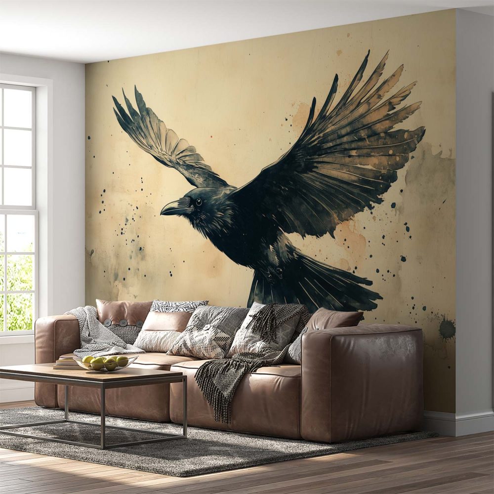 Vluchtende kraai kunstwerk behang