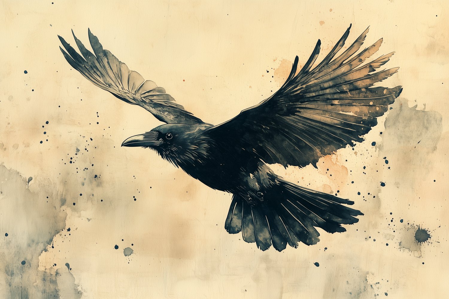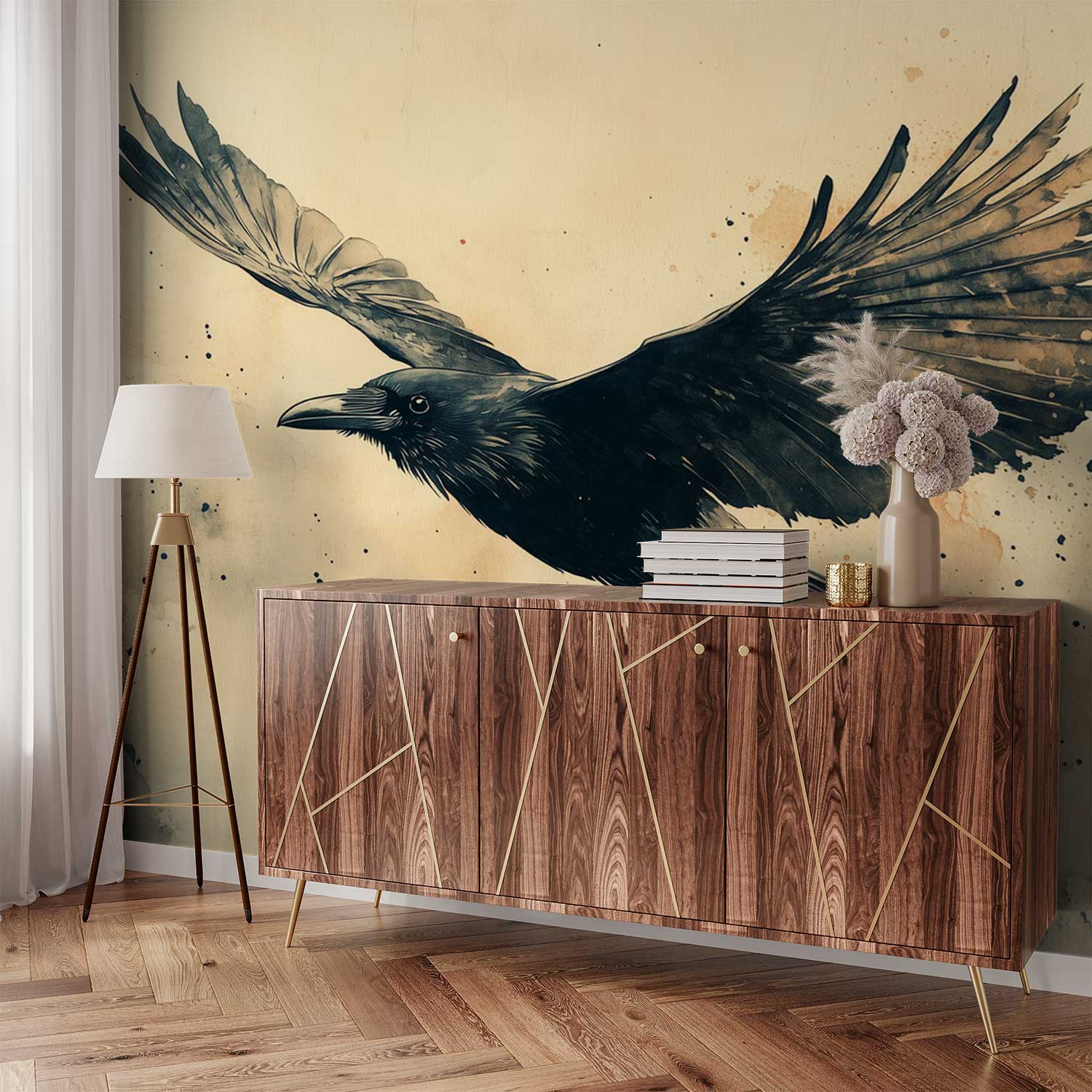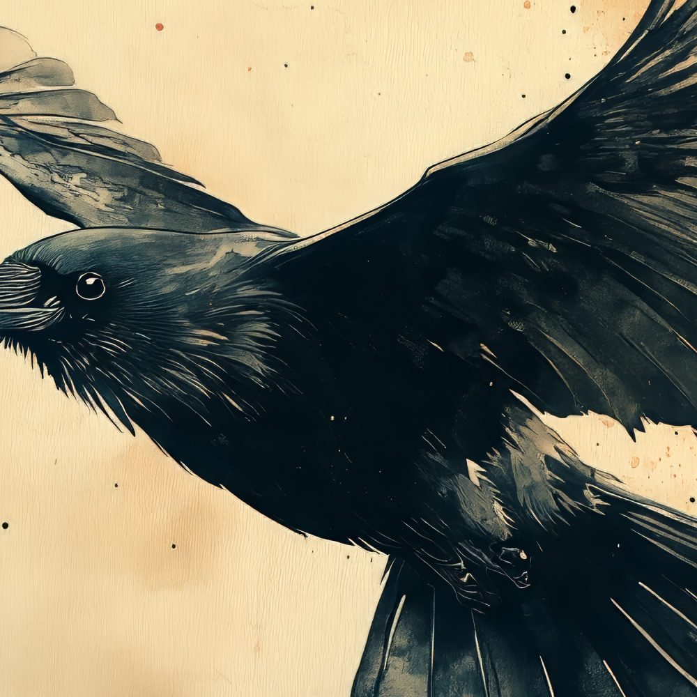 Vluchtende kraai kunstwerk behang