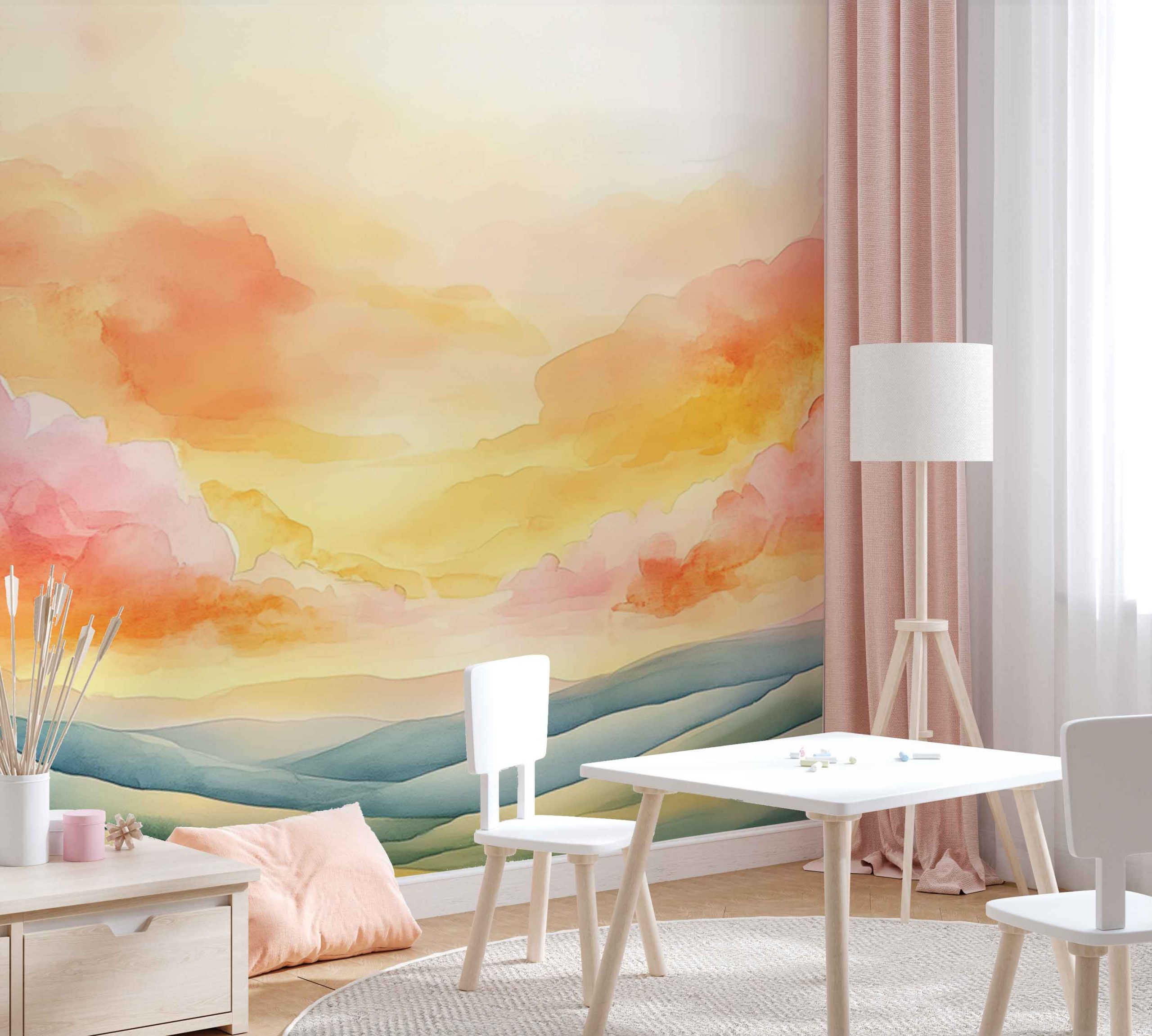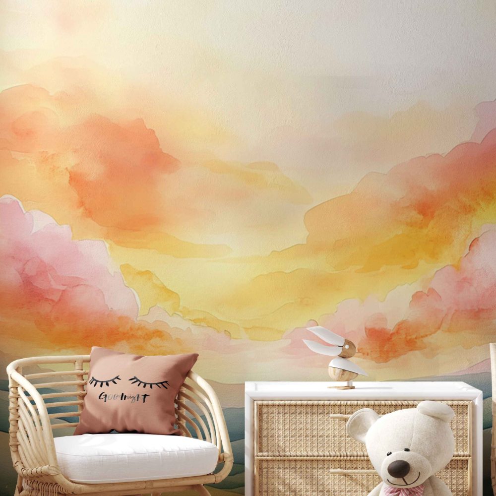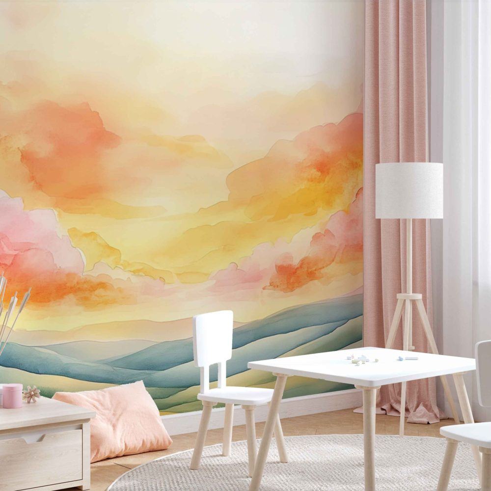 Terug naar collectie / Behang / Kinderkamer behang / Babykamer behang / Vredig berglandschap met kleurrijke lucht behang