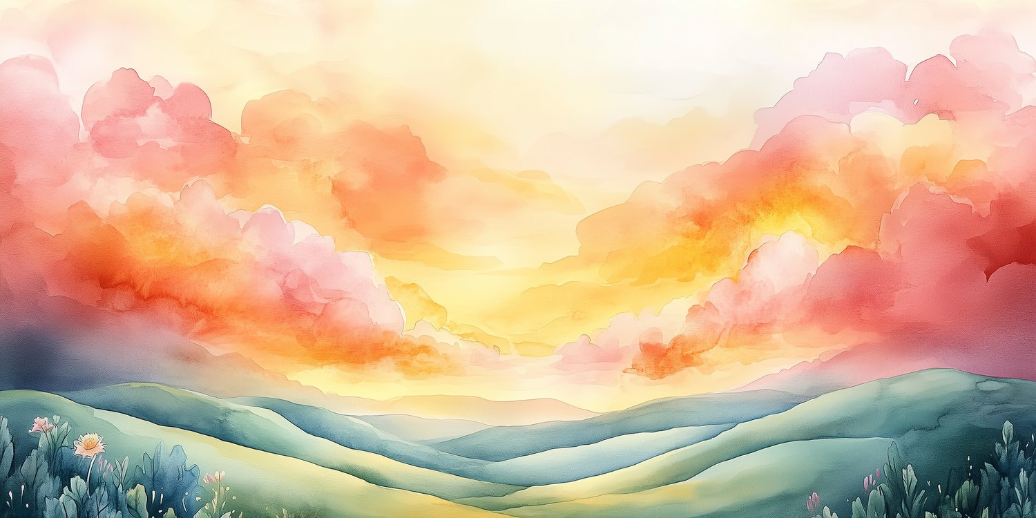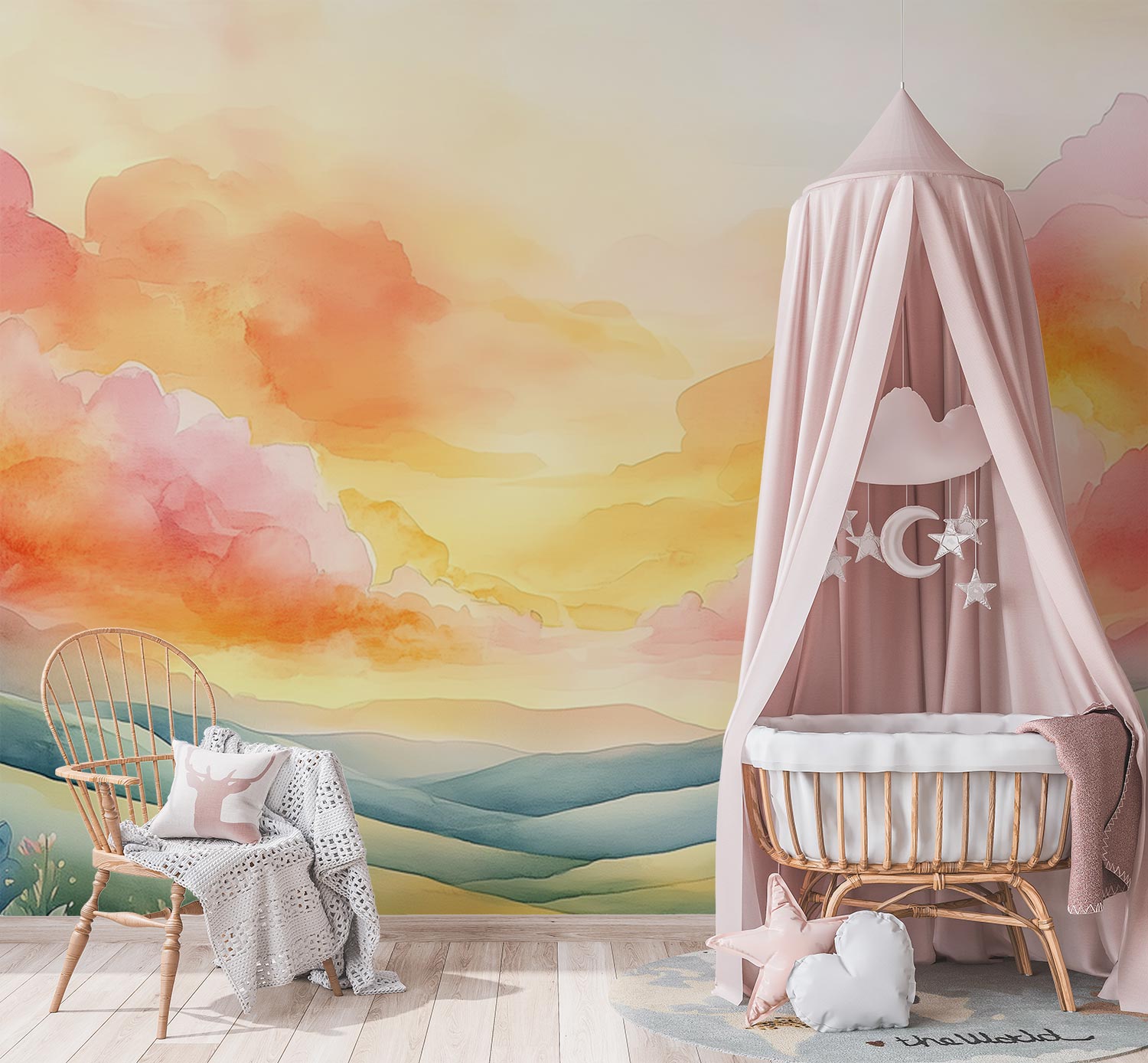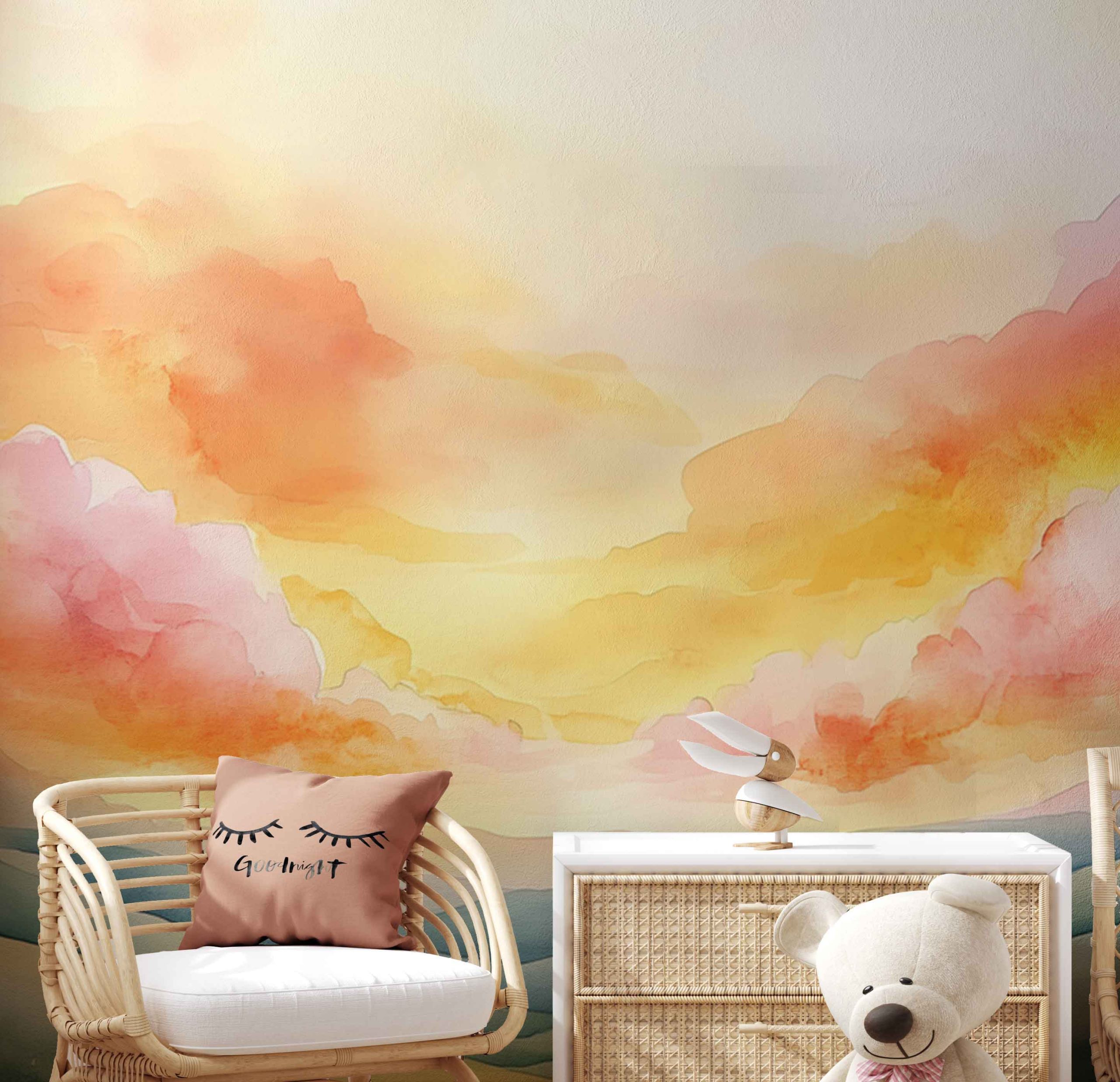 Terug naar collectie / Behang / Kinderkamer behang / Babykamer behang / Vredig berglandschap met kleurrijke lucht behang