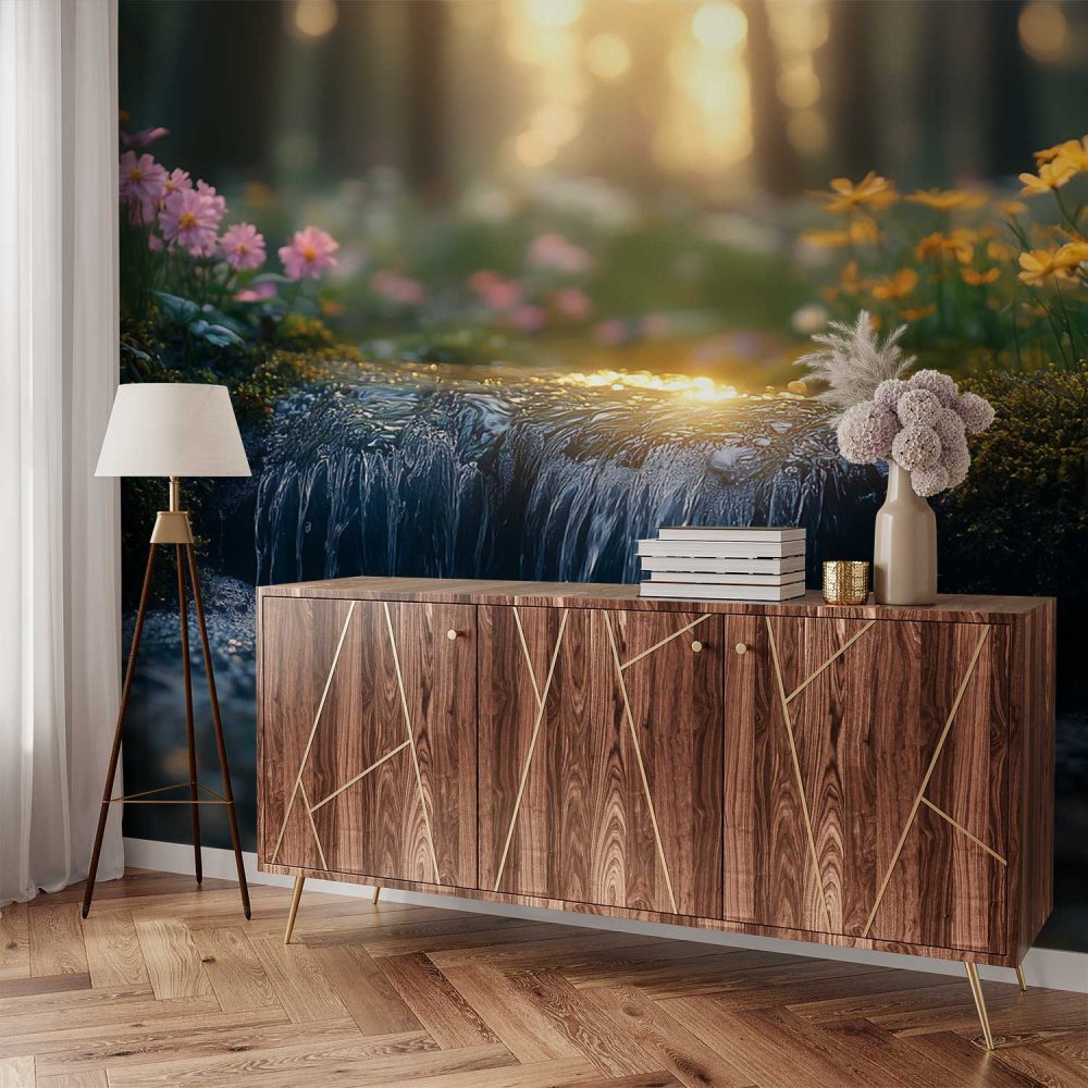 Terug naar collectie / Behang / Vredig waterval boslandschap behang
