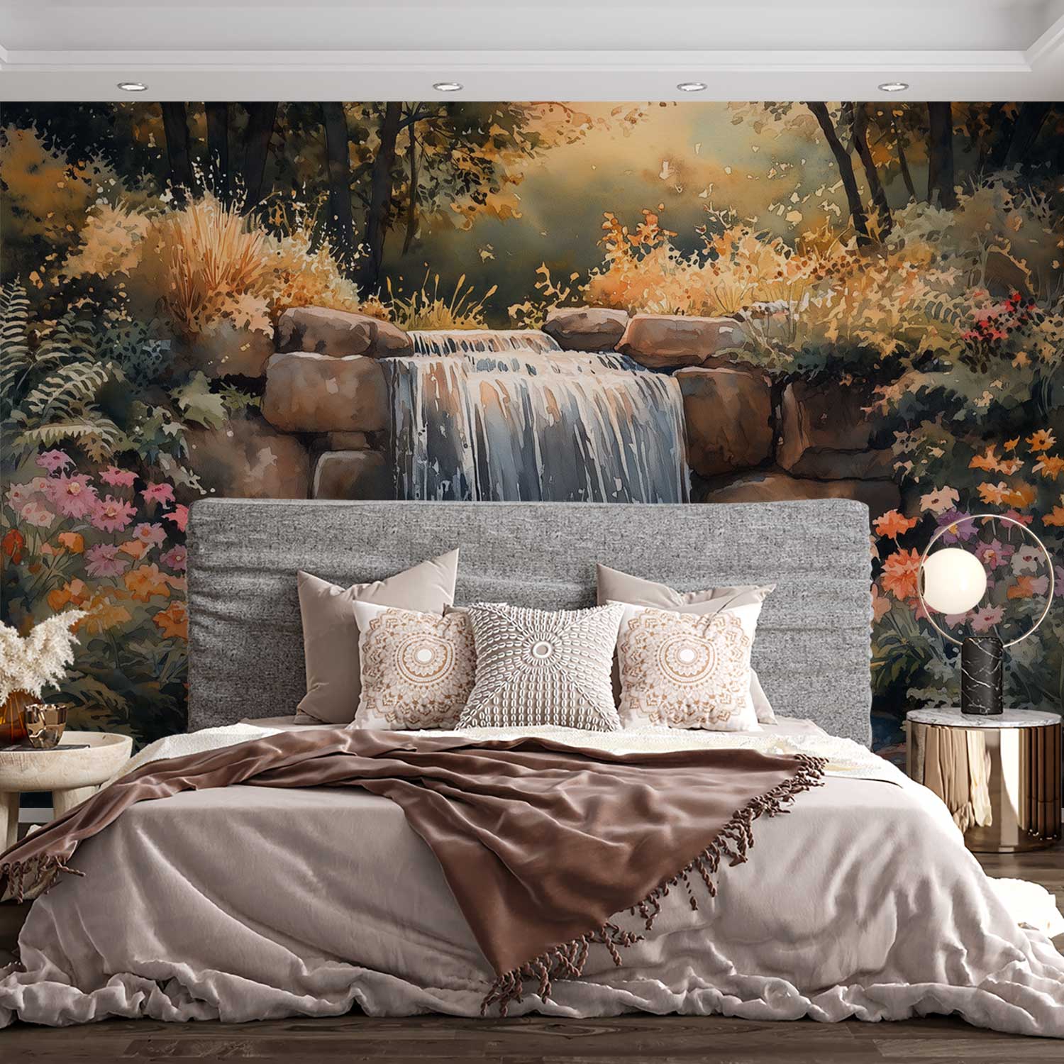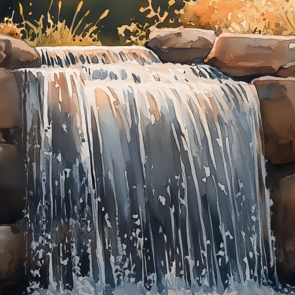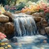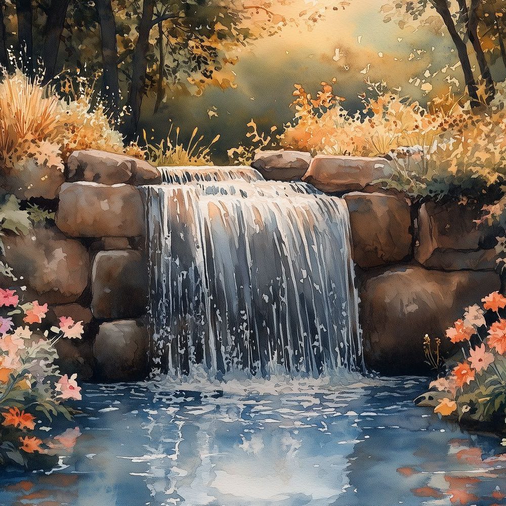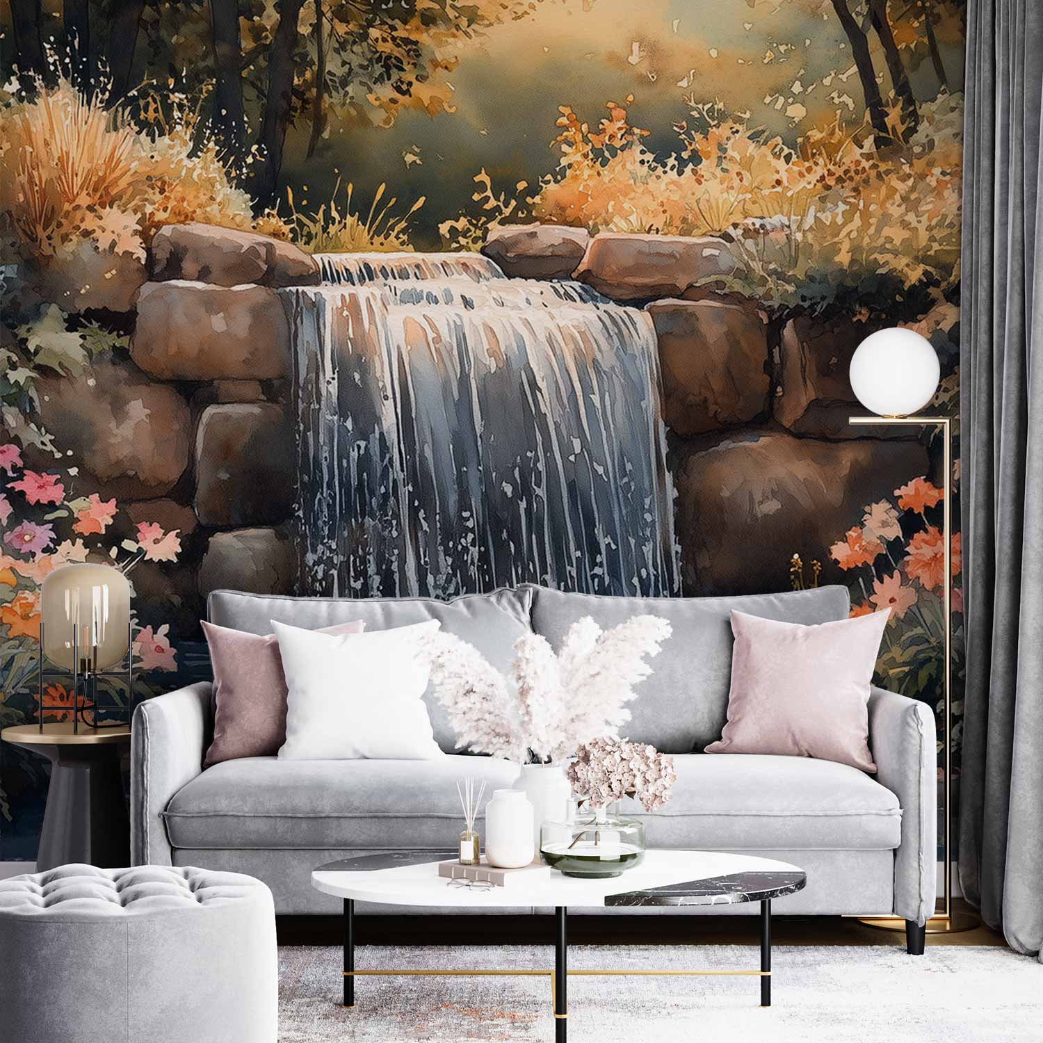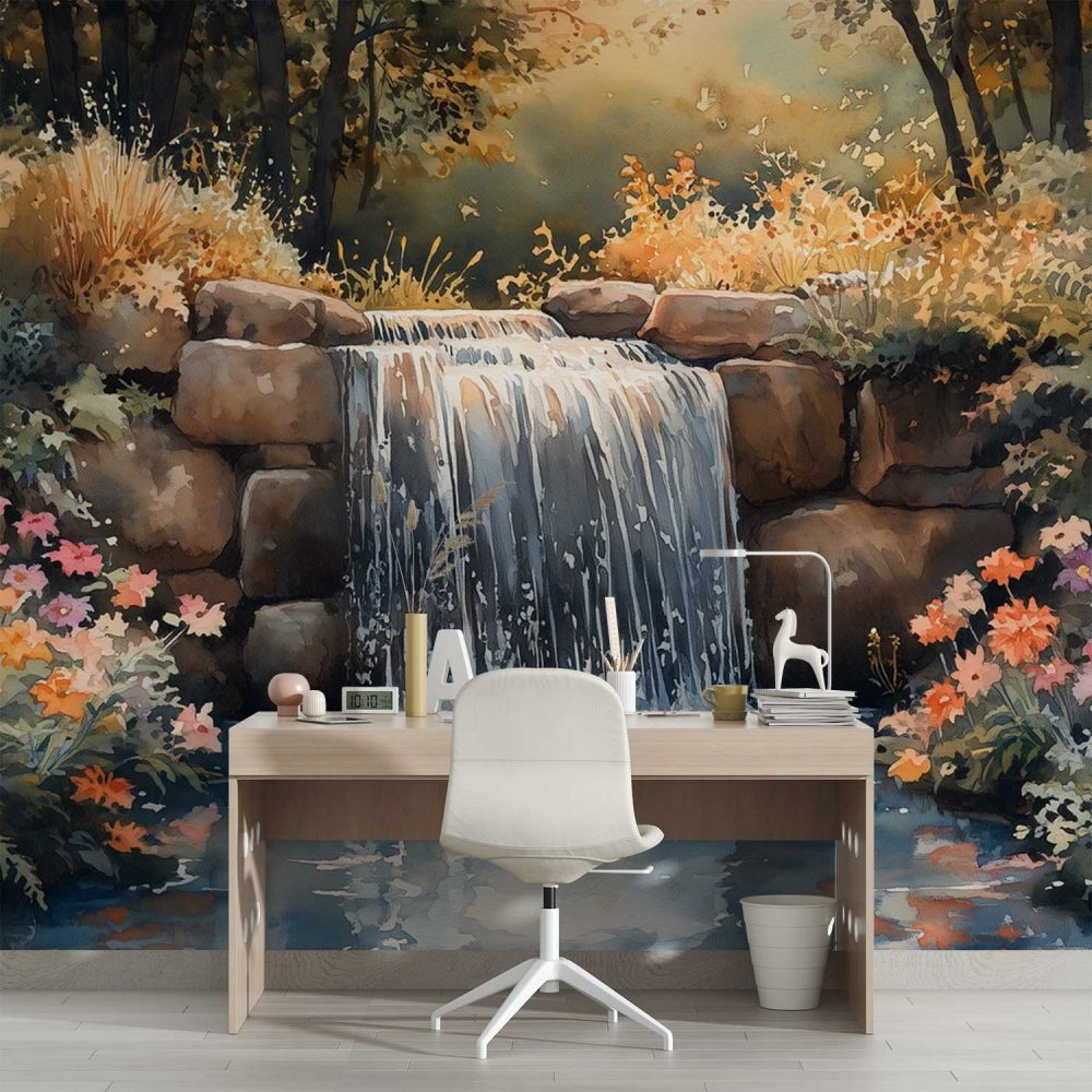 Vredig waterval waterverfschilderij behang