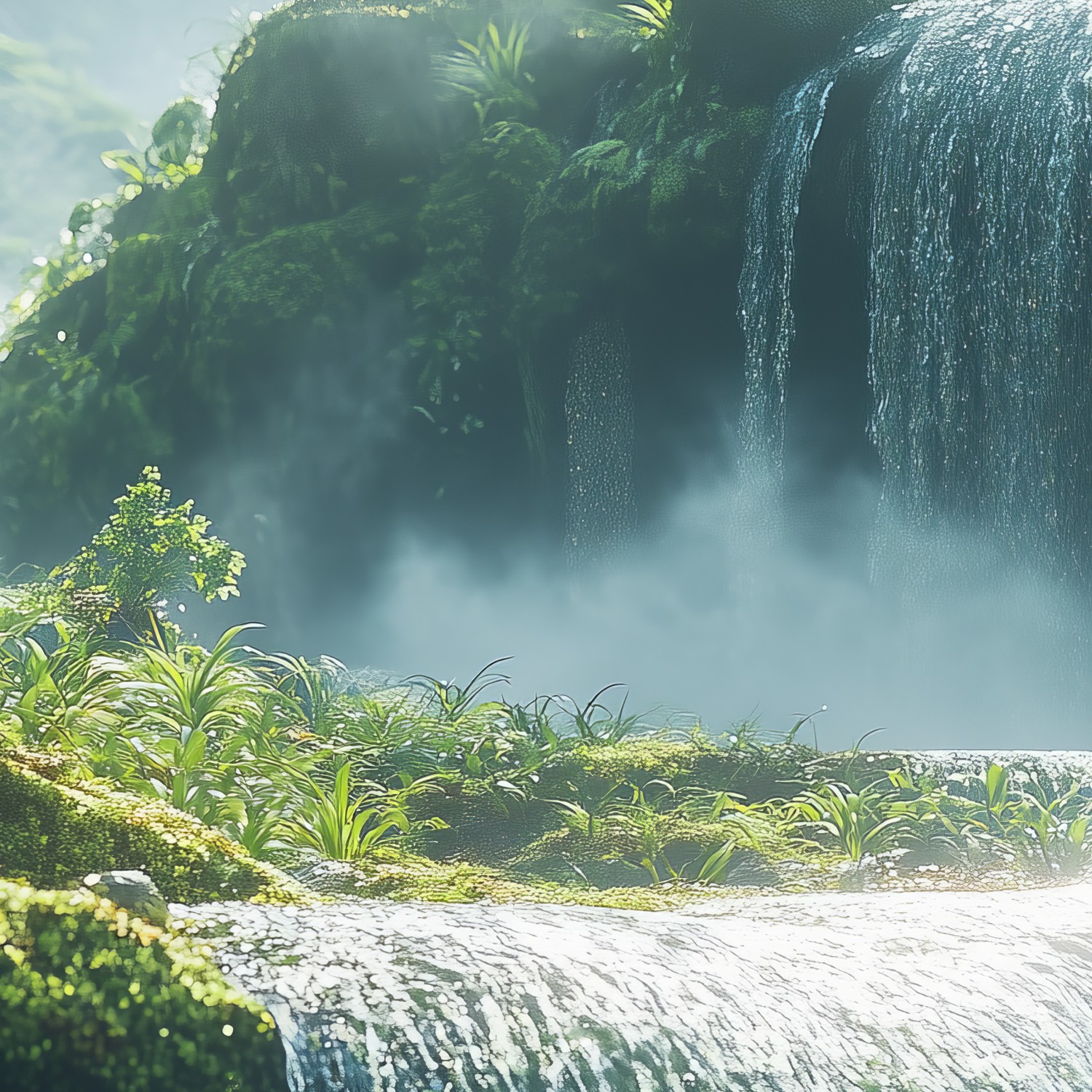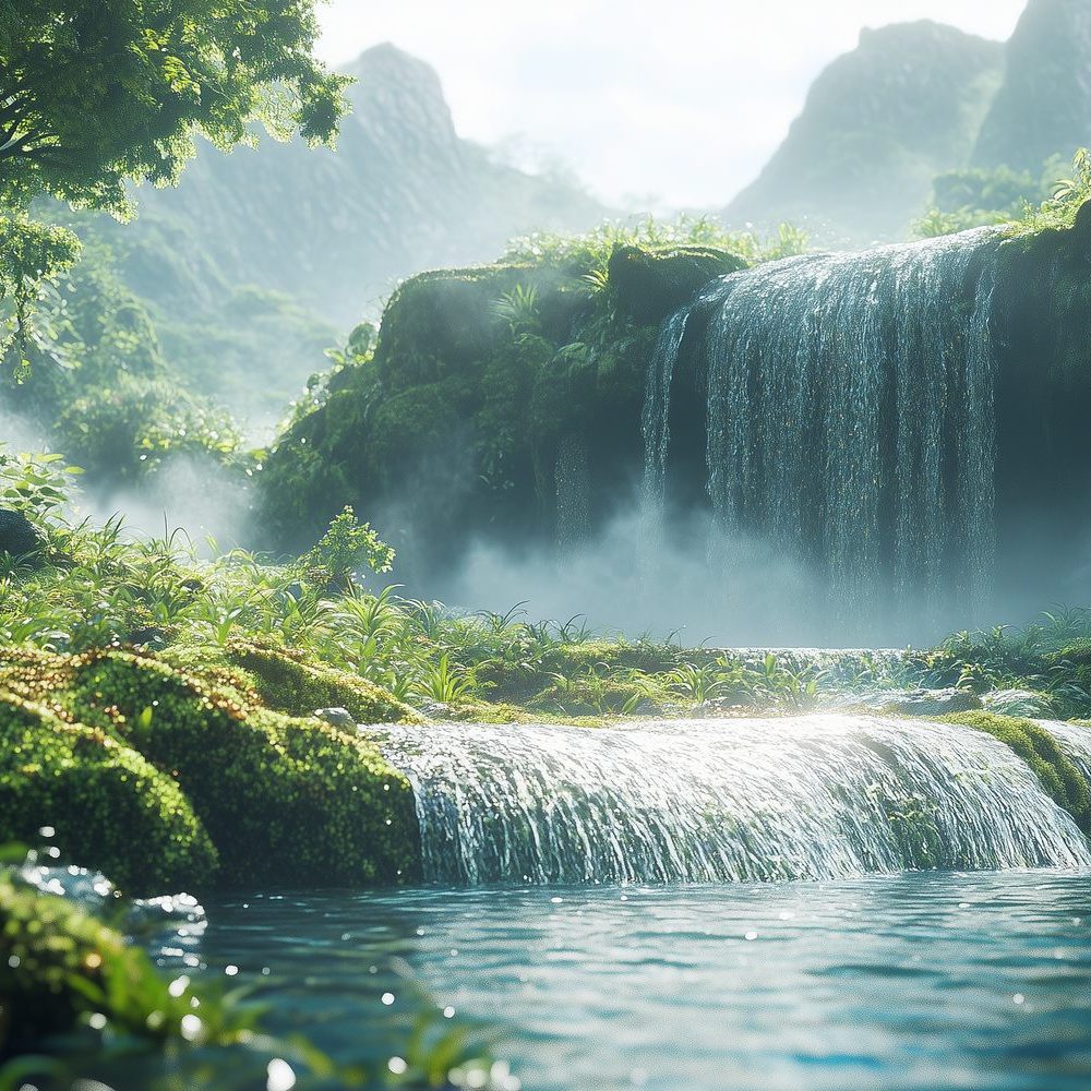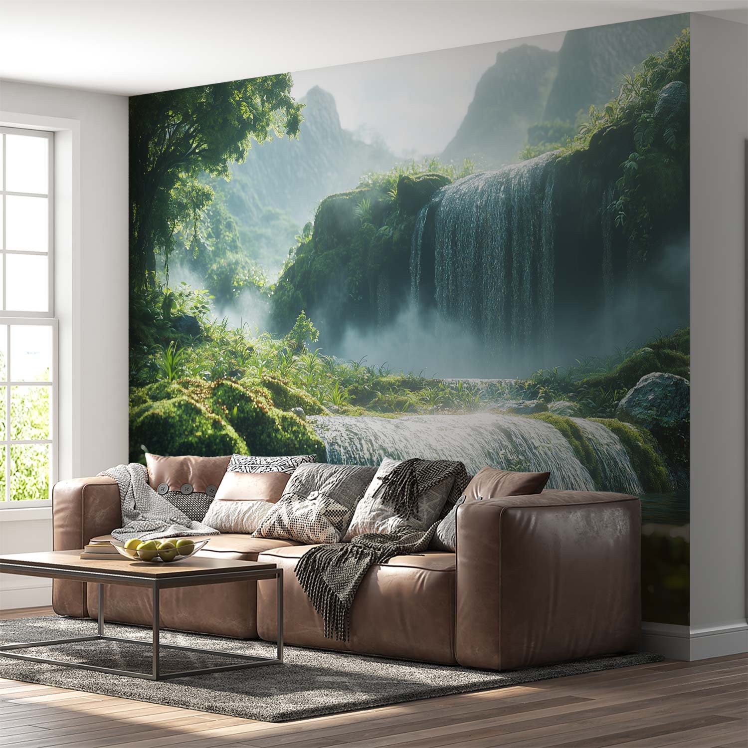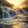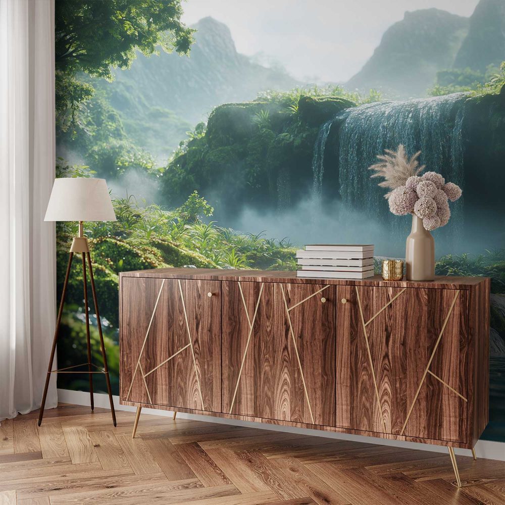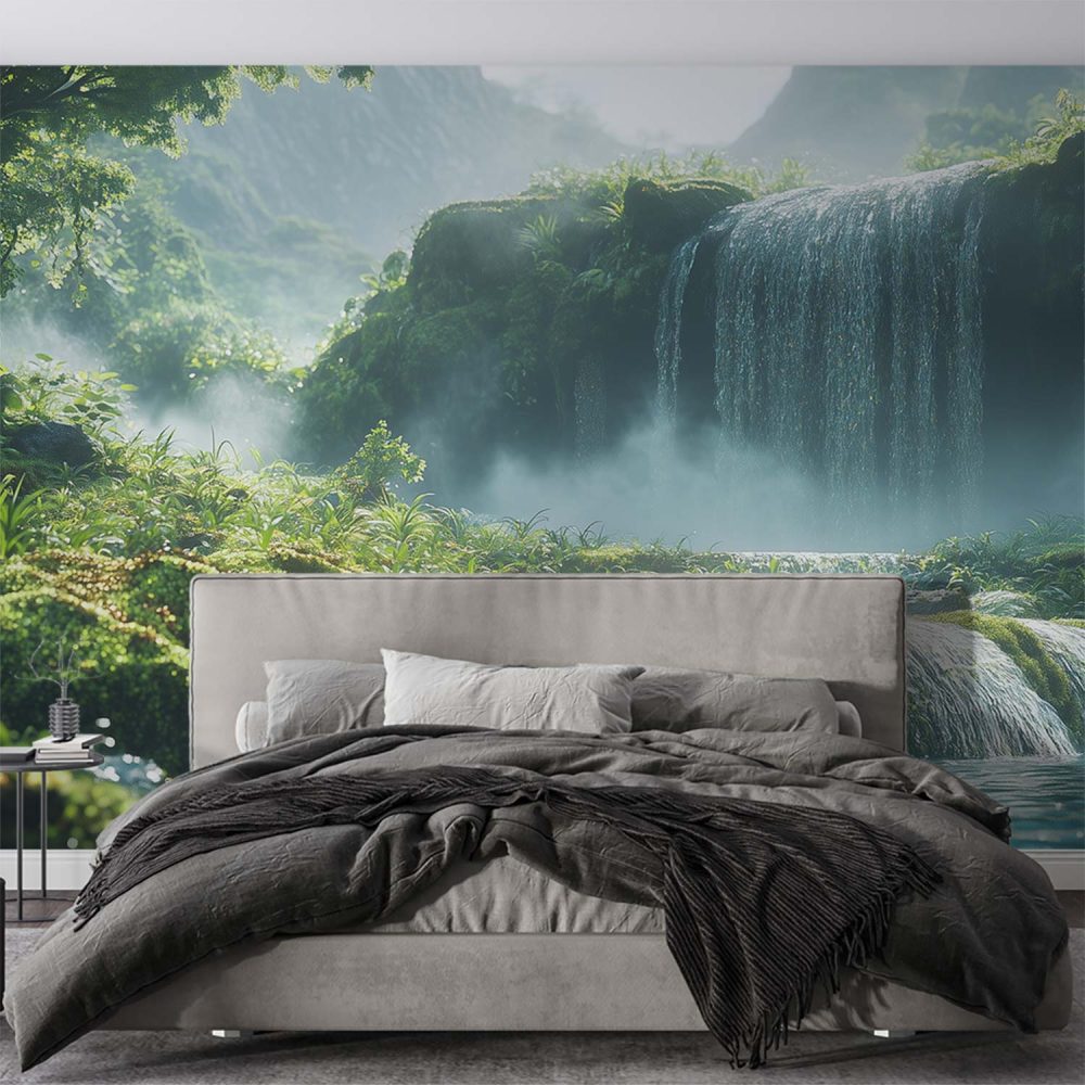 Vredige waterval in natuur behang