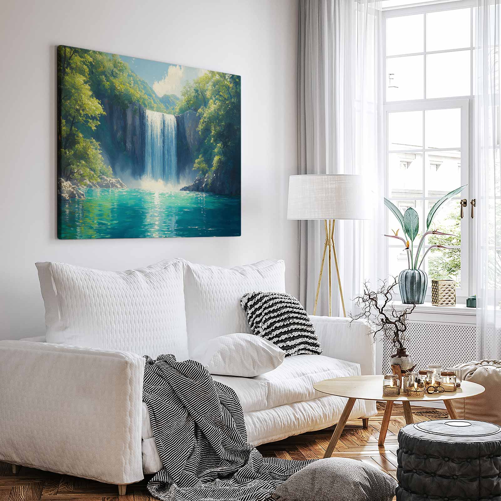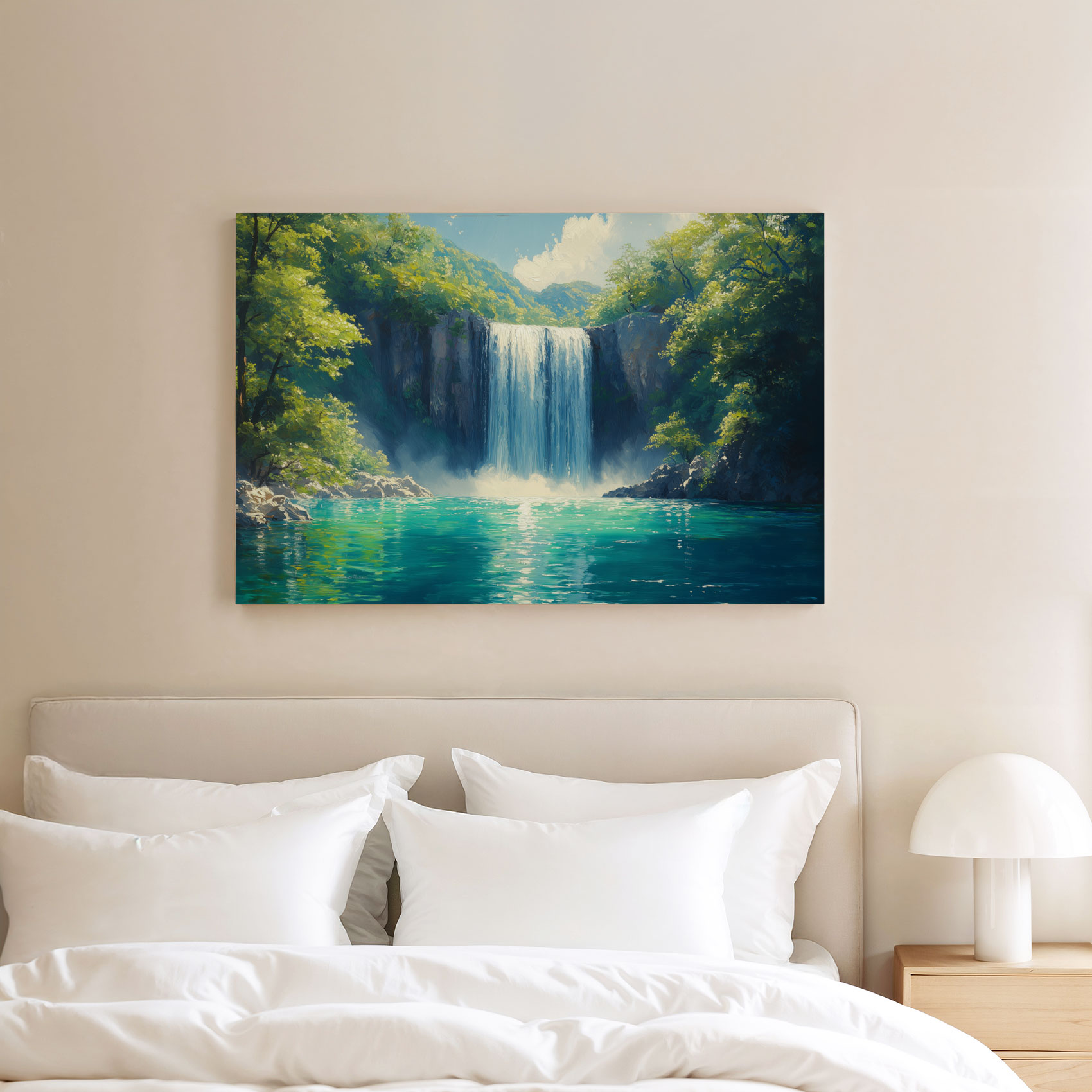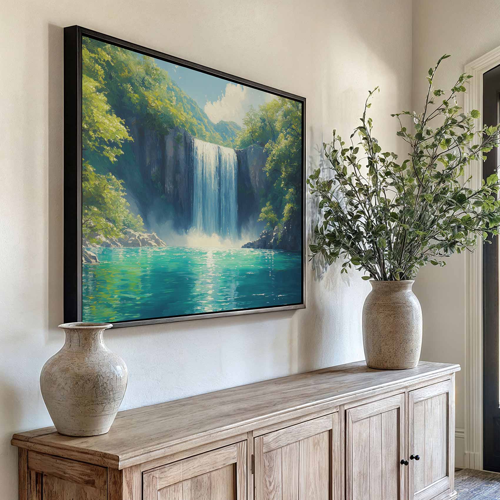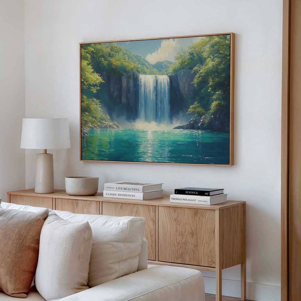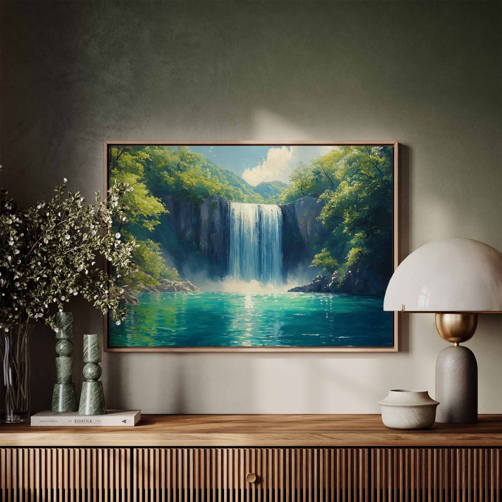 Terug naar collectie / Schilderijen / Bergen Schilderij / Vredige Waterval in Natuur
