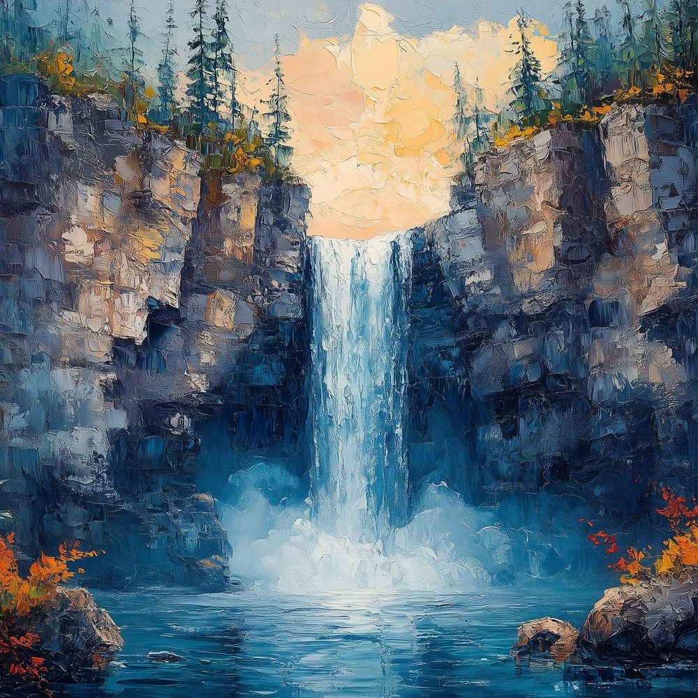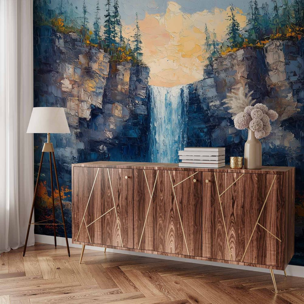 Terug naar collectie / Behang / Vredige waterval schildering behang