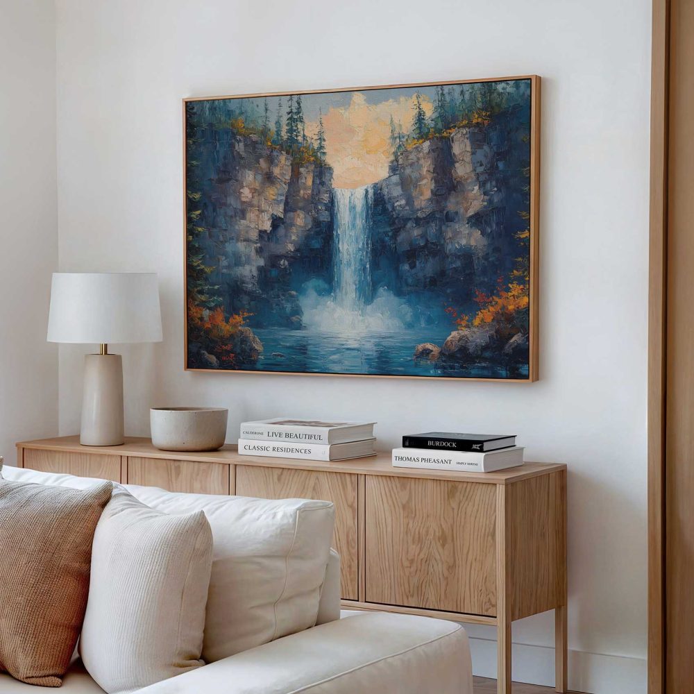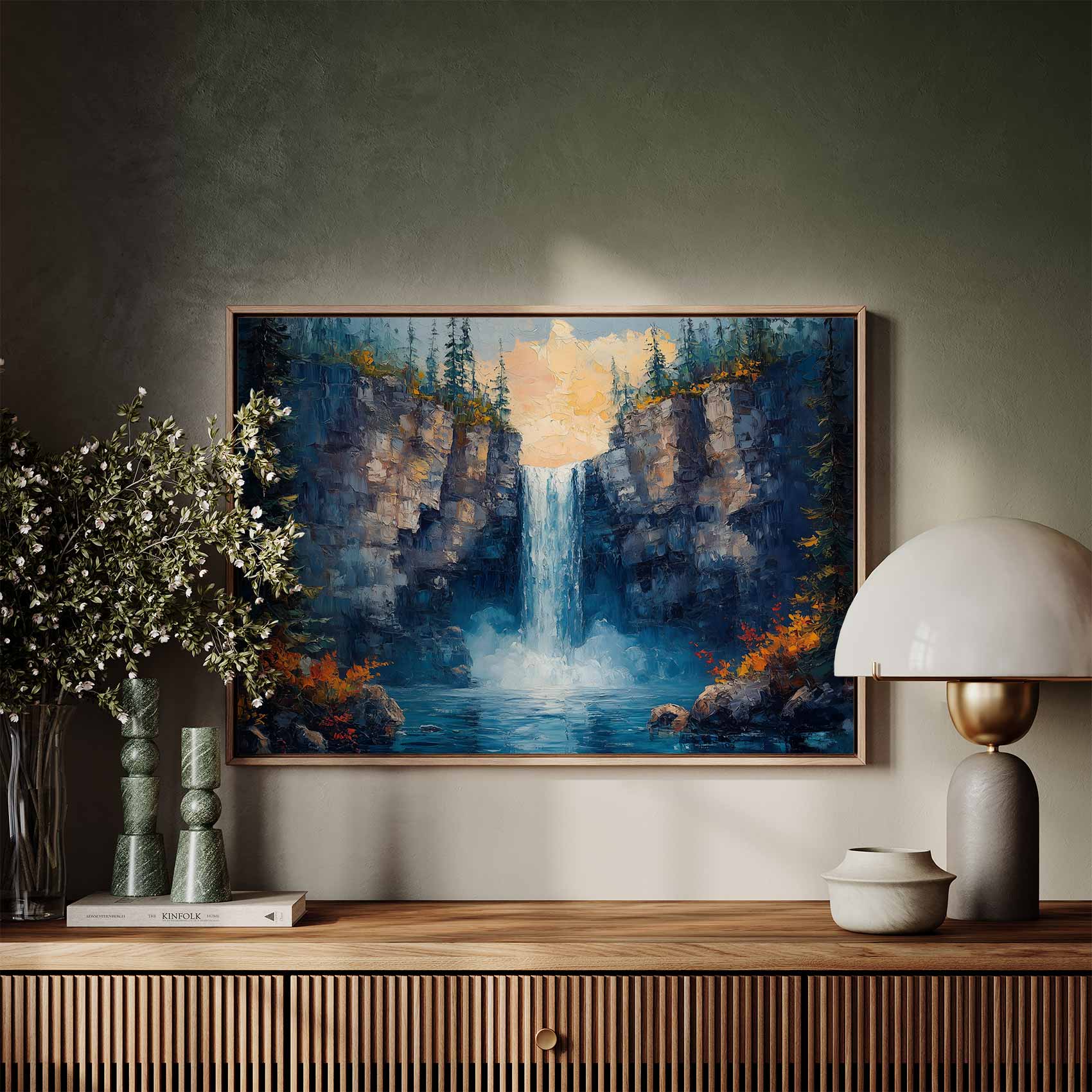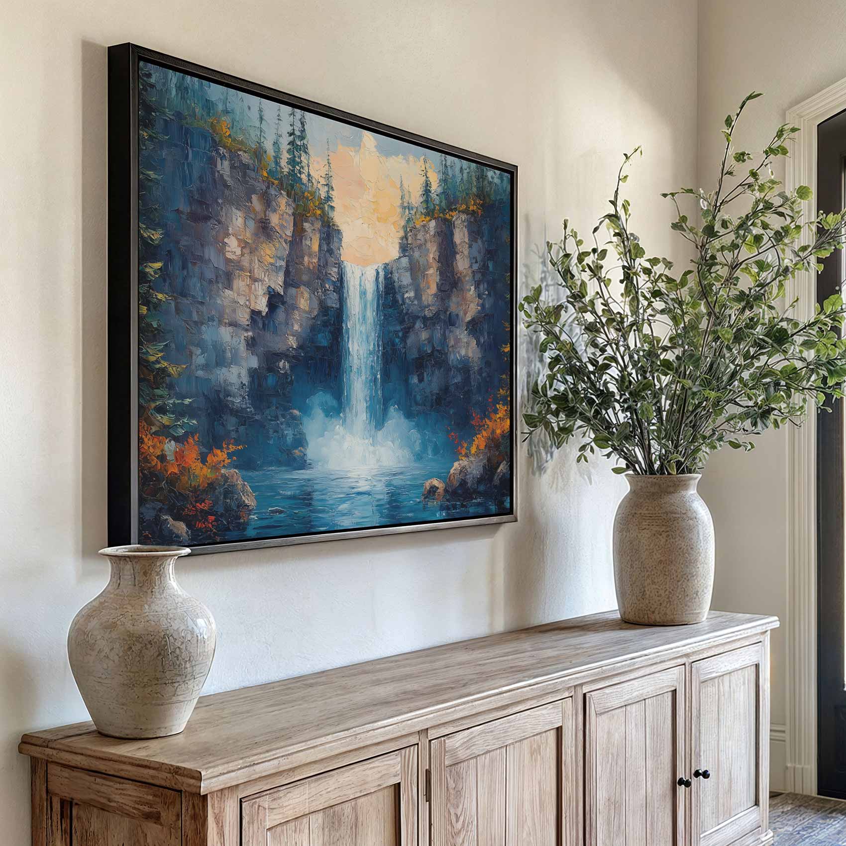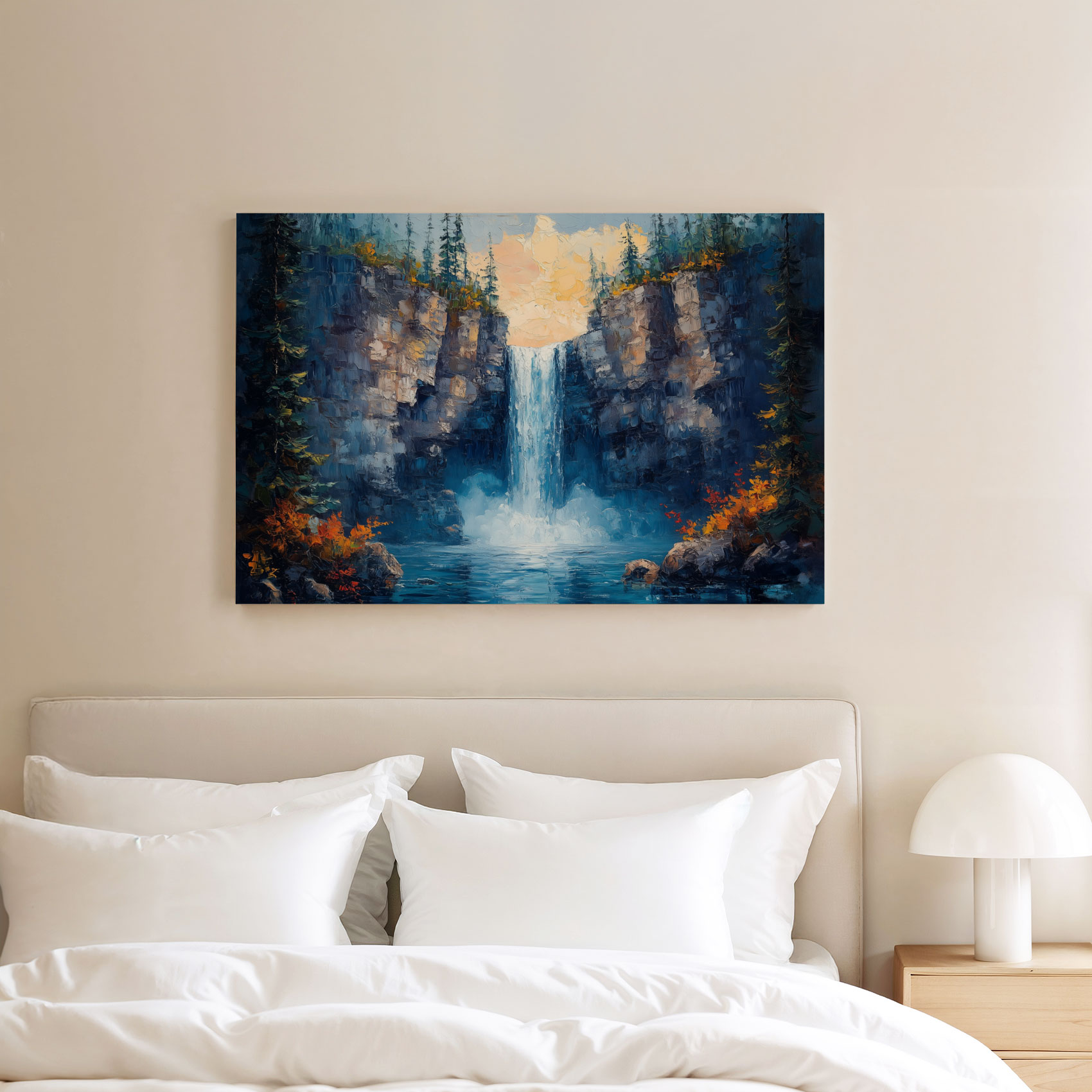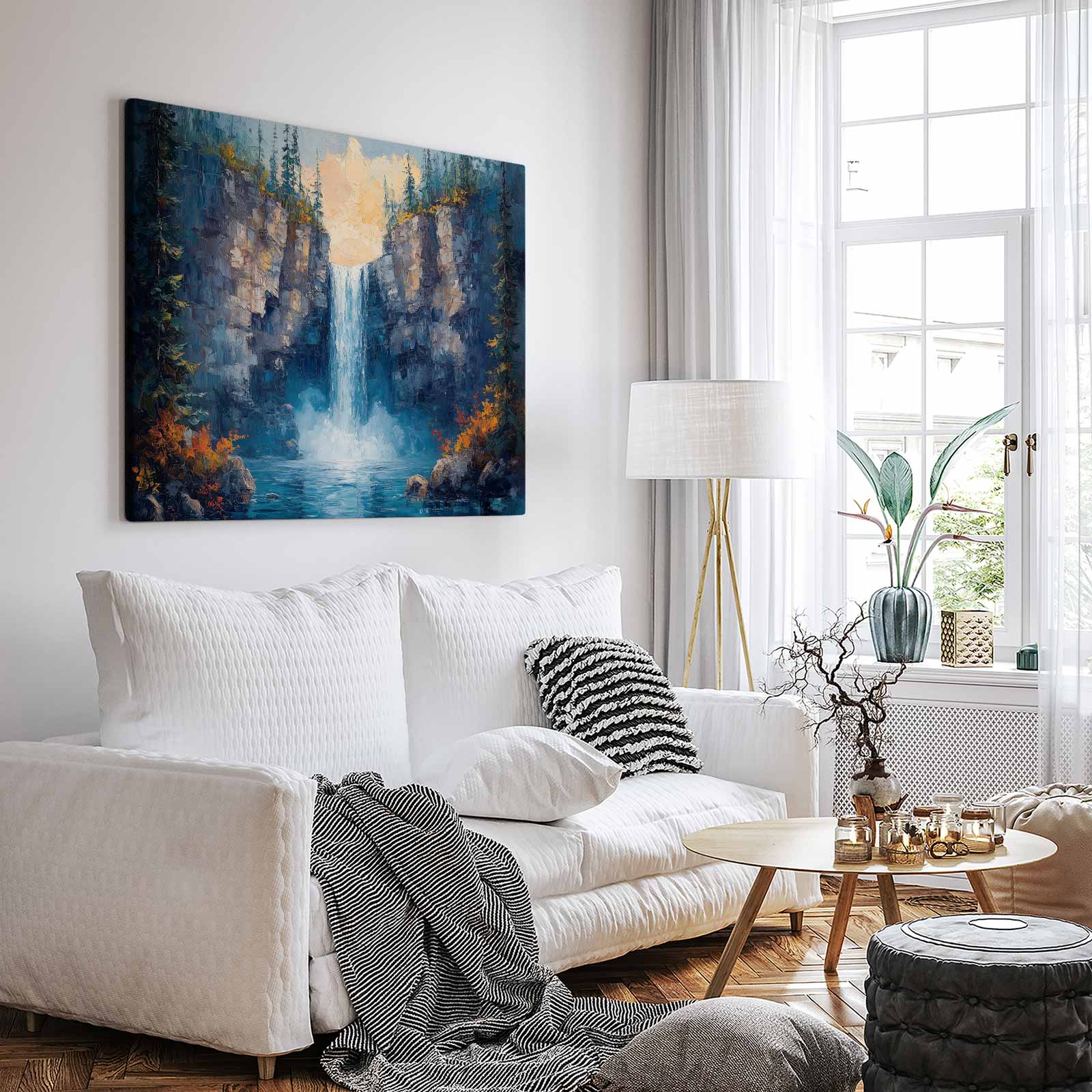 Terug naar collectie / Schilderijen / Bergen Schilderij / Vredige waterval schildering
