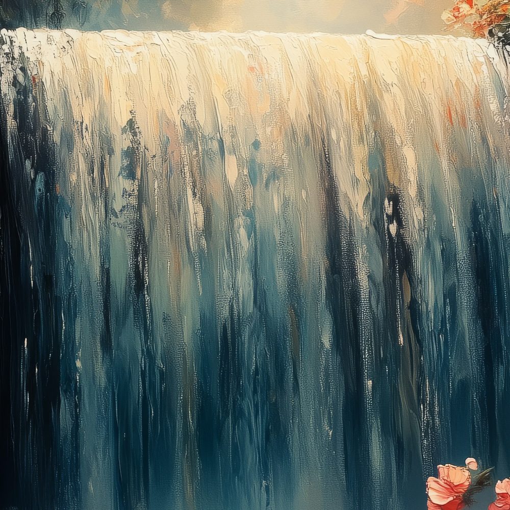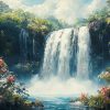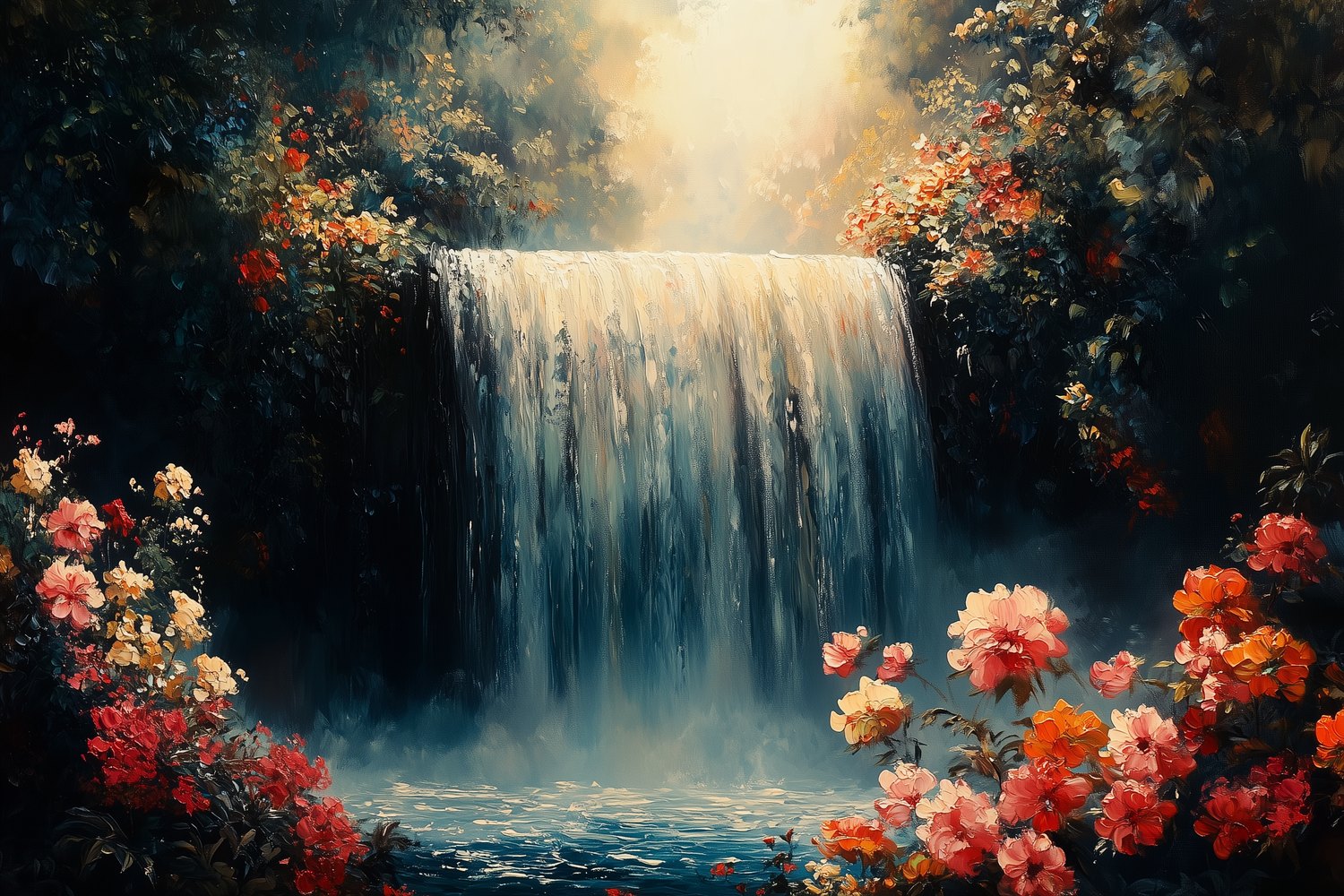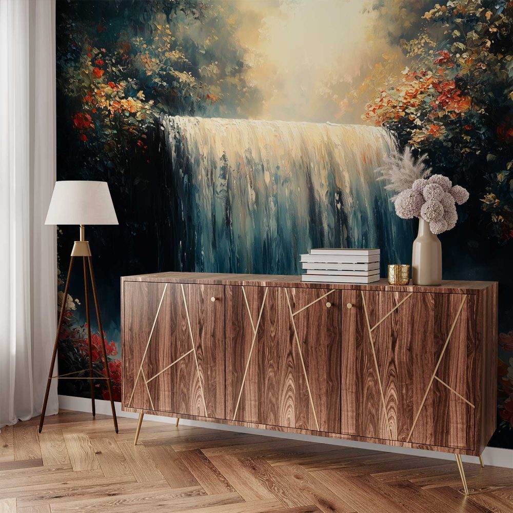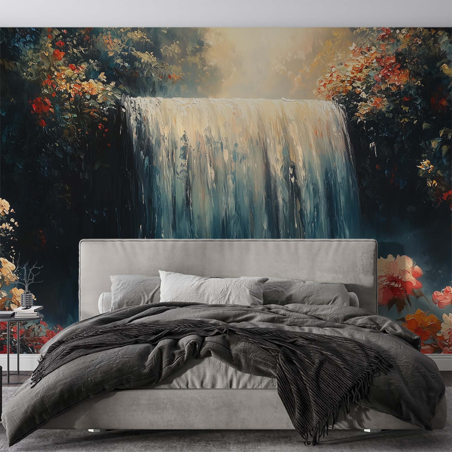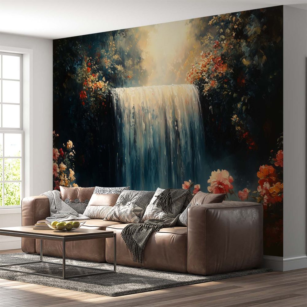 Terug naar collectie / Behang / Vredige watervalbloementuin behang