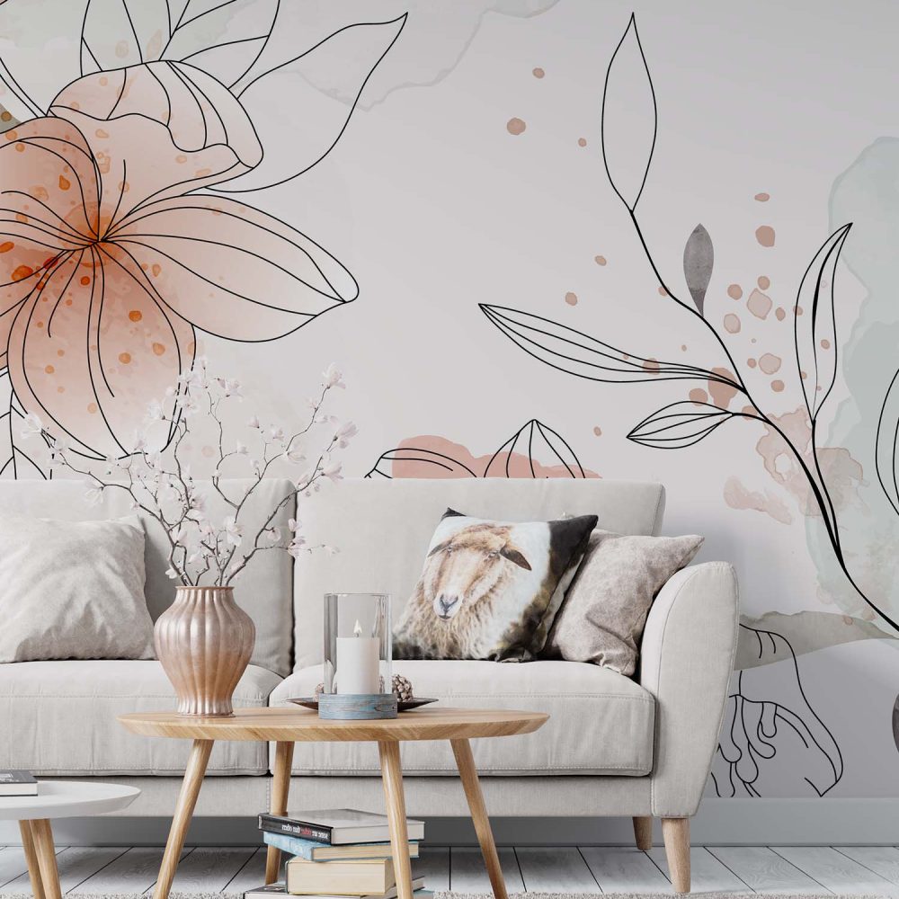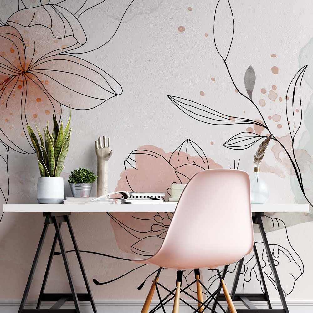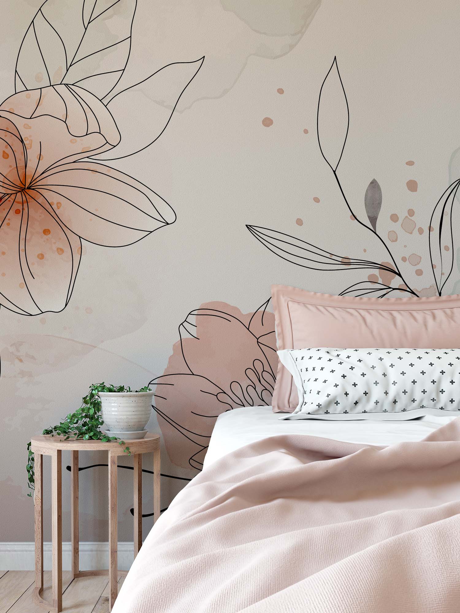 Terug naar collectie / Behang / Abstract behang / Vreugdevolle Bloemen Behang Roze-Beige