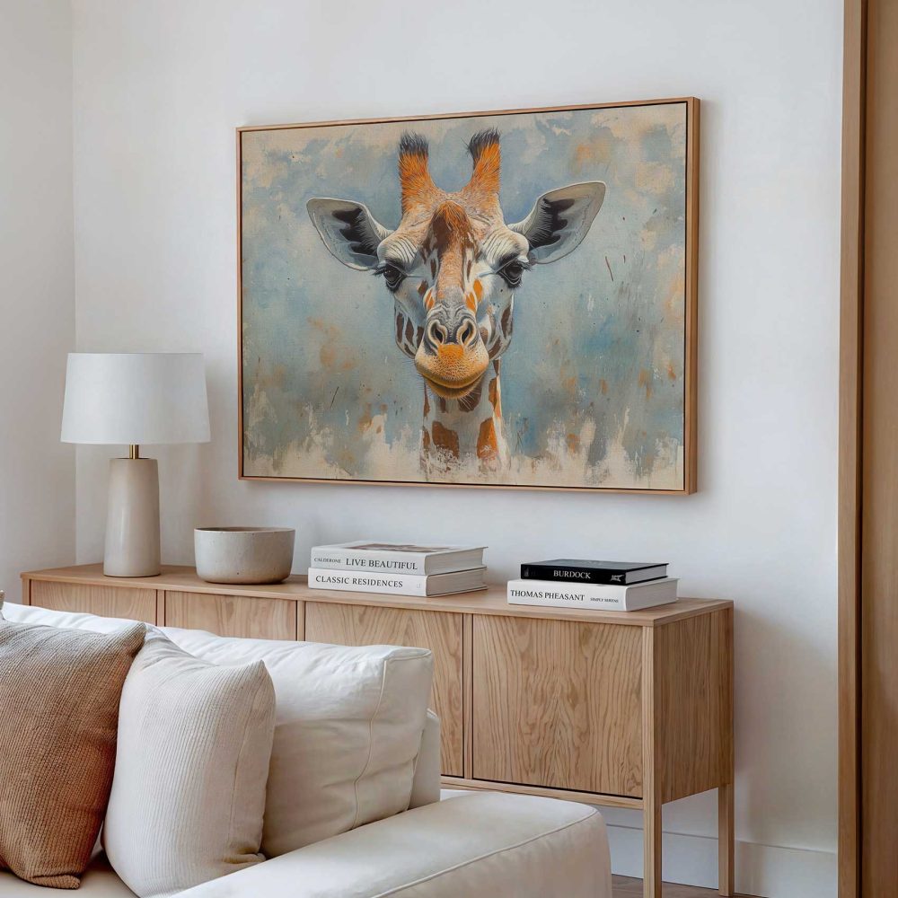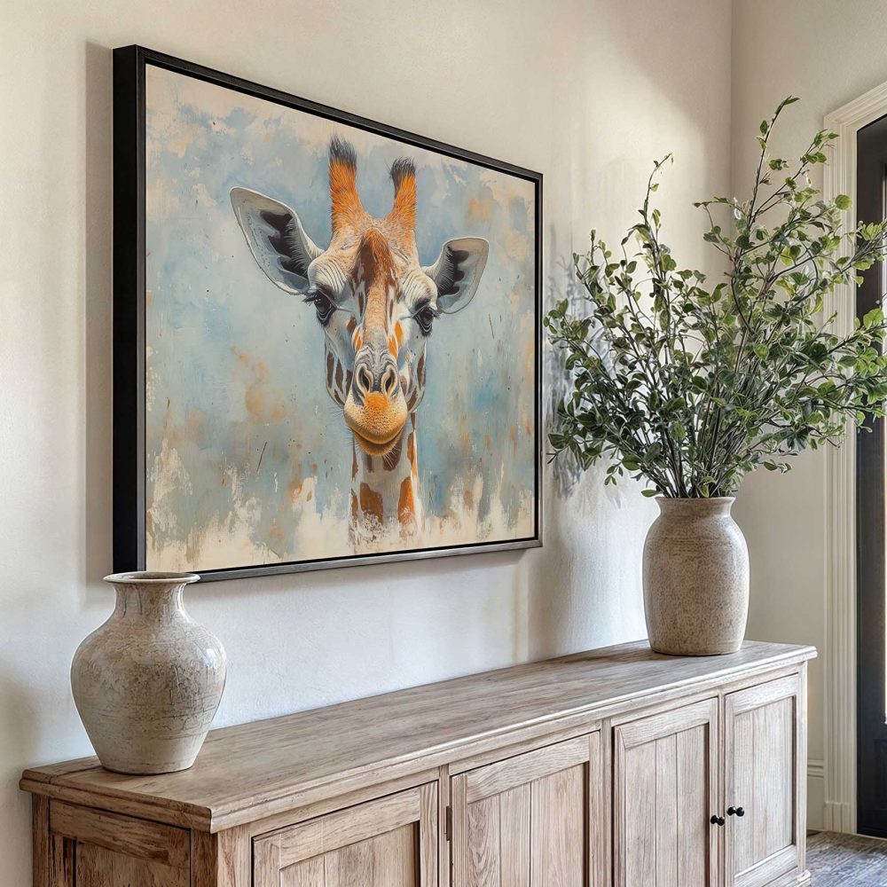 Terug naar collectie / Schilderijen / Dieren Schilderij / Vriendelijke giraf close-up schilderij