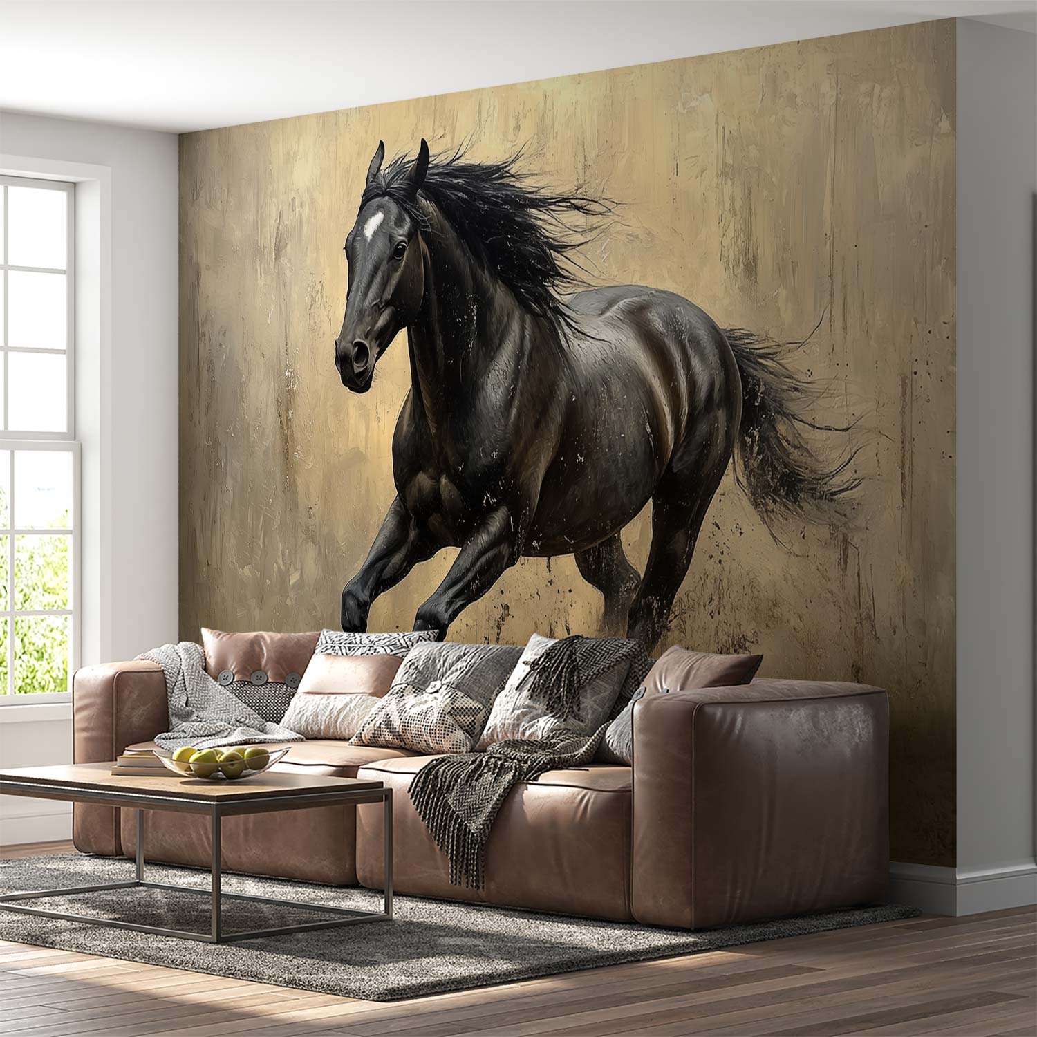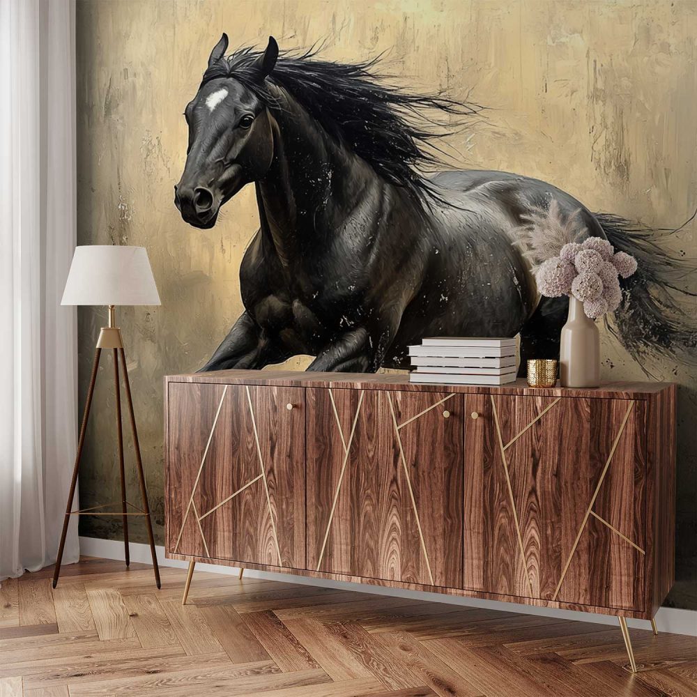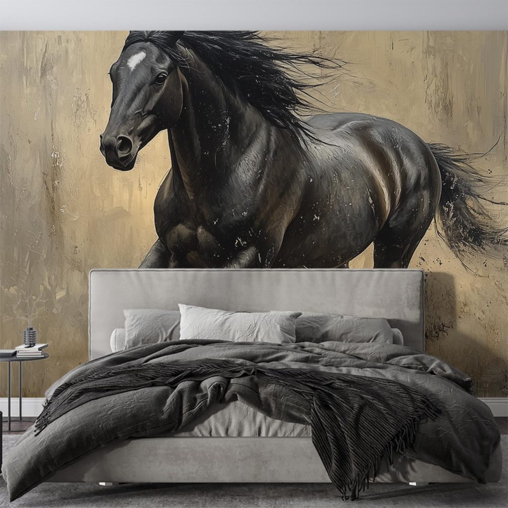 Vrij Galopperend Zwart Paard behang