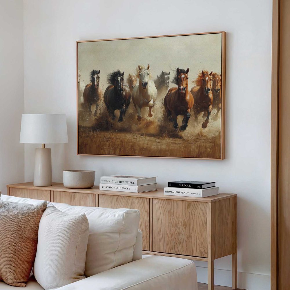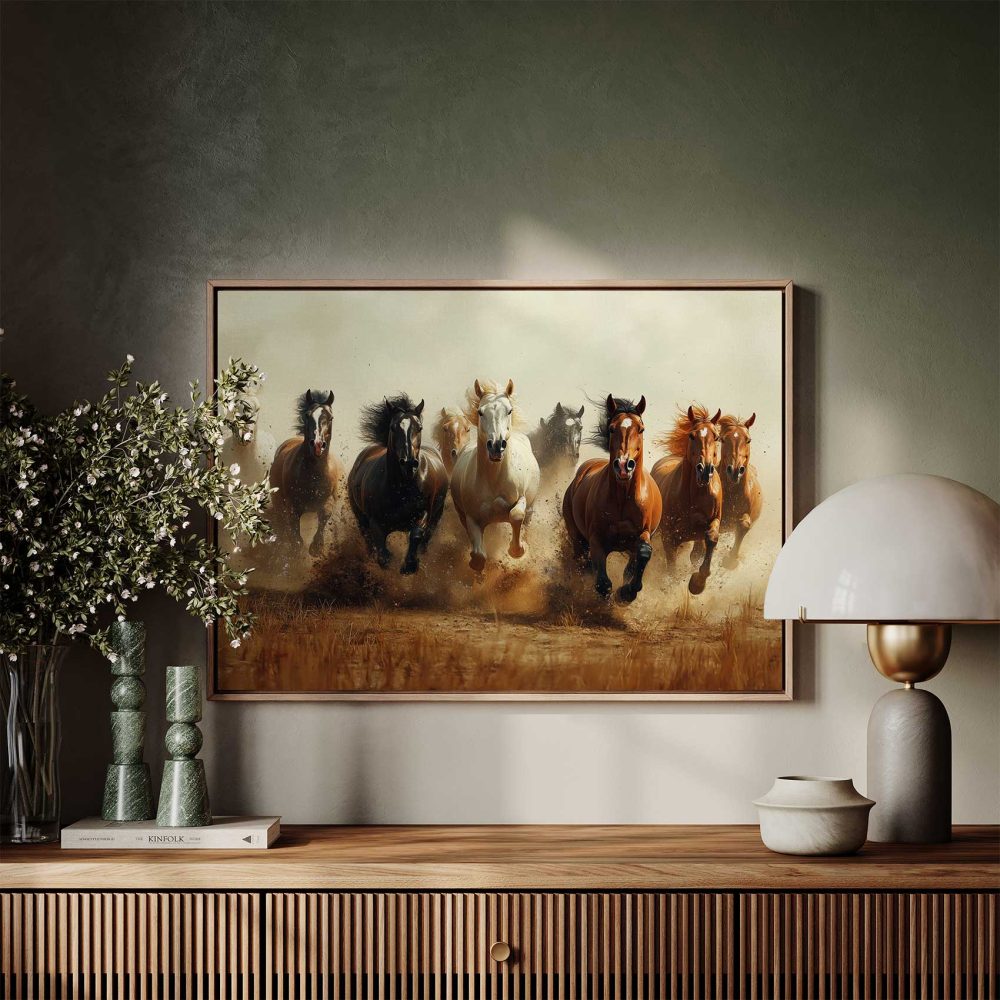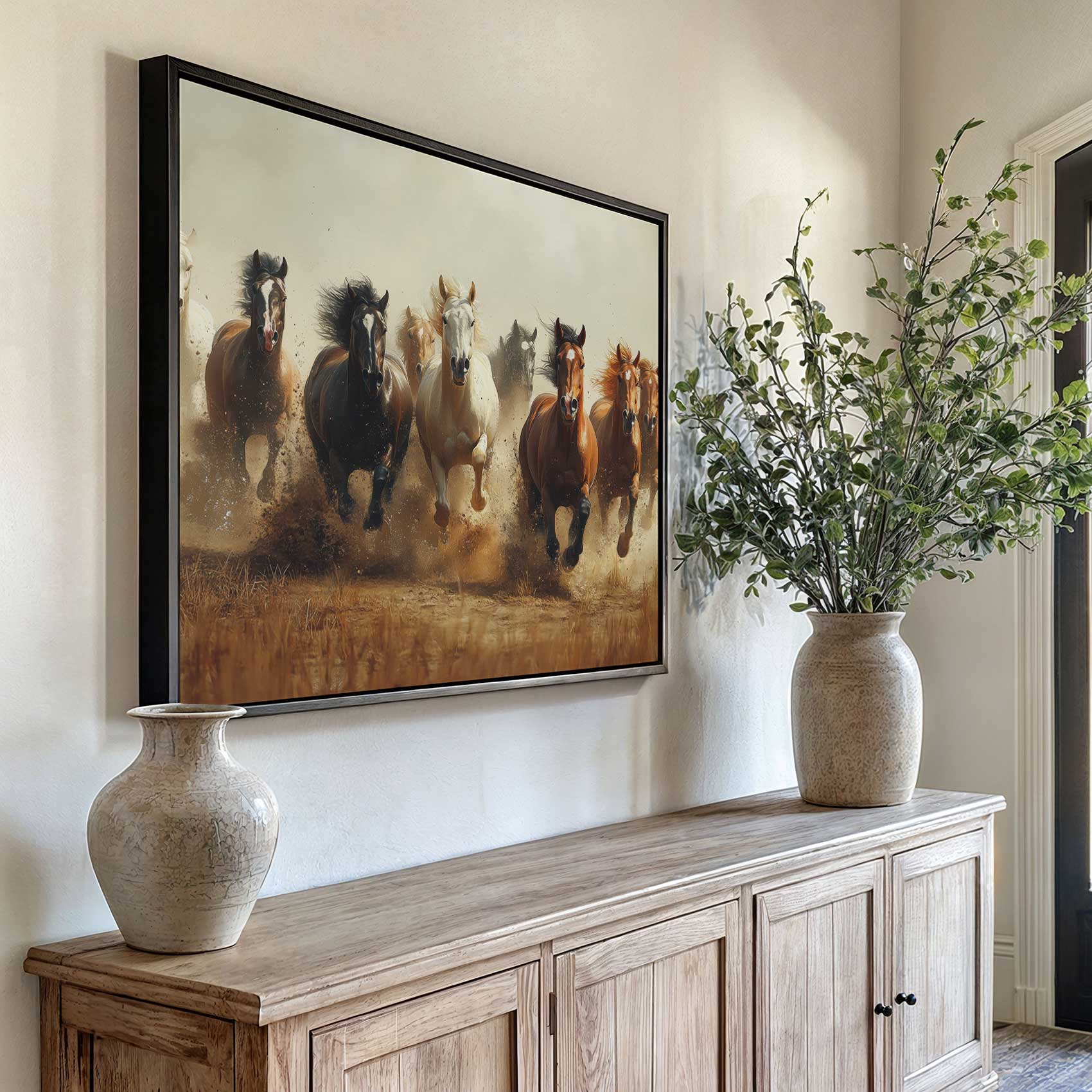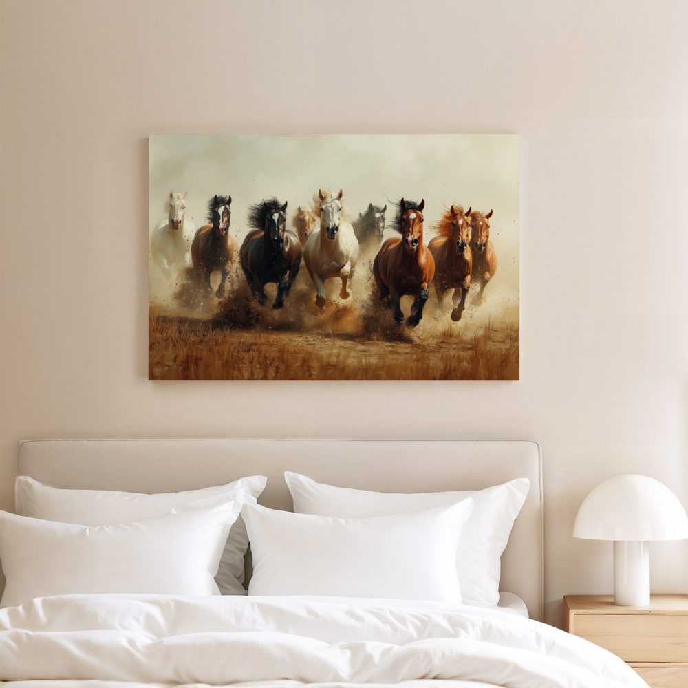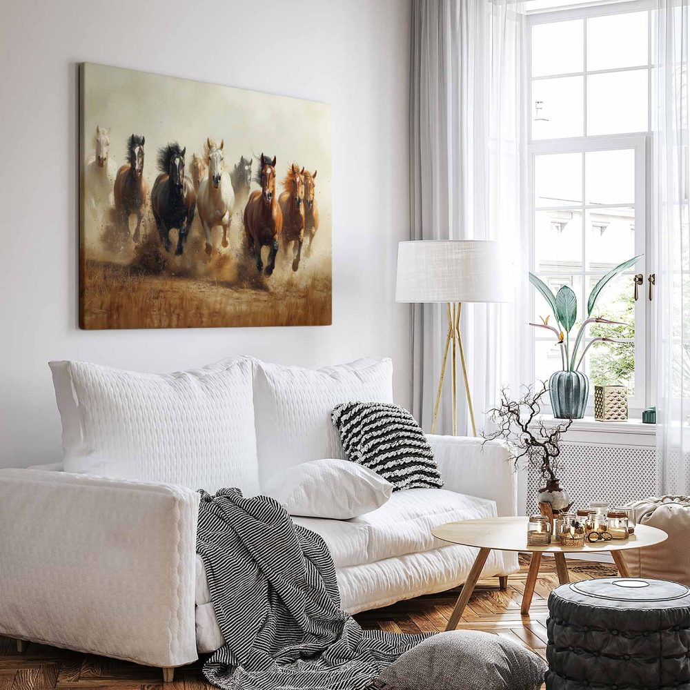 Terug naar collectie / Schilderijen / Dieren Schilderij / Vrij galopperende paardenkudde