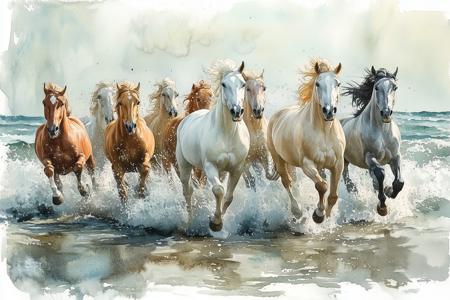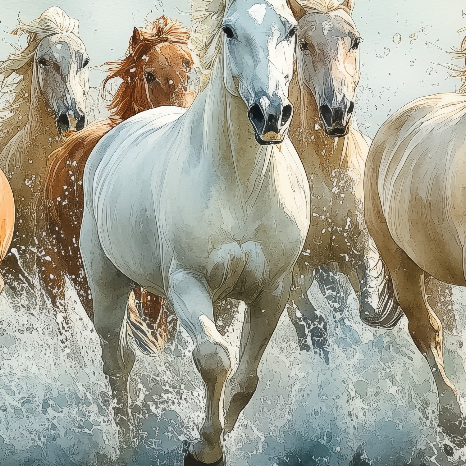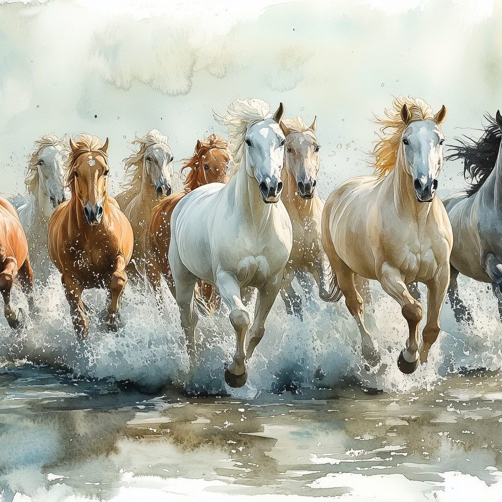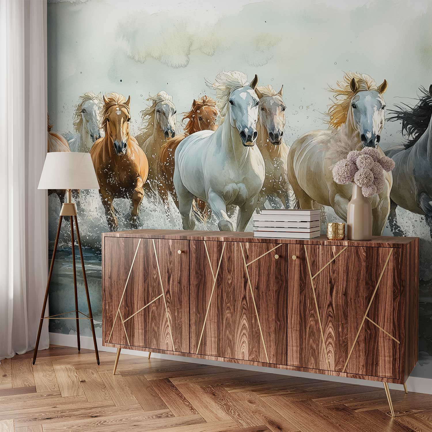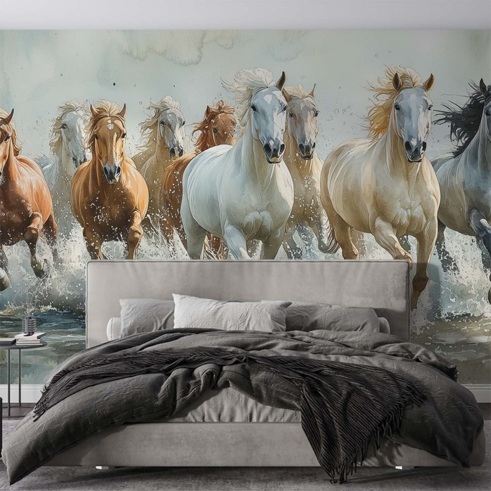 Terug naar collectie / Behang / Vrij galopperende waterpaarden behang
