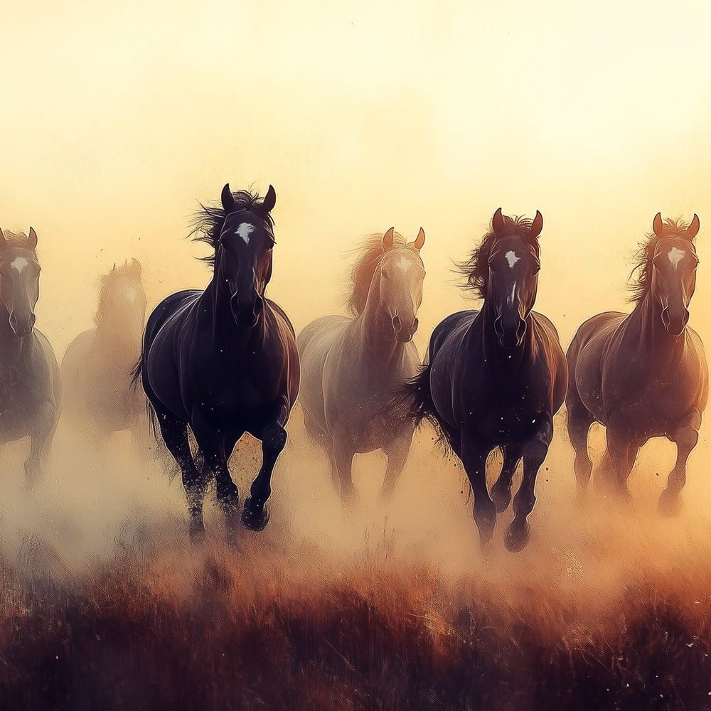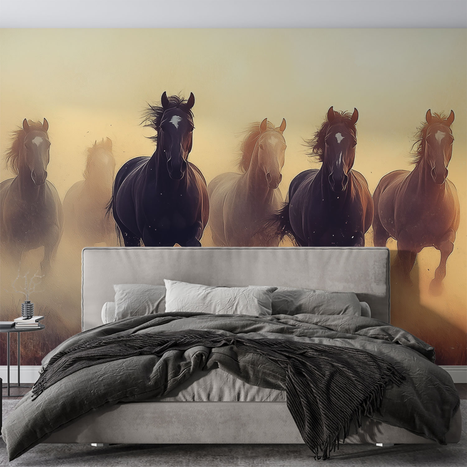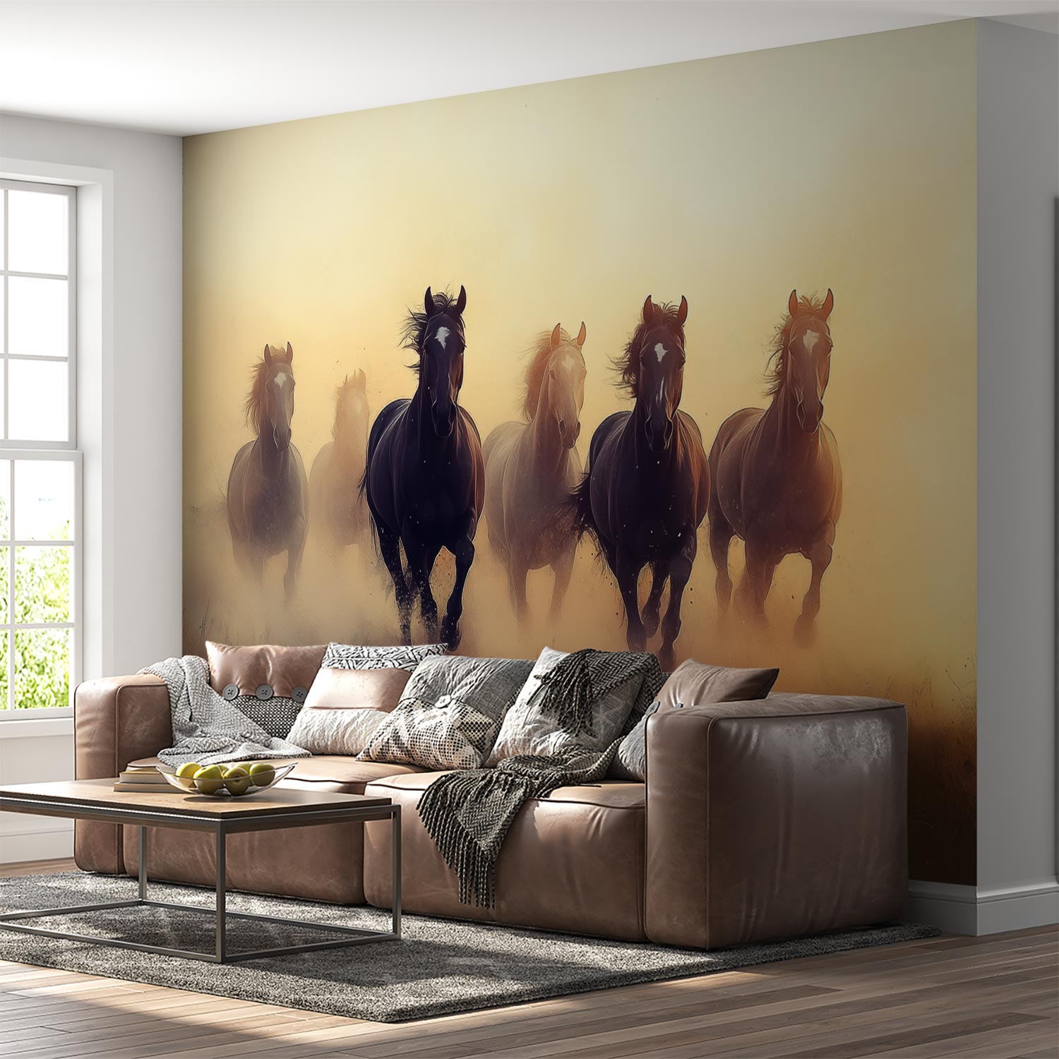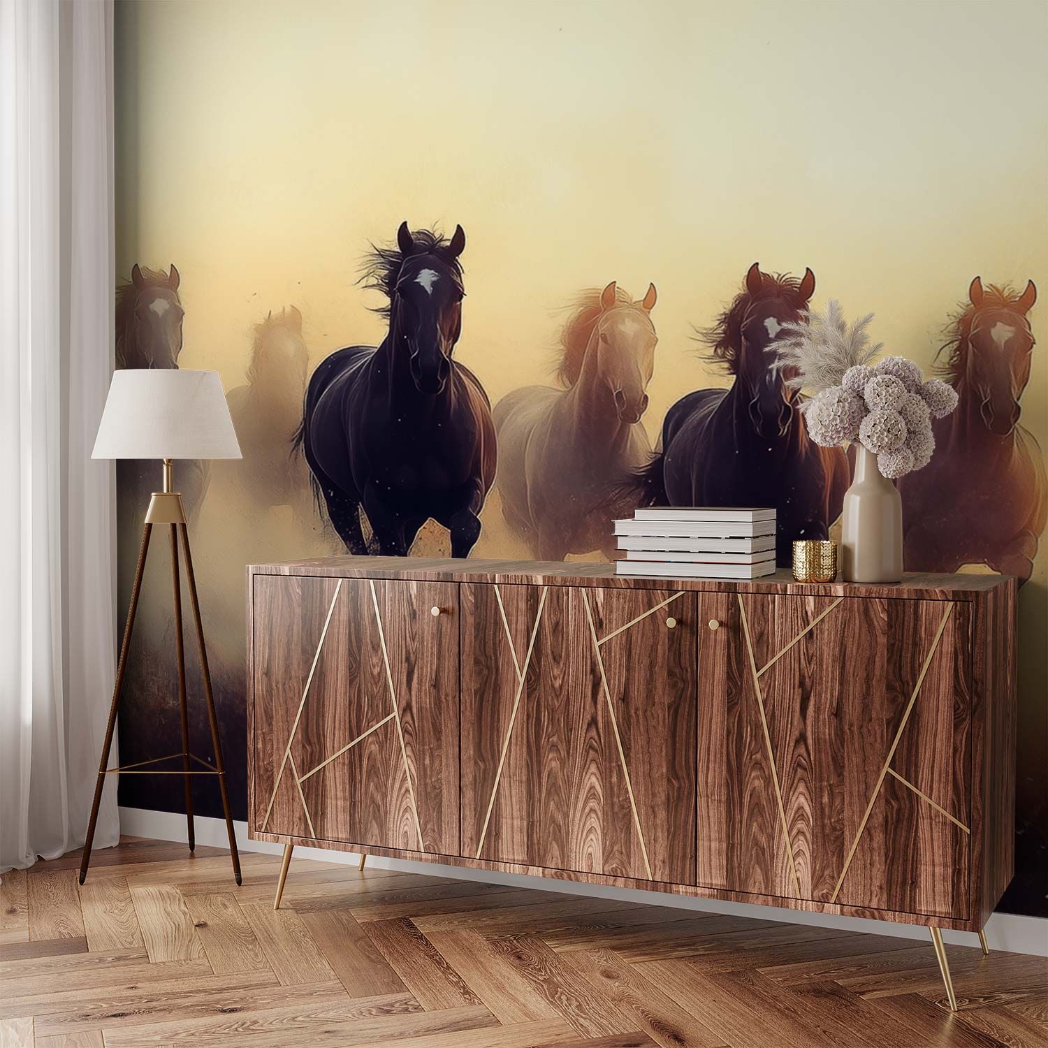 Terug naar collectie / Behang / Vrij rennende bruine paarden behang
