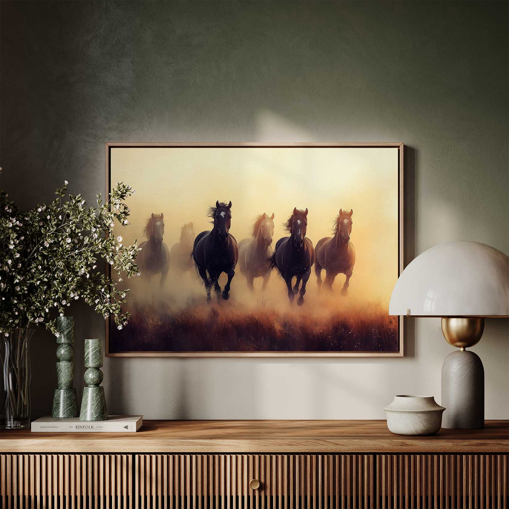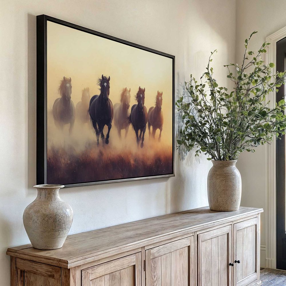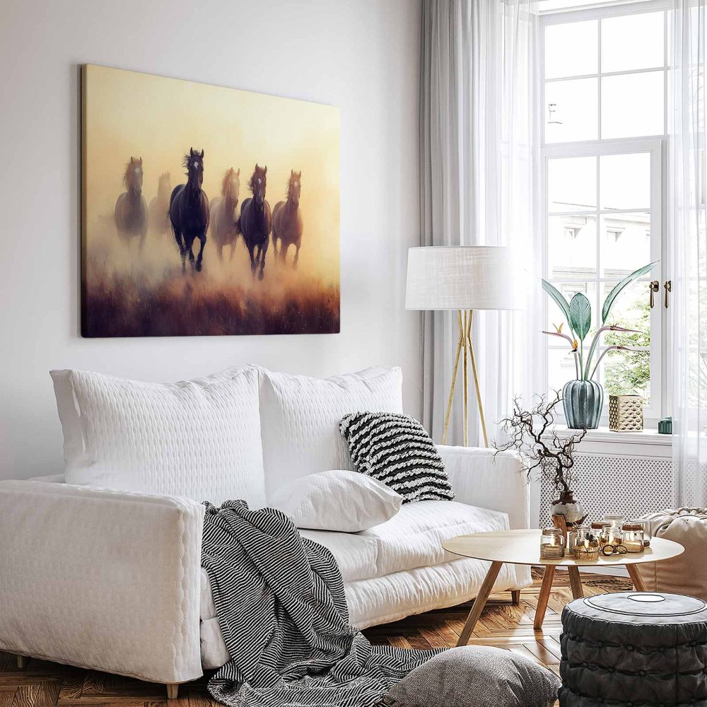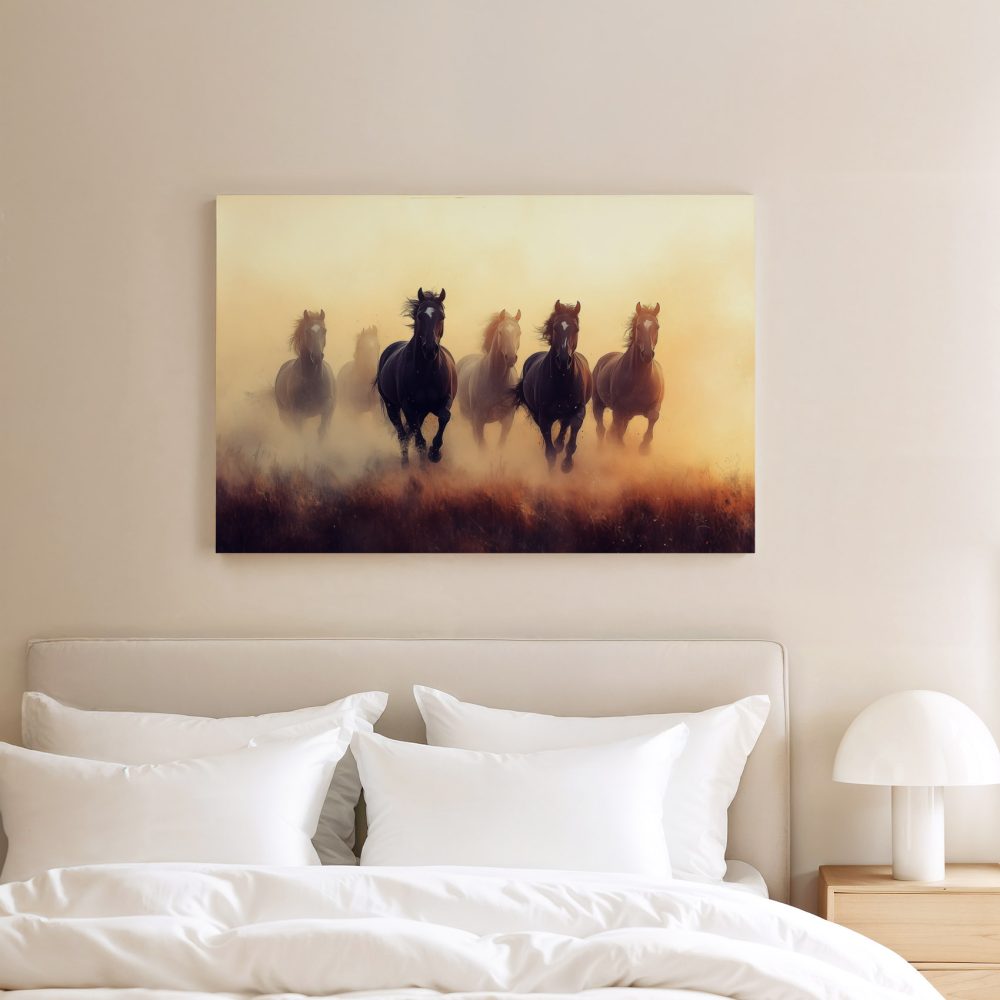 Terug naar collectie / Schilderijen / Dieren Schilderij / Vrij rennende bruine paarden