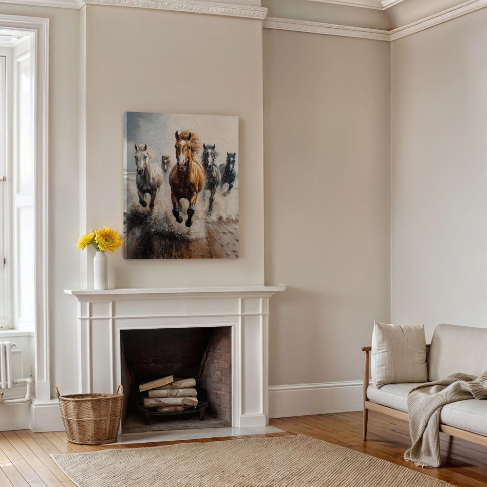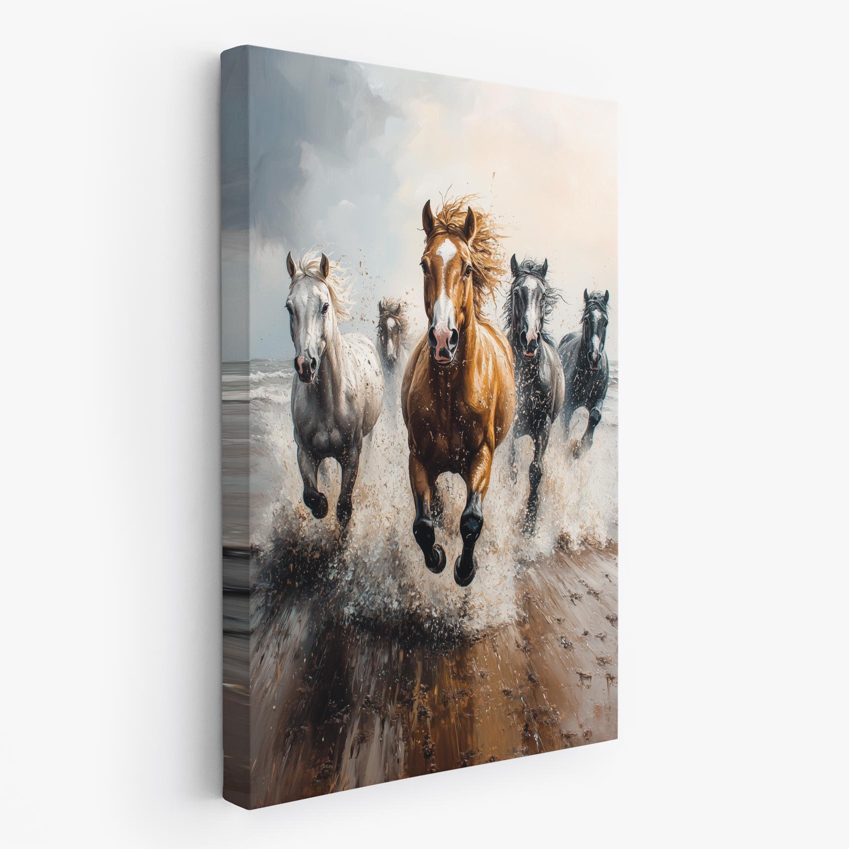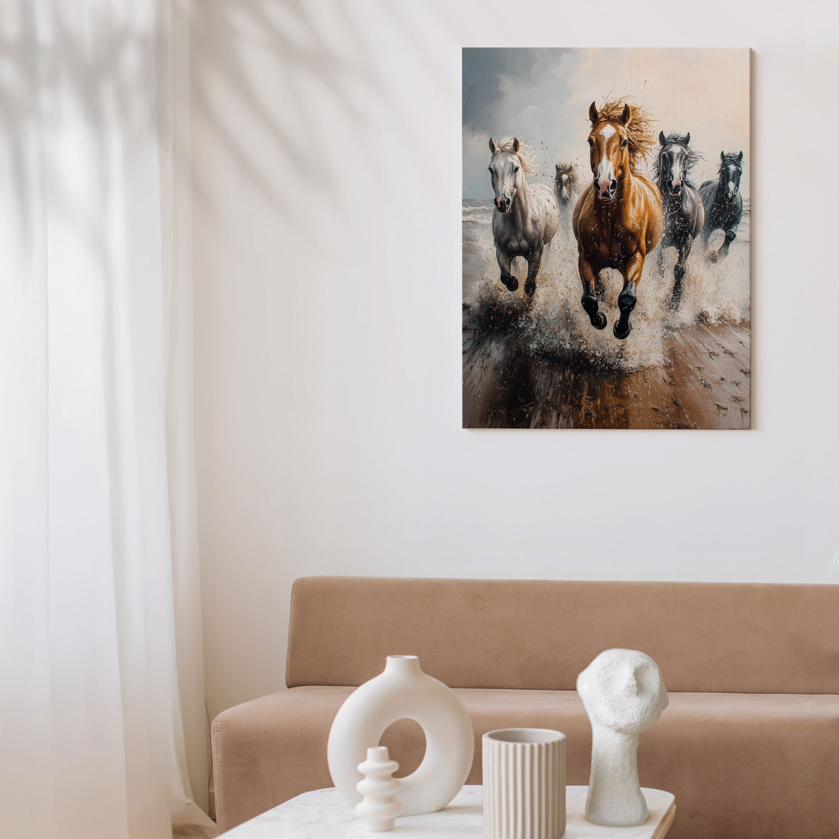 Terug naar collectie / Schilderijen / Dieren Schilderij / Vrij rennende strandpaarden