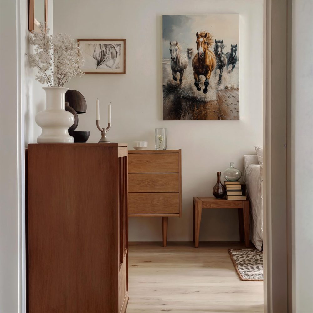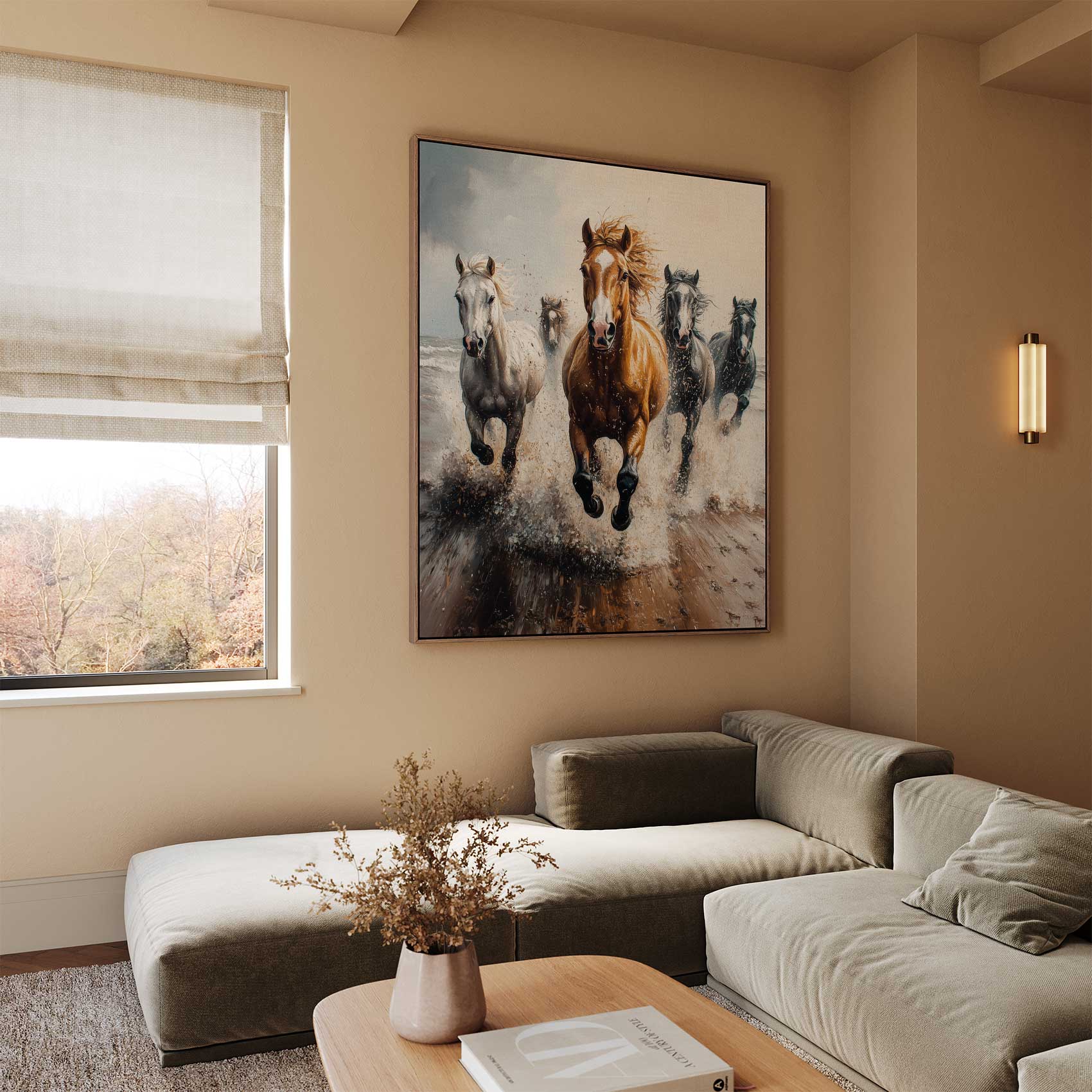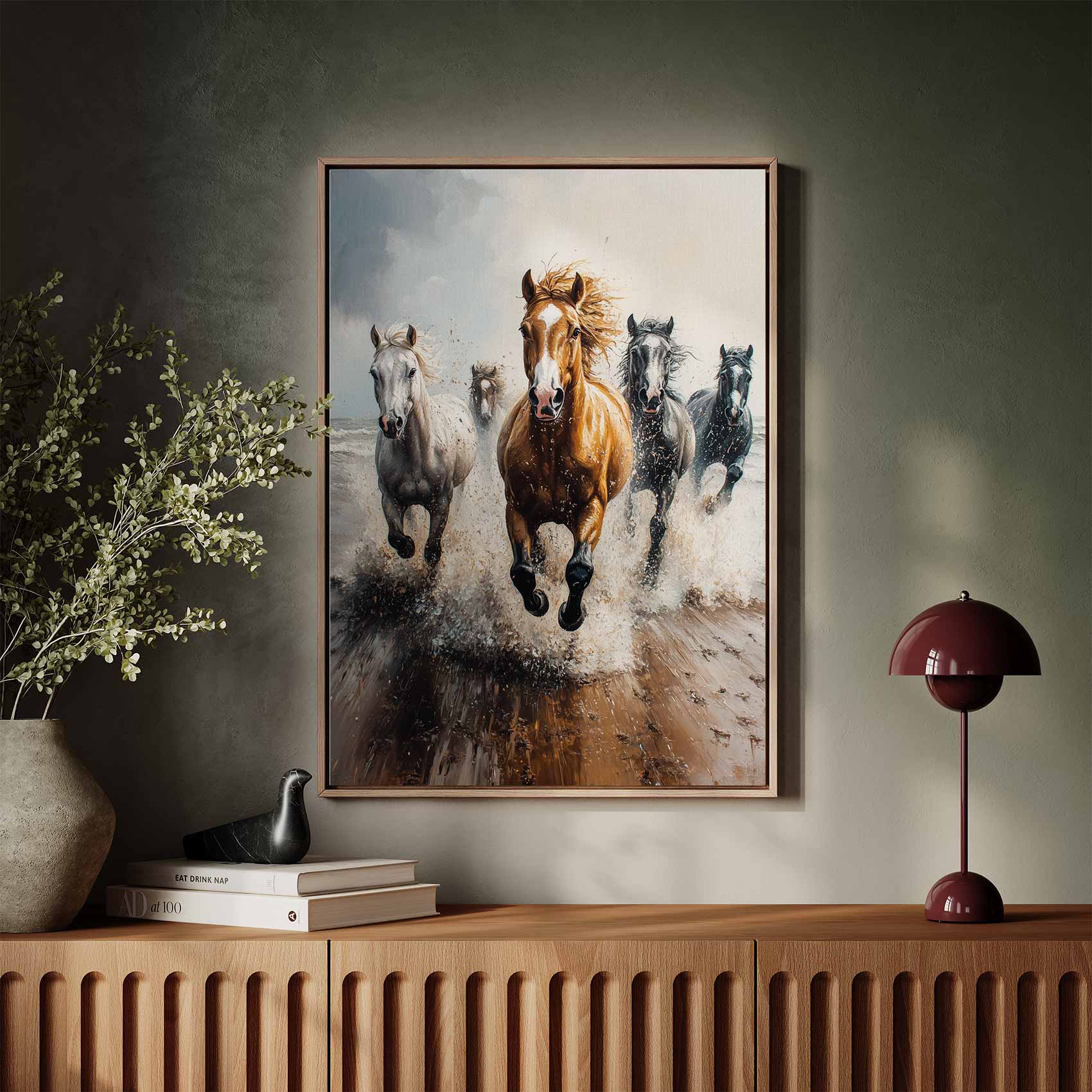 Terug naar collectie / Schilderijen / Dieren Schilderij / Vrij rennende strandpaarden