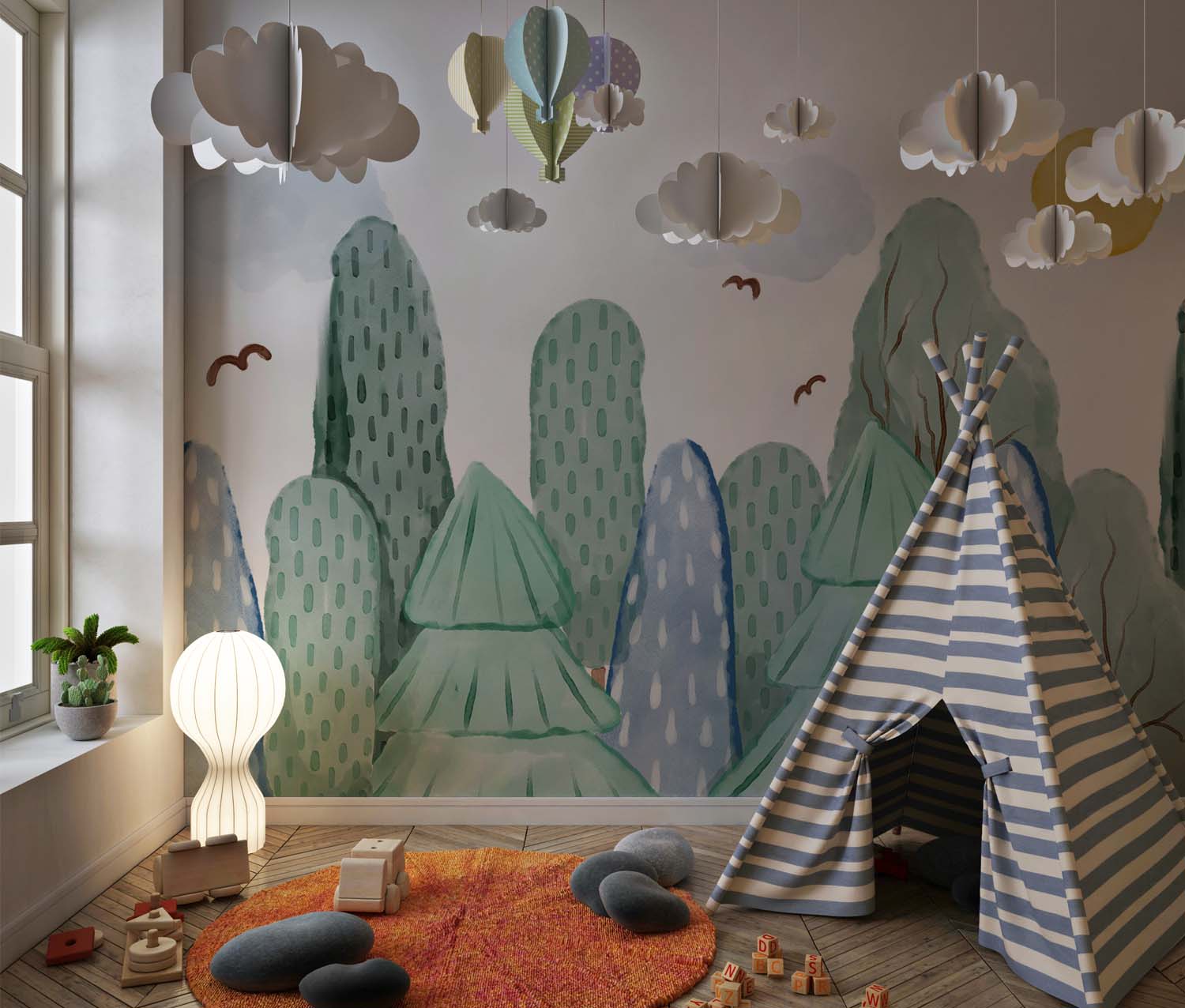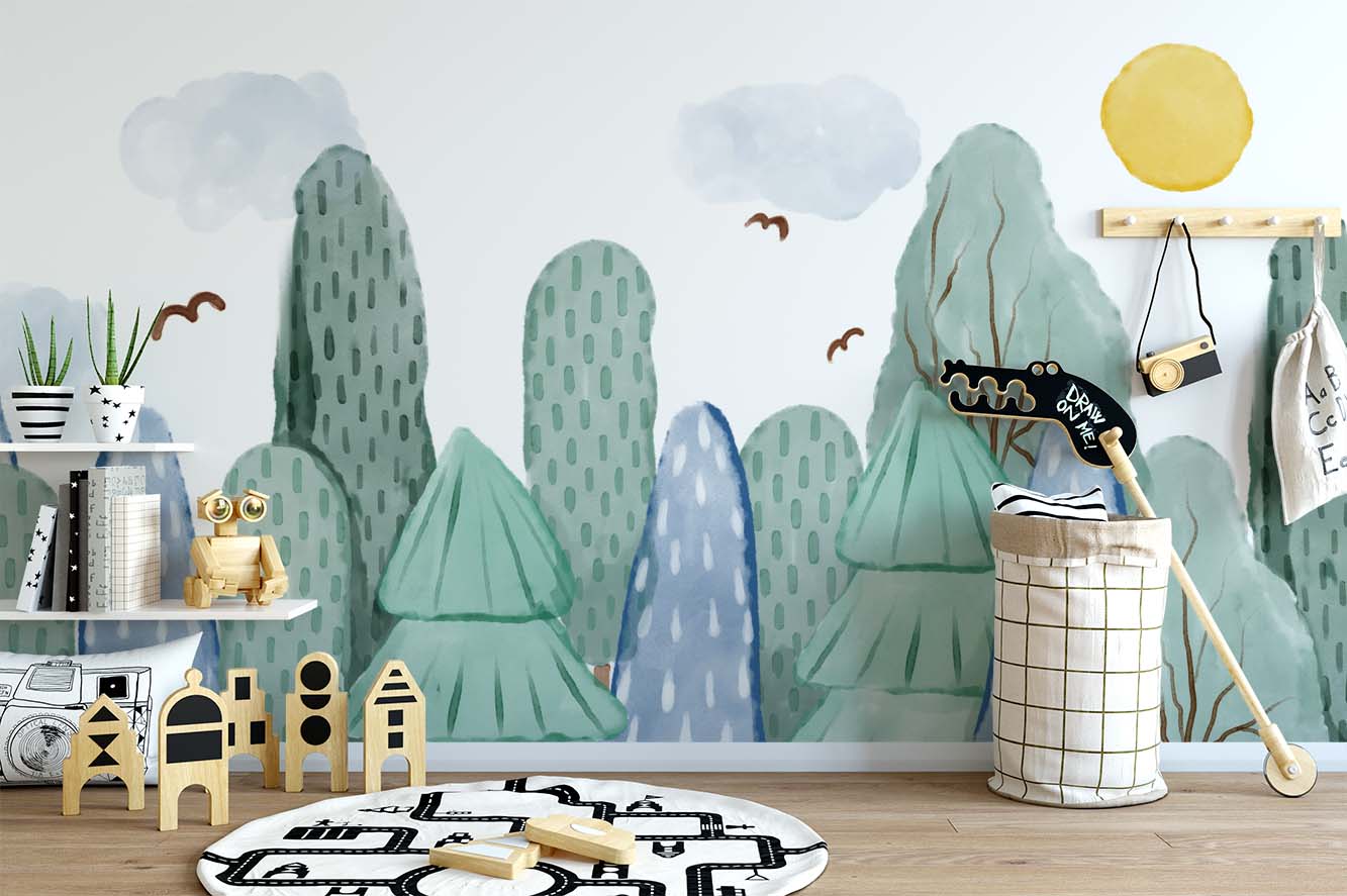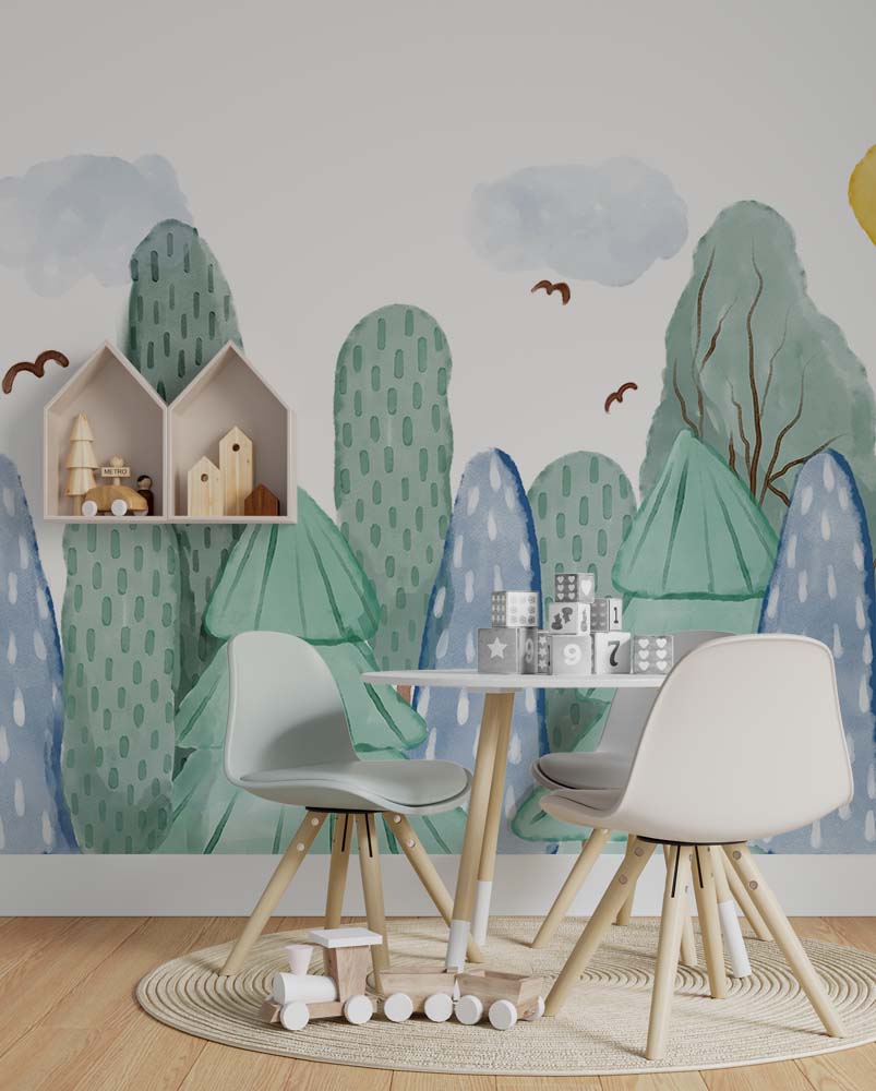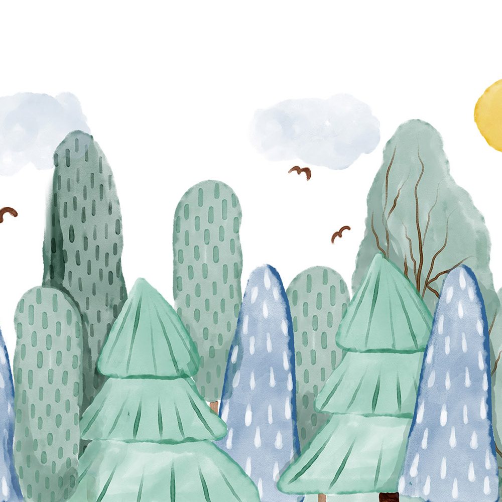 Terug naar collectie / Behang / Kinderkamer behang / Babykamer behang / Vrolijk Boslandschap Kinderbehang