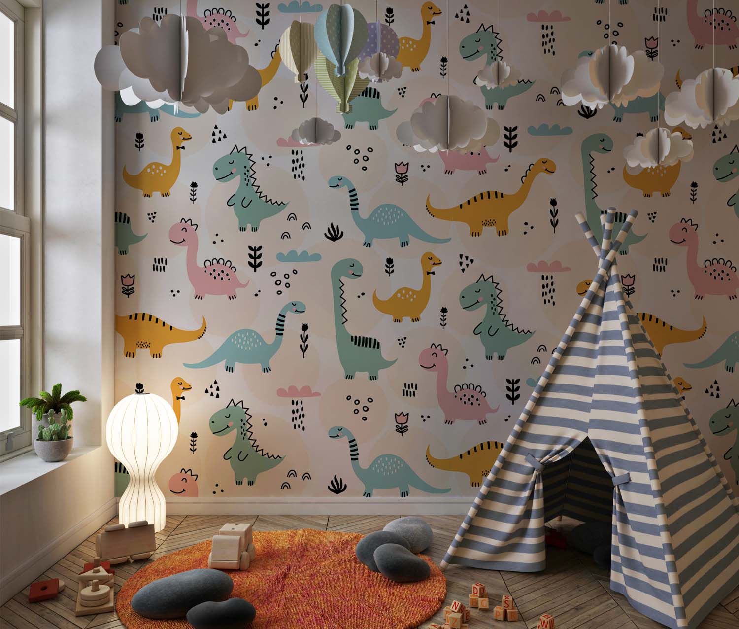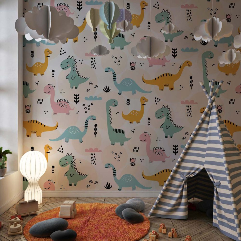 Vrolijk Dino Kinderbehang