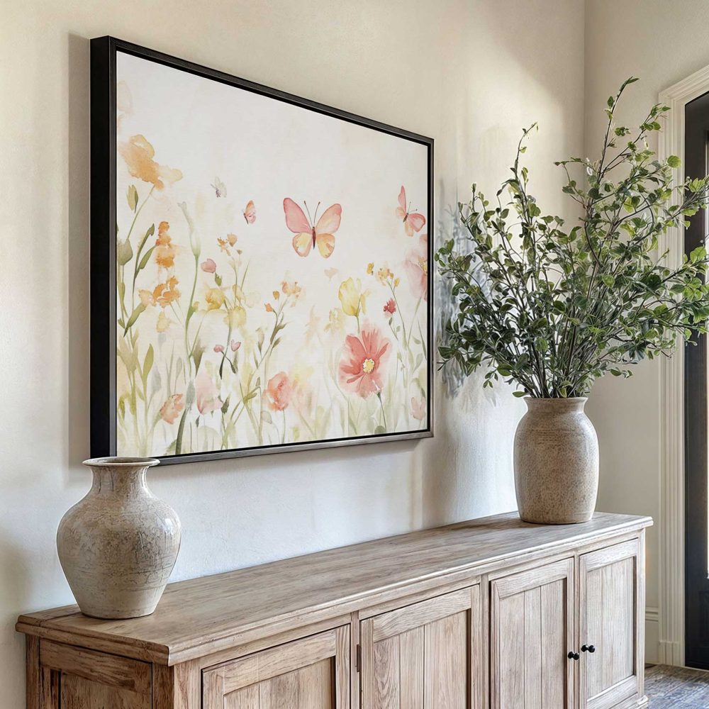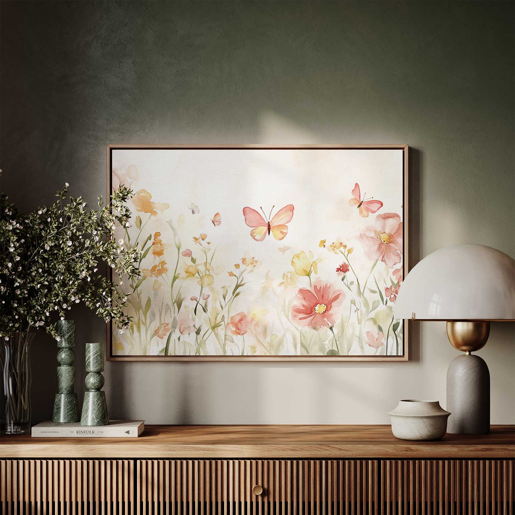 Terug naar collectie / Schilderijen / Bloemen Schilderij / Vrolijk watercolor bloemenveld