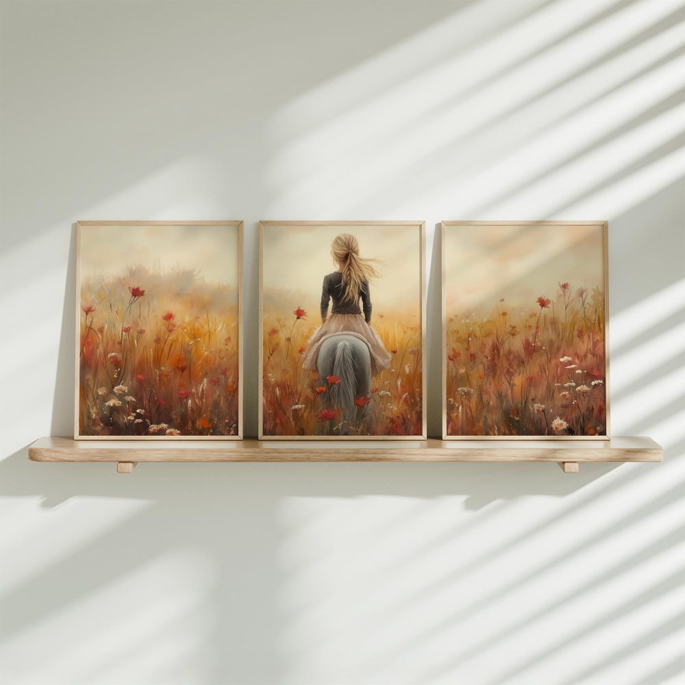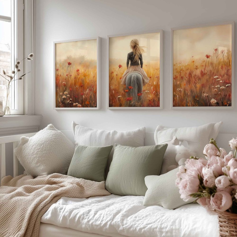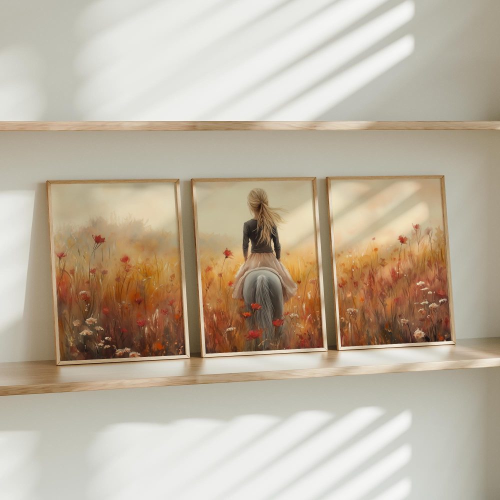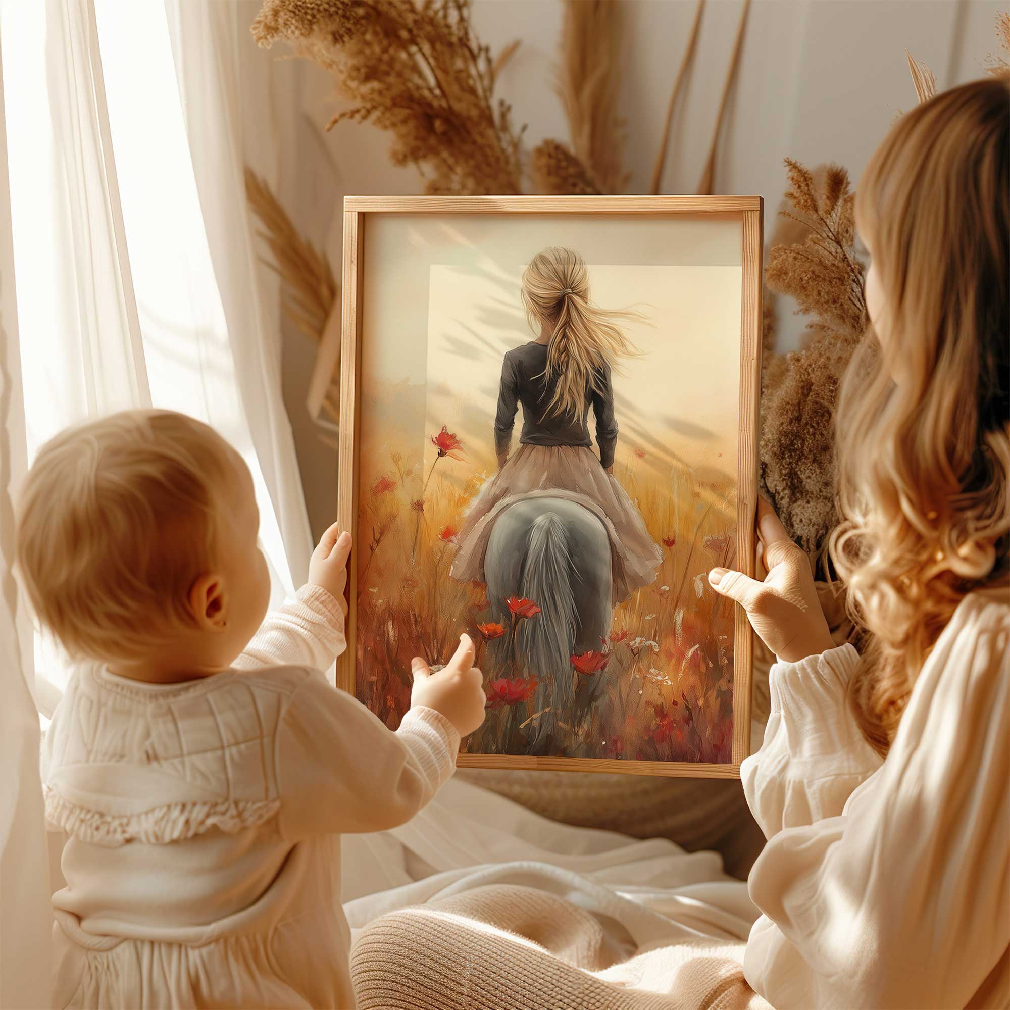 Terug naar collectie / Uncategorized / Vrolijke dame te paard in bloemenveld