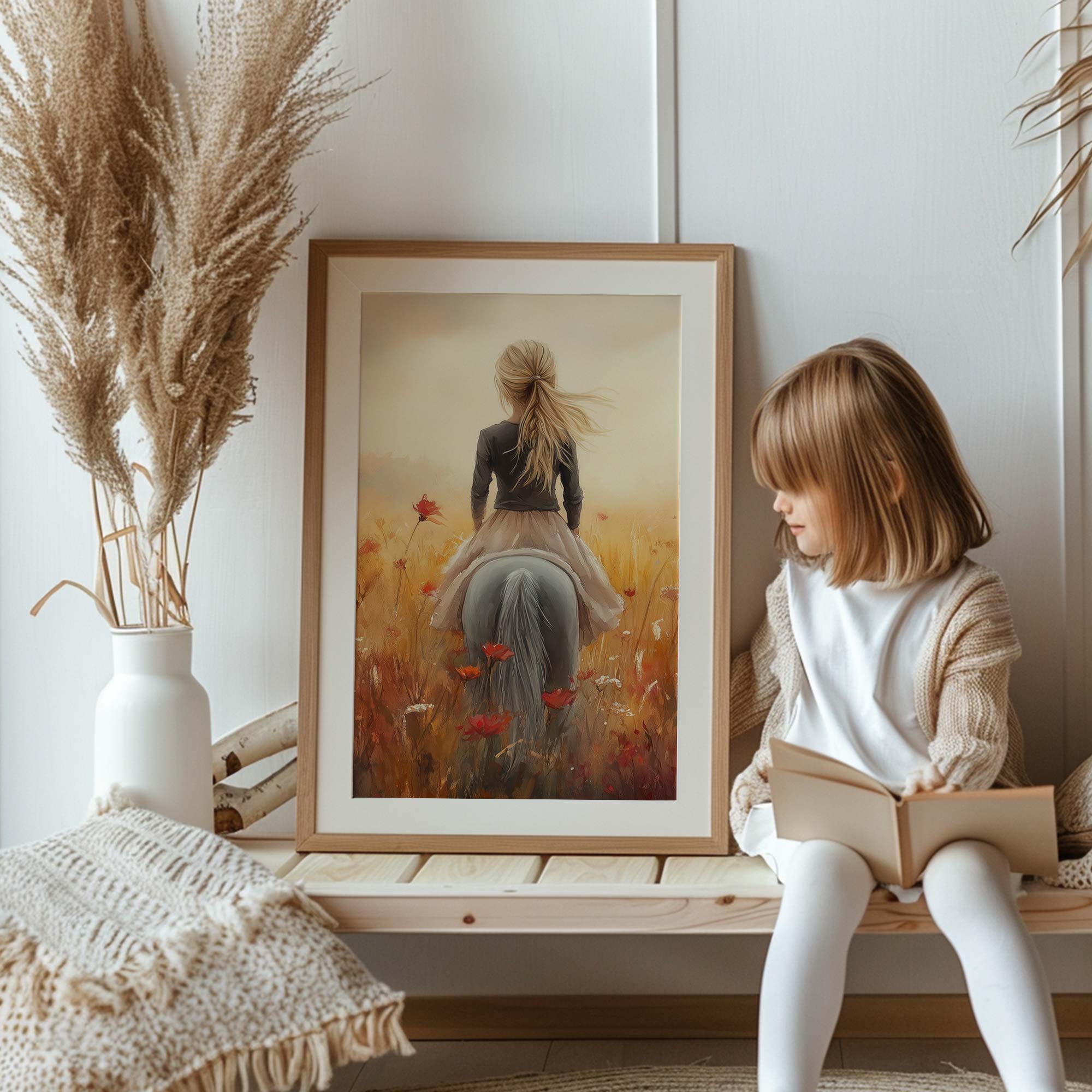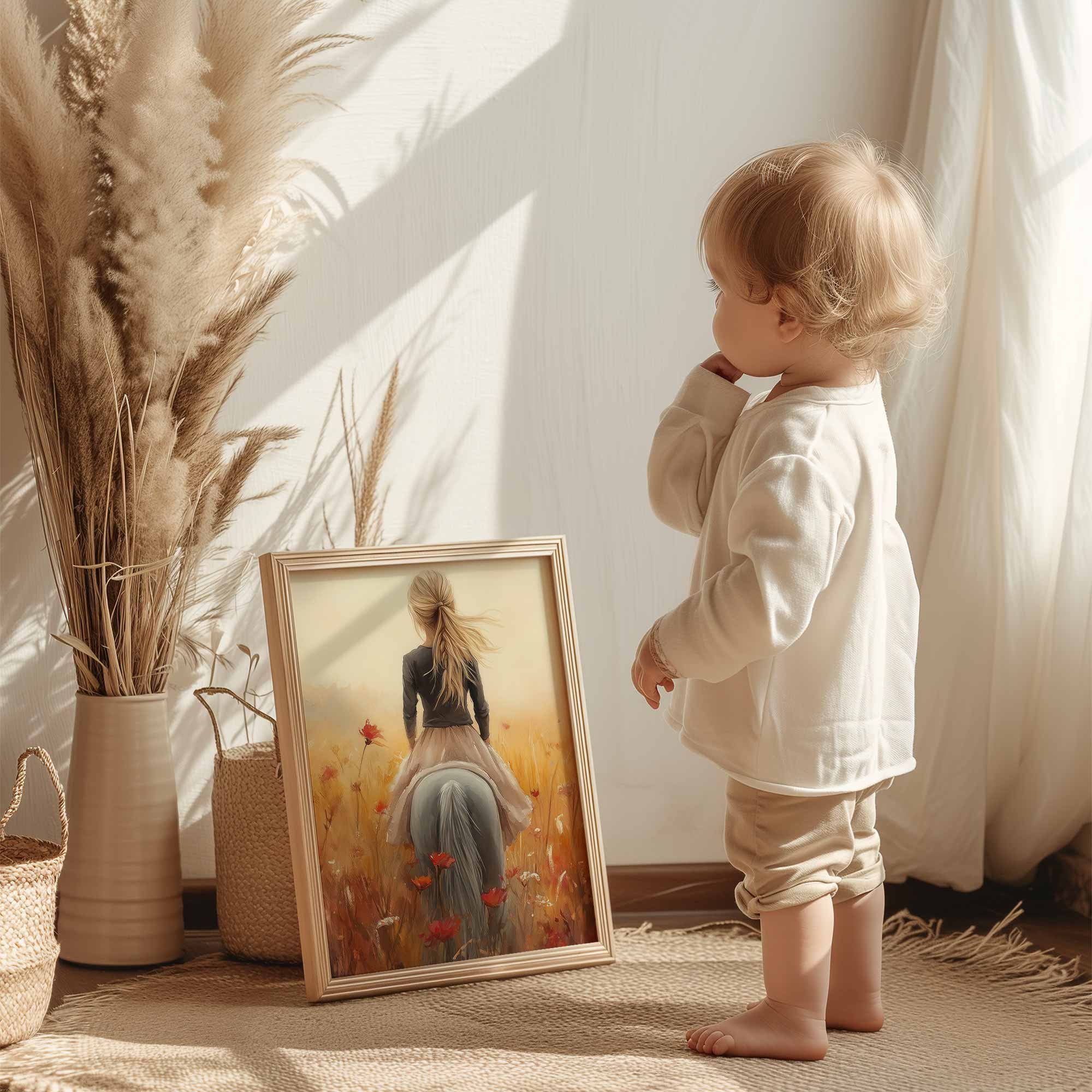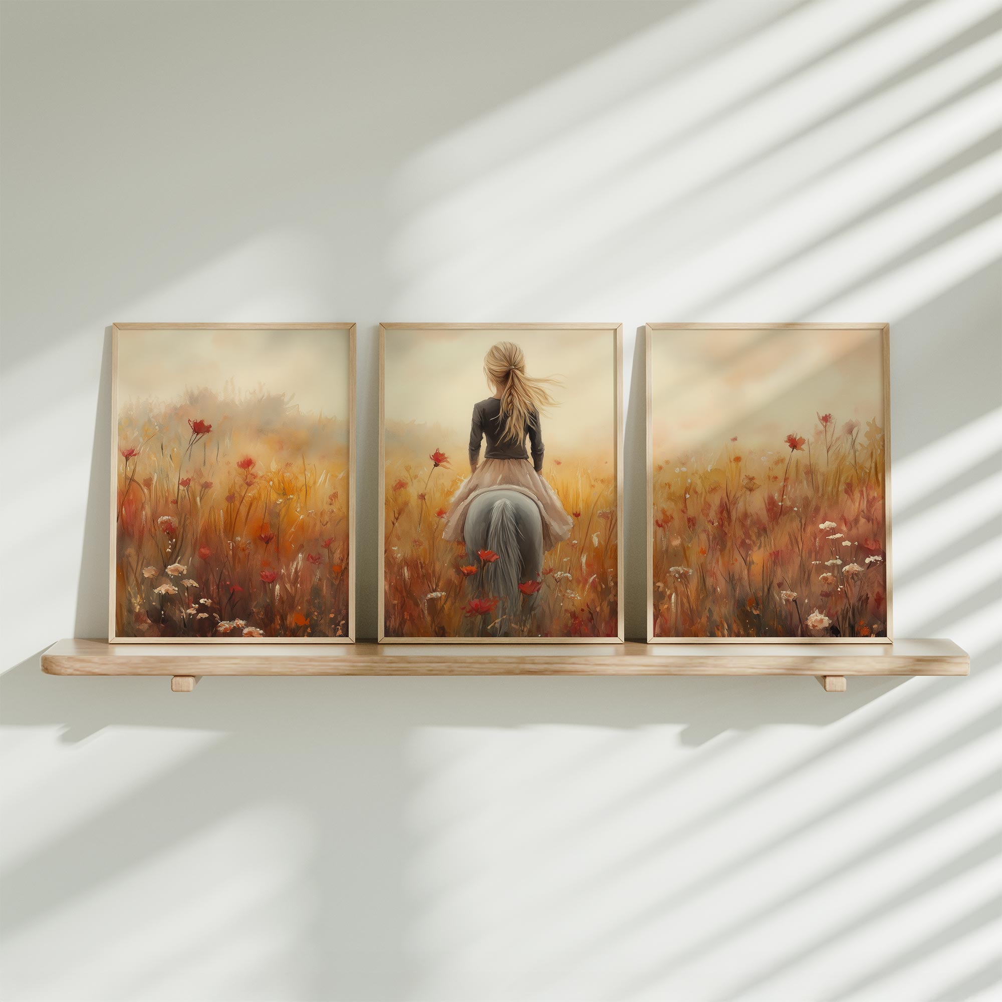 Terug naar collectie / Uncategorized / Vrolijke dame te paard in bloemenveld