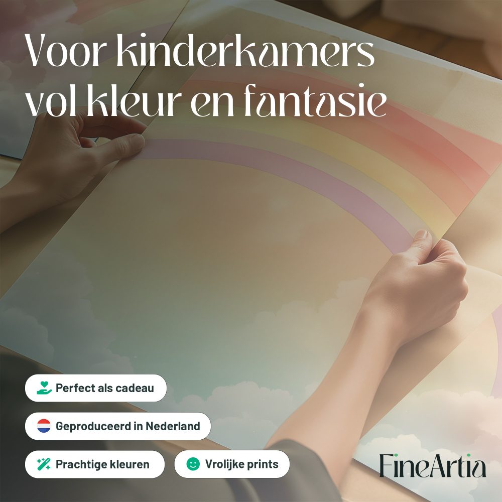 Terug naar collectie / Kinderkamer posters / Vrolijke Regenboog in Dromerige Wolkenwereld