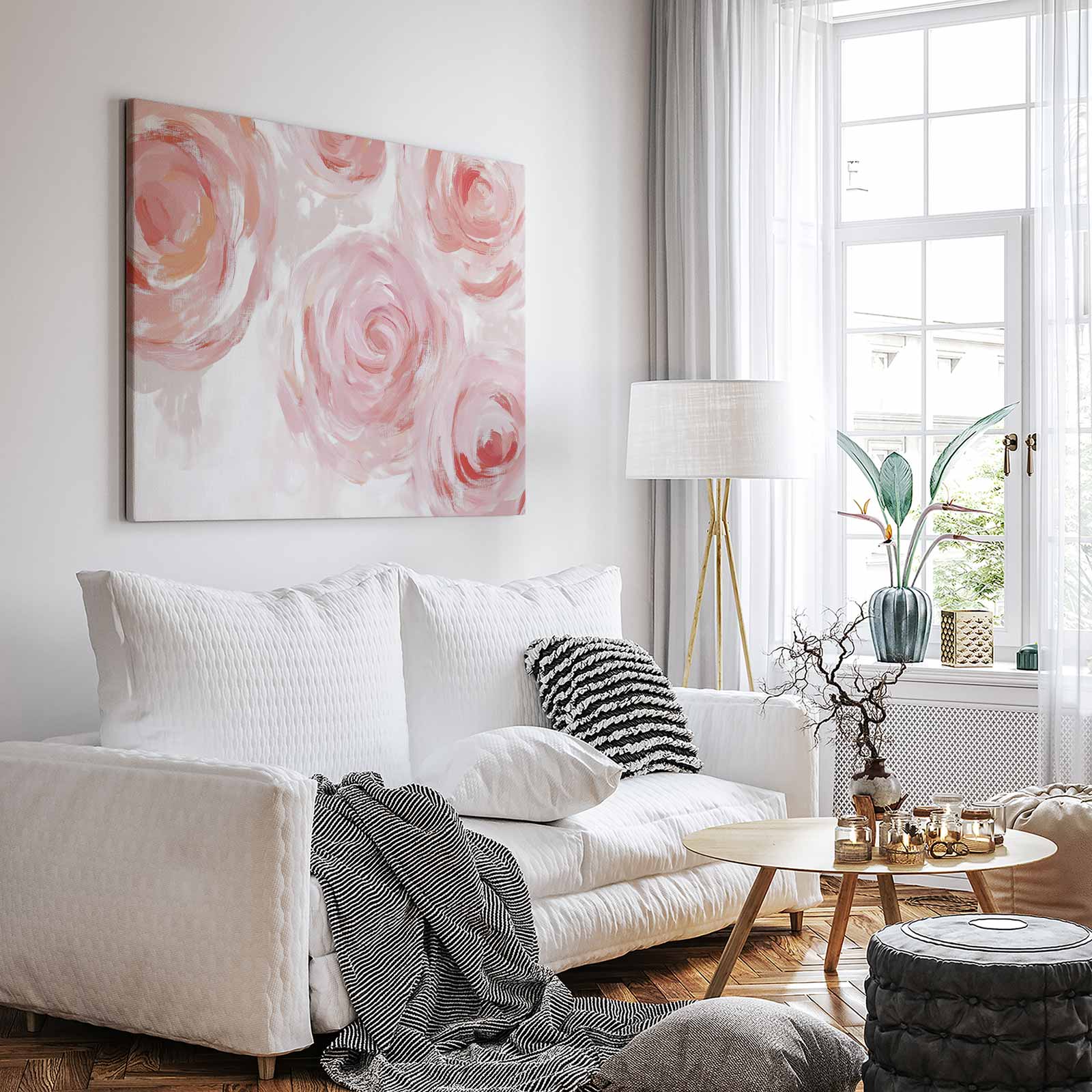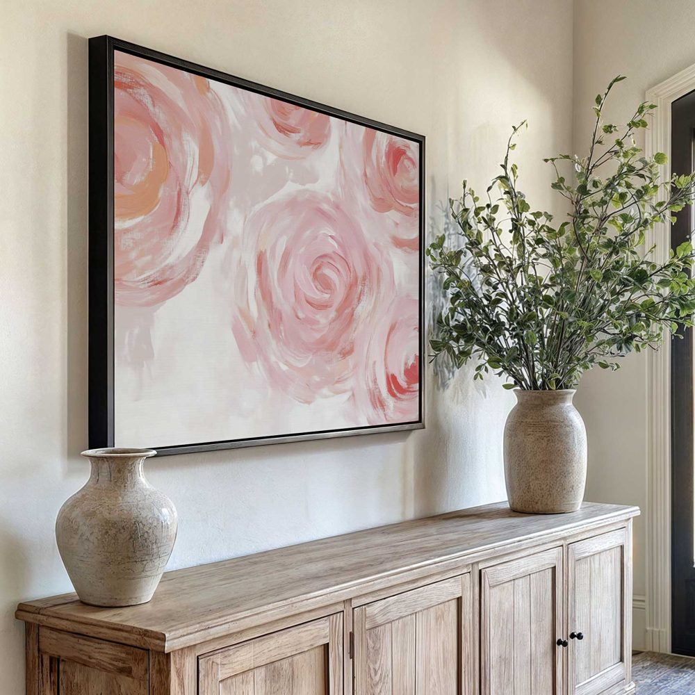 Terug naar collectie / Schilderijen / Abstract Schilderij / Vrolijke roze bloemenkrans