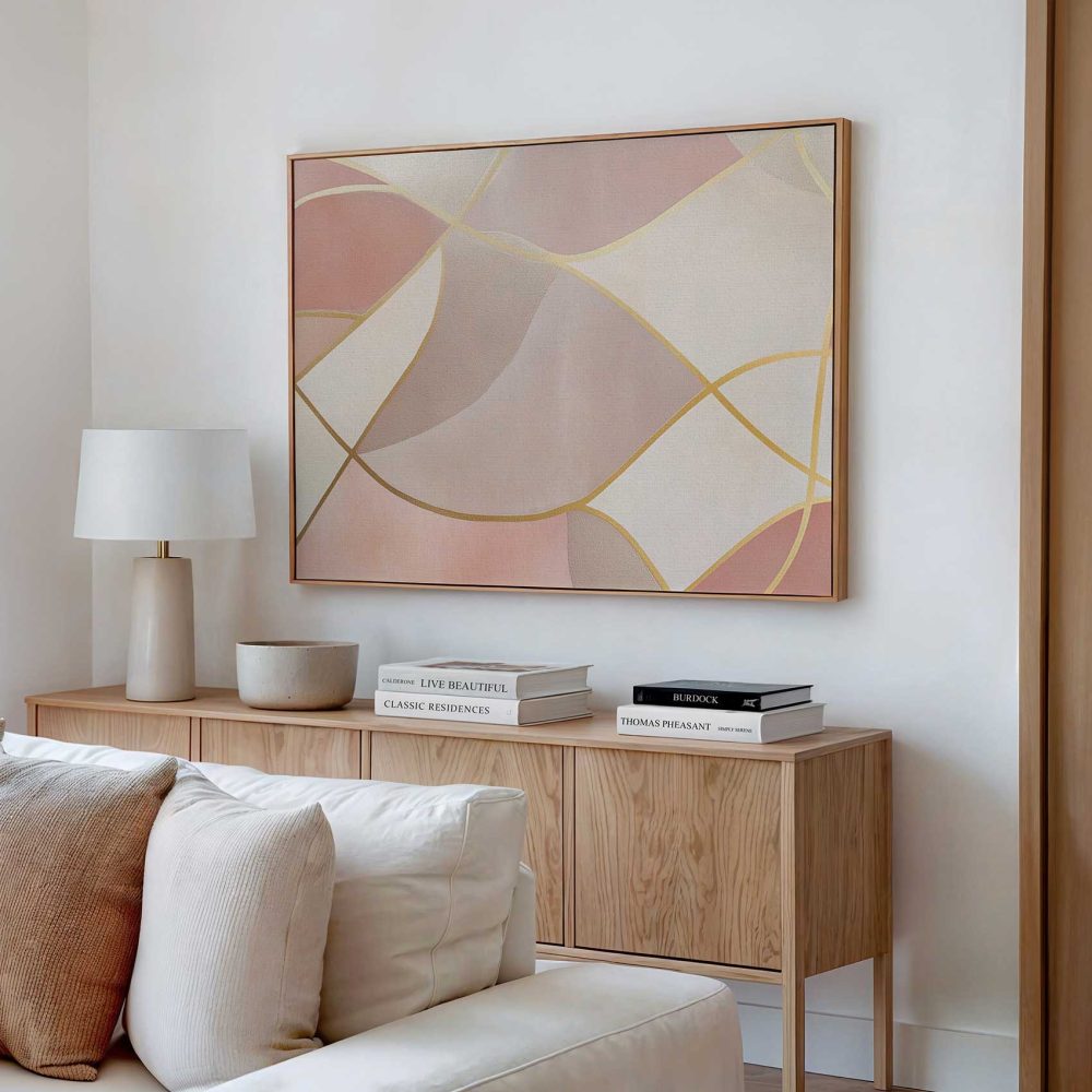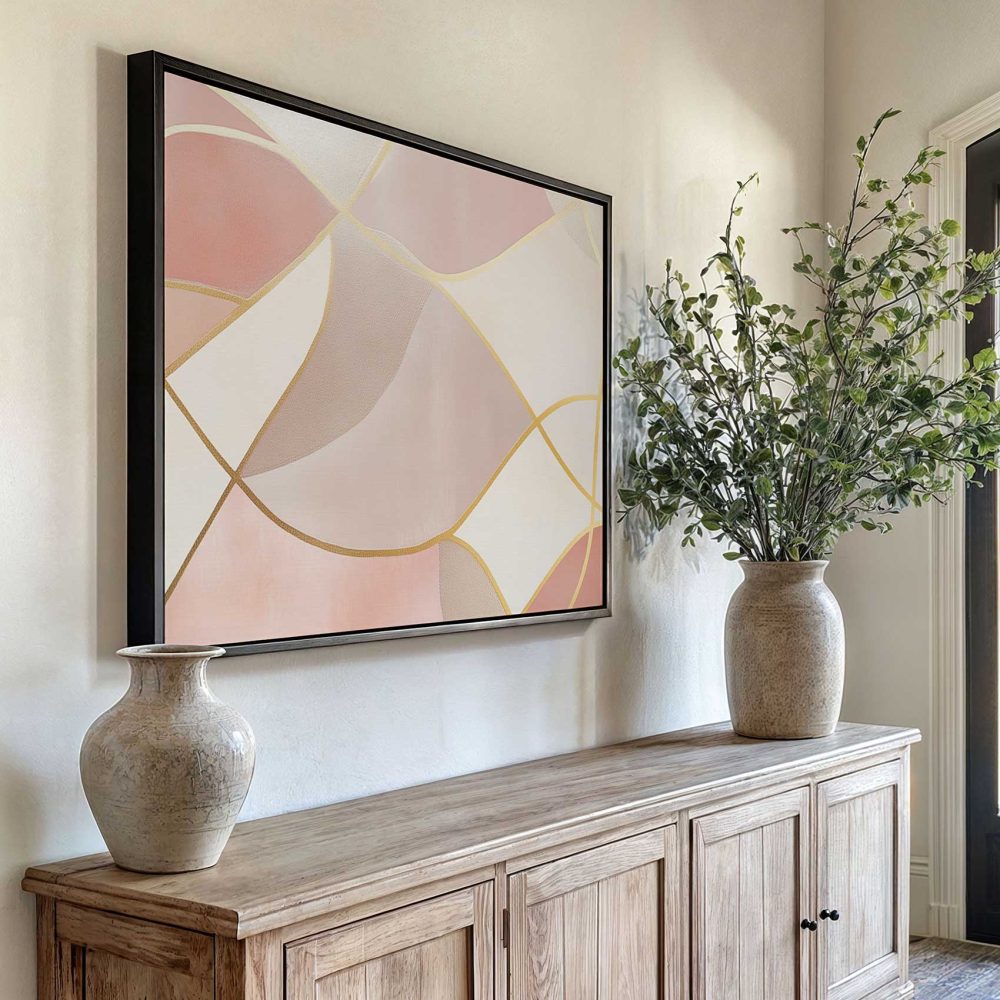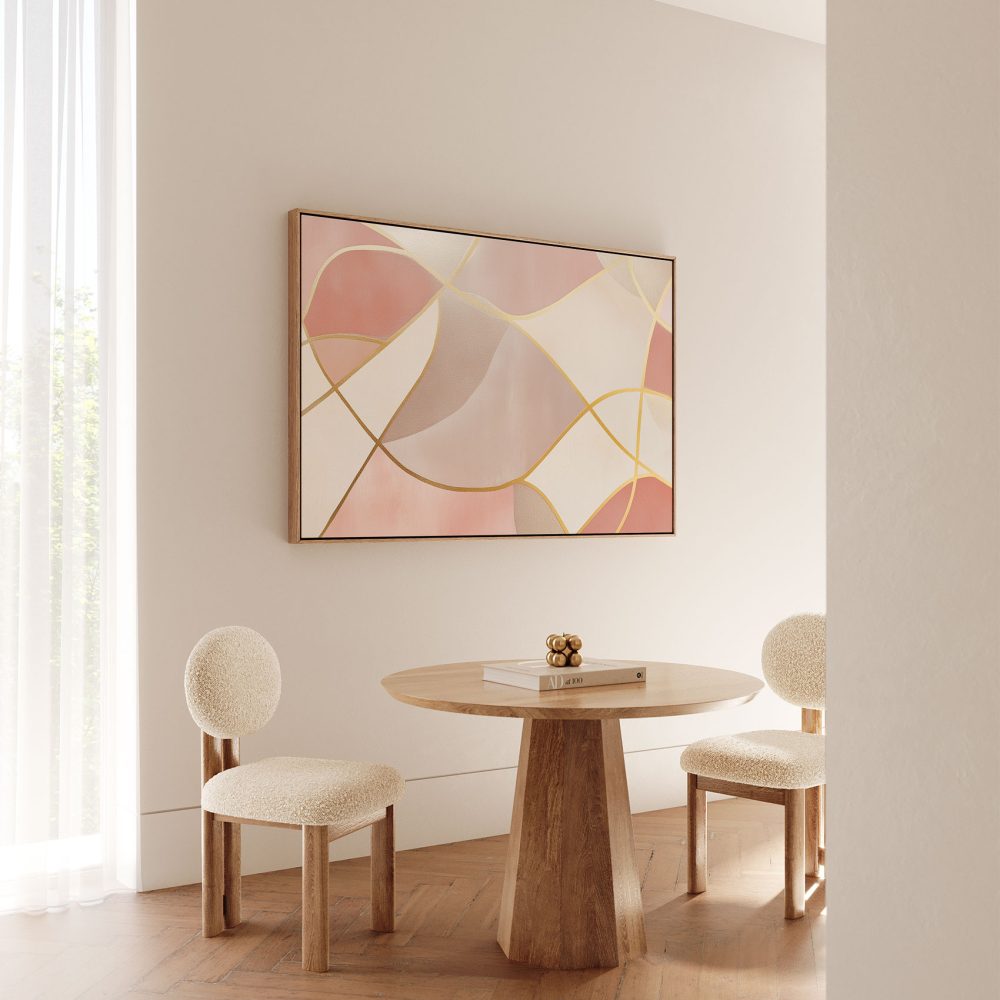 Terug naar collectie / Schilderijen / Abstract Schilderij / Vrolijke roze-gouden abstractie